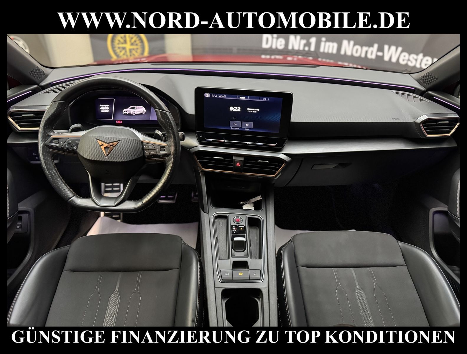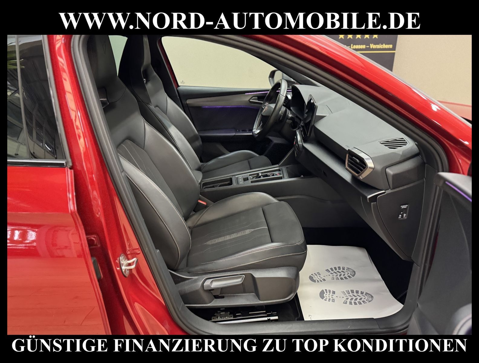 KomfortExtrasUnterhaltungBeschreibungwww.nord-automobile.de CUPRA LEON SPORTSTOURERAnsprechpartner: Jan Feldhus, Jonathan Steinfeld, Tom Bijman, Simon Wolff, Matthis Ullrich* FAHRZEUG-NUMMER: M-0557-BD * LACKIERUNG: Desire Rot Metallic * Deutsche Auslieferung * Abgaskonzept, EU6 AP * Modelljahr:2021 * UPE brutto 42.479 ¤ * Spurhalteassistent * Navigationsgerät-High * Einparkhilfe * Digitaler Radioempfang * Mit Ausweichunterstützung mit Abbiegeassistent * Müdigkeitserkennung * Ledermultifunktionslenkrad, beheizbar mit Tiptronic * Sprachsteuerung * Sitzheizung für Vordersitze getrennt regelbar * Geschwindigkeitsregelanlage plus Speed-Limiter * Komfort telefonie mit LTE und Wireless charging * Mirror Link plus Wireless ''App'' plus RSE (Vorbereitung) * Höheneinstellung, manuell, für Vordersitze * Lendenwirbelstütze, manuell einstellbar in Vordersitzlehnen * Schlüsselloses Schließ- und Startsystem ''Keyless Advanced'' mit Safesicherung * Rücksitzbank ungeteilt, Lehne geteilt umlegbar mit Mittelarmlehne * Vorbereitung für Anhängevorrichtung * Scheibenwischer-Intervallschaltung mit Licht/Regensensor * Nebelscheinwerfer * Einstiegleisten in den Türausschnitten(beleuchtet) * Scheiben seitlich in Wärmeschutzverglasung, ab B-Säule und hinten dunkel eingefärbt * Kindersitzverankerung für Kindersitzsystem I-Size, 2 x top tether und Kindersitzverankerung vorn BF-Seite * Radschrauben mit Diebstahlsicherung(nicht abschließbar) * Airbag FS und BFS, ohne Knieairbag, mit BFS-Deaktivierung * Adaptive Fahrwerksregelung mit kontinuierlicher Bedienung * Diebstahlalarmanlage, Innenraumüberwachung, Back-up-Horn und Abschleppschutz * Außenspiegel elektrisch anklappbar-/einstellbar, beheizbar, mit Beifahrerspiegelabsenkung * Fensterheber mit Komfortschaltung und Abschaltsicherung, elektrisch * Sicherheitsinnenspiegel automatisch abblendbar * Reifendruckkontrolle * Start/Stopp-Anlage mit Rekuperation * Leichtmetallräder 8J x 19 * 6-Gang-Automatikgetriebe * Nord-Automobile - Ihr starker und kompetenter Partner seit über 30 Jahren * Wir bieten Ihnen eine günstige Finanzierung auch ohne Anzahlung über die * AutoEuropaBank - Zweigniederlassung der Volkswagen Bank GmbH an * 20 XXL-Fotografien dieses Fahrzeuges finden Sie unter www.nord-automobile.de * Gerne unterbreiten wir Ihnen ein Angebot zum Ankauf Ihres bisherigen Fahrzeuges * Beim Export-Geschäft führen wir die Ausfuhranmeldung und Zulassung für Sie durch * Wir sind Meister-Werkstatt und zertifizierte GTÜ-Prüfstelle * Lernen Sie uns kennen - wir freuen uns auf Ihren Besuch * Keine Haftung für Druck & Schreibfehler. ... Klima vorn+hinten, Klimaautomatik, Automatik, Navigationssystem, Sitzheiz. vorn, Regensensor, ESP, ASR, ABS, Parktronic System, Multifunktionslenkr., Radio, Bordcomputer, Tempomat, Spiegel autom. abblendbar, Spiegel beheizbar, elektr. Fensterheber vorn+hinten, Alarm, elektr. WFS, Keyless-Go, ZV mit Fernb., Fahrerairb., Beifahrerairb., Seitenairbag vorn, Kopfairbags, Leichtmetallfelgen, elektr. Fahrwerksregelung, Nichtraucher, Nebelscheinw., Servolenkung, Sportsitze/Schalensitze, Spoiler, Traktionskontr., Sitzbank teilbar, Dachreling, abklappb. Spiegel, elektr. verstellb. Spiegel, Kopfst. vorn, Gepaeckraumabd., Nebelschlussl., Scheibenbr., Mittelarmlehne, Lendenwirbelst., Sitzhoehenv., Sitzheizung Fahrer + Beif., Lichtsensor, Waermeschutzvergl., 12 V Zusatzanschluss, aus erster Hand, Schadstoffklasse: Euro 6, Frontantrieb, Lederlenkrad, HSN 7593, TSN AQA, Verbrauch: 1,6/0,0/0,0 l/100 km (komb/inn/auß), CO2: 31 g/km, Partikelfilter, Feinstaubplakette: 4 - Grün |