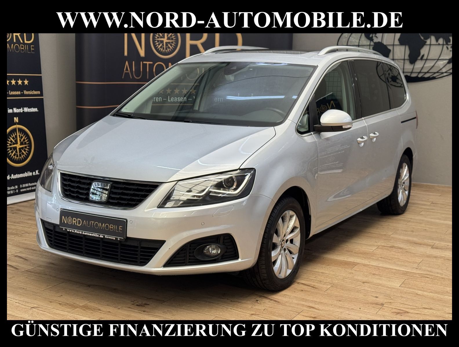 KomfortExtrasUnterhaltungBeschreibungwww.nord-automobile.de Seat Alhambra Style 2.0 TDI 110kW 6-Gang DSG 4 TürenAnsprechpartner: Jan Feldhus, Jonathan Steinfeld, Tom Bijman, Simon Wolff* FAHRZEUG-NUMMER: M-6873-BD * LACKIERUNG: Reflexsilber * Modelljahr:2020 * UPE brutto 48.588¤ * Deutsche Auslieferung * Schadstoffarm nach Abgasnorm Euro 6d-TEMP * Grossdach-System * Einparkhilfe vorn und hinten * Sitzheizung für Vordersitze getrennt regelbar * Mirror Link * Panorama-Ausstelldach elektrisch * Bi-Xenon-Scheinwerfer mit Kurvenlicht, Scheinwerfer-Reinigungsanlage, adaptives Frontlichtsystem (AFS) * Müdigkeitserkennung * Ultraschall-Einparkhilfe vorne und hinten mit OPS (Optisches Parksystem) * Totwinkelassistent (BSD) plus Spurhalteassistent (Heading Control Assist) * Mit Verkehrszeichenerkennung * Mit Rückfahrkamerasystem * Climatronic (3-Zonen-Regelung) mit programmierbarer Innenheizung * DAB (Digital Audio Broadcasting) * Digitaler Radioempfang * Komfort telefonie * Multifunktionsanzeige/Bordcomputer mit Check Control * Full Link (MirrorLink, Apple CarPlay und Android Auto) * Automatische Distanzregelung * Connectivity Box: Induktive Ladestation + GSM-Verstärker * Sonnenschutzrollo an Türscheiben hinten * Höheneinstellung, manuell, für VordersitzeLehneneinstellung elektrisch für linken Vordersitz * Ledersportmultifunktionslenkrad mit Tiptronic * Fernlichtassistent * Tagesfahrlicht mit Assistenzfahrlicht u.Coming- Leaving-home Funktion manuell * Scheiben seitlich in Wärmeschutzver- glasung, ab B-Säule und hinten dunkel eingefärbt * Lendenwirbelstütze, elektr. einstellbar für linke Vordersitzlehne * Klapptisch in Fahrer- und Beifahrersitzlehne integriert * Nebelscheinwerfer mit Abbiegelicht integriert * Winterpaket: Sitzheizung vorne, Scheinwerfer-Reinigungsanlage, beheizbare Scheibenwaschdüsen, beheizbare Aussenspiegel * Scheibenwischer-Intervallschaltung mit Regensensor * Leuchtweitenregulierung, autom/dynamisch mit Kurvenfahrlicht * Scheinwerferreinigungsanlage * Seitenscheiben hinten und Heckscheibe abgedunkelt * Servolenkung, geschwindigkeitsabhängig (Servotronic) * Dachreling silber * Sicherheitsinnenspiegel automatisch abblendbar * Reifendruckkontrolle * Front Assist inkl. City ANB für ACC high * Seitenairbag vorn, mit Kopfairbag * Außenspiegel, elektrisch anklappbar, elektrisch einstellbar, separat beheizbar * Diebstahlalarmanlage, Innenraumüber- wachung, Back-up-Horn und Abschleppschutzohne Taster für IRÜ * Zentralverriegelung m. Funkfernbedienung Innenbetätigung ohne Safesicherung * 6-Gang - Doppelkupplungsgetriebe DSG * Leichtmetallräder 7J x 17 * Nord-Automobile - Ihr starker und kompetenter Partner seit über 30 Jahren * Wir bieten Ihnen eine günstige Finanzierung auch ohne Anzahlung über die * AutoEuropaBank - Zweigniederlassung der Volkswagen Bank GmbH an * 20 XXL-Fotografien dieses Fahrzeuges finden Sie unter www.nord-automobile.de * Gerne unterbreiten wir Ihnen ein Angebot zum Ankauf Ihres bisherigen Fahrzeuges * Beim Export-Geschäft führen wir die Ausfuhranmeldung und Zulassung für Sie durch * Wir sind Meister-Werkstatt und zertifizierte GTÜ-Prüfstelle * Lernen Sie uns kennen - wir freuen uns auf Ihren Besuch * Keine Haftung für Druck & Schreibfehler. ... Klima, Klimaautomatik, Automatik, Navigationssystem, Sitzheiz. vorn, Xenon, Regensensor, ABS, Distronic, Multifunktionslenkr., Radio, Tel. m. Freisprech., Bordcomputer, Tempomat, Spiegel beheizbar, Scheinwerferreinigung, elektr. Fensterheber vorn, ZV mit Fernb., Fahrerairb., Beifahrerairb., Seitenairbag vorn, Kopfairbags, Leichtmetallfelgen, Nichtraucher, Nebelscheinw., Servolenkung, Dachreling, abklappb. Spiegel, elektr. verstellb. Spiegel, Mittelarmlehne, Sitzheizung, aus erster Hand, Schadstoffklasse: Euro 6, Diesel, Frontantrieb, Lederlenkrad, HSN 7593, TSN ALK, Verbrauch: 5,3/6,2/4,8 l/100 km (komb/inn/auß), CO2: 177 g/km, HU + AU wird vor Verkauf erneuert, Feinstaubplakette: 4 - Grün |