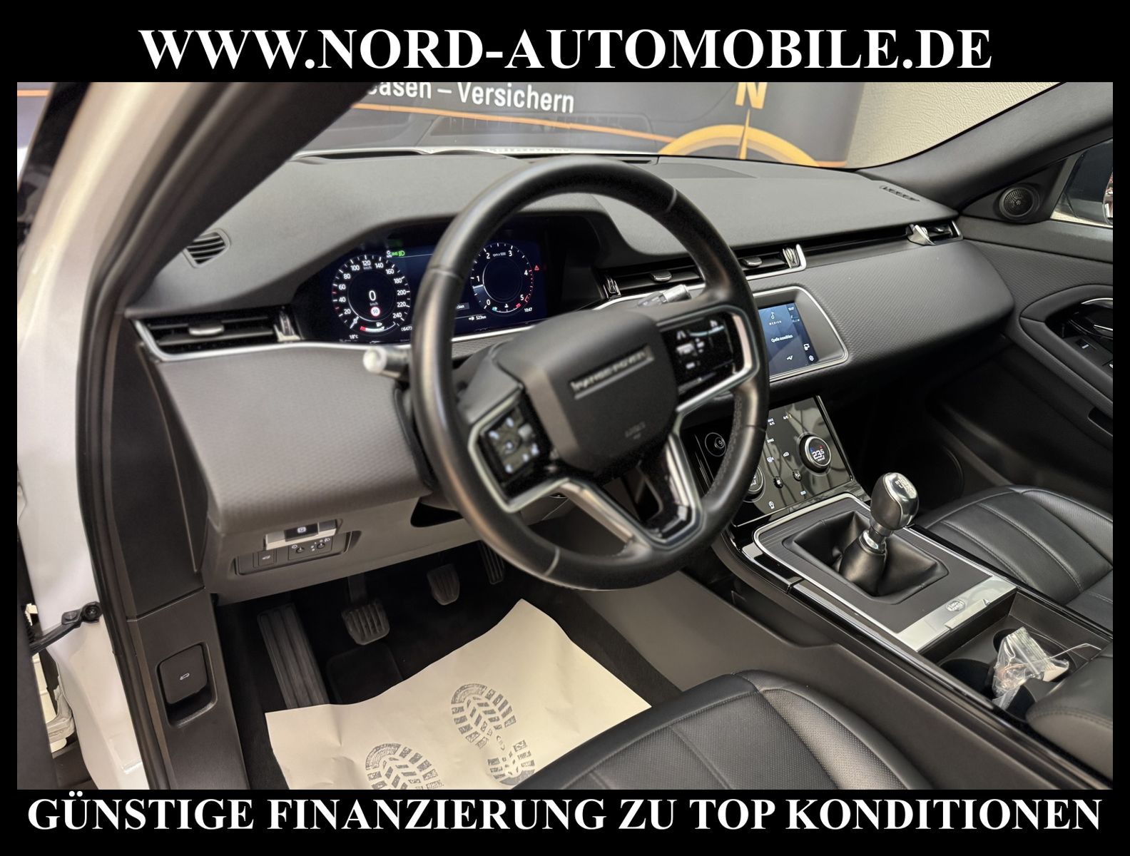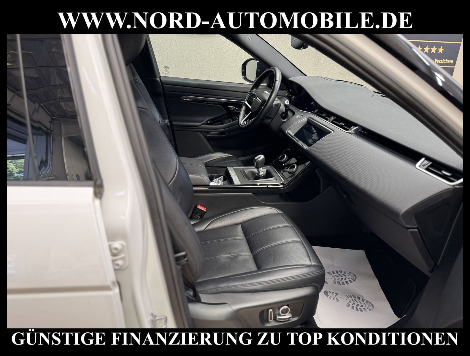 Range Rover Evoque D165Ansprechpartner: Jan Feldhus, Jonathan Steinfeld, Tom Bijman, Simon Wolff, Matthis Ullrich* FAHRZEUG-NUMMER: MW-9075-BD * LACKIERUNG: fuji white / Dach in Kontrastlackierung - schwarz * deutsches Fahrzeug * Abgaskonzept, Euro6 ehem.UPE: 55.959, -* Head-up Display * Navigationssystem Pivi Pro mit Pro Services * Land Rover Soundsystem (180 W) * Spracheingabesystem * digitaler Radioempfang (DAB+) * Smartphone Schnittstelle (Apple CarPlay & Android Auto) * Bluetooth-Schnittstelle * 2 Zonen Klimaautomatik * Panorama-Schiebedach elektrisch * Sitzbezug / Polsterung: Leder genarbt * Sitzheizung vorn * LED-Scheinwerfer mit LED-Tagfahrlicht * LM-Felgen 17 Zoll * Geschwindigkeitsregelanlage mit Geschwindigkeitsbegrenzer * Multifunktions-Lederlenkrad * Spurhalteassistent (Lane Departure Warning) * Einparkhilfe vorn und hinten * 3D-Surround Kamerasystem * Verglasung hinten abgedunkelt (Privacy Glass) * Sitze vorn höhenverstellbar * Dachhimmel ebony * Regensensor * Innenspiegel mit Abblendautomatik * Außenspiegel elektrisch verstell-, heiz- und anklappbar * Fensterheber elektrisch vorn und hinten * Zentralverriegelung mit Fernbedienung * Airbag Fahrer-/Beifahrerseite * Kopf-Airbag-System vorn und hinten * Dynamische Stabilitätskontrolle (DSC) * Wankneigungskontrolle (Roll Stability Control, RSC) * Aufmerksamkeits-Assistent * Berganfahr-Assistent * autonomer Notbrems-Assistent * Kurvenbremskontrolle (Corner-Brake-Control, CBC) * Reifendruckkontrolle * Start/Stopp-Anlage mit Rekuperation * 6-Gang-Schaltgetriebe * Nord-Automobile - Ihr starker und kompetenter Partner seit über 30 Jahren * Wir bieten Ihnen eine günstige Finanzierung auch ohne Anzahlung über die * AutoEuropaBank - Zweigniederlassung der Volkswagen Bank GmbH an * 20 XXL-Fotografien dieses Fahrzeuges finden Sie unter www.nord-automobile.de * Gerne unterbreiten wir Ihnen ein Angebot zum Ankauf Ihres bisherigen Fahrzeuges * Beim Export-Geschäft führen wir die Ausfuhranmeldung und Zulassung für Sie durch * Wir sind Meister-Werkstatt und zertifizierte DEKRA-Prüfstelle * Lernen Sie uns kennen - wir freuen uns auf Ihren Besuch * Keine Haftung für Druck & Schreibfehler. ... Klima, Klimaautomatik, Leder, Navigationssystem, Sitzheiz. vorn, ESP, ABS, Schiebedach elek., Parktronic System, Multifunktionslenkr., Radio, Soundsystem, Tempomat, Spiegel beheizbar, elektr. Fensterheber vorn, elektr. WFS, ZV mit Fernb., Fahrerairb., Beifahrerairb., Seitenairbag vorn, Kopfairbags, Leichtmetallfelgen, Nichtraucher, Servolenkung, Traktionskontr., elektr. verstellb. Spiegel, Aluoptik, Mittelarmlehne, Sitzheizung, 12 V Zusatzanschluss, aus erster Hand, Diesel, Frontantrieb, Lederlenkrad, Partikelfilter |
