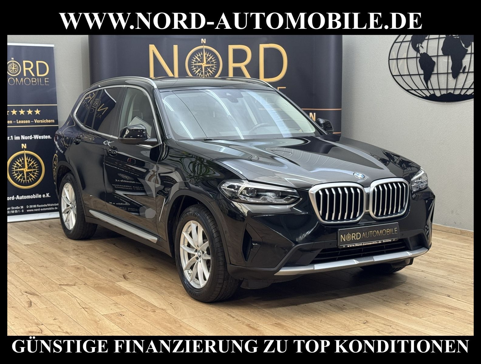 BMW X3 xDrive 30d AUTOMATIKAnsprechpartner: Jan Feldhus, Jonathan Steinfeld, Tom Bijman, Simon Wolff, Matthis Ullrich* FAHRZEUG-NUMMER: MW-8418-BD * LACKIERUNG: black sapphire metallic * deutsche Ausführung * Abgaskonzept, Euro6 rde II ehem.UPE: 67.269, -* xDrive (Allrad) * Mild-Hybrid Diesel 210 kW (Motor 3, 0 Ltr.) * Anhängerkupplung (Kugelkopf schwenkbar) * Parkassistent-Paket * Ausstattungs-Paket: Connected Professional * Navigationssystem * BMW Live Cockpit Plus * DAB-Tuner (Radioempfang digital) * Remote Services * Concierge Services * ConnectedDrive Services * Intelligenter Notruf inkl. TeleServices * Real Time Traffic Information (RTTI) * Personalisierungssystem (Personal Profile) * Freisprecheinrichtung Bluetooth mit erweiterter Smartphone-Anbindung * WLAN Hotspot * 3-Zonen Klimaautomatik mit automatischer Umluft-Control * Panoramadach (Glas) * Sitzbezug / Polsterung: Leder * Sitzheizung vorn * Sportsitze vorn * LED-Scheinwerfer mit erweiterten Umfängen und LED-Tagfahrlicht * LM-Felgen 7x18 (V-Speiche 618) * Fahrerlebnisschalter * Geschwindigkeits-Regelanlage mit Bremsfunktion * Park-Assistent * Park-Distance-Control (PDC) vorn und hinten * Rückfahrkamera * Komfortzugang (Öffnungs- und Schließsystem) * Heckklappenbetätigung automatisch * Multifunktions-Sportlederlenkrad (M-Technic) * Heckleuchten LED * Interieurleisten schwarz hochglänzend mit Akzentleiste * Sitze vorn höhenverstellbar * Lendenwirbelstützen vorn * Mittelarmlehne * Rücksitzlehne geteilt/klappbar (40:20:40) * Mittelarmlehne vorn und hinten * Wärmeschutzverglasung getönt * Sonnenschutzverglasung (hinten abgedunkelt) * Bordcomputer * Zentralverriegelung mit Fernbedienung * Fensterheber elektrisch vorn + hinten * Außenspiegel elektrisch anklappbar, verstell-und heizbar, mit Abblendautomatik * Außen-/Innenspiegel mit Abblendautomatik * Scheibenwaschdüsen heizbar * Scheibenwischer mit Regensensor * Licht- und Regensensor * Isofix-Aufnahmen für Kindersitz * Airbag Beifahrerseite abschaltbar * Airbag Fahrer-/Beifahrerseite * Kopf-Airbag-System vorn und hinten * Seitenairbag vorn * Dynamische Stabilitäts-Control (DSC) * Dynamische Tractions Control (DTC) * Auffahrwarnsystem mit Bremsfunktion * Active Guard Bremsassistent * Reifendruckkontrolle * Start/Stopp-Anlage mit Rekuperation * Getriebe Automatik - mit Steptronic (8-Stufen) für Allrad * Nord-Automobile - Ihr starker und kompetenter Partner seit über 30 Jahren * Wir bieten Ihnen eine günstige Finanzierung auch ohne Anzahlung über die * AutoEuropaBank - Zweigniederlassung der Volkswagen Bank GmbH an * 20 XXL-Fotografien dieses Fahrzeuges finden Sie unter www.nord-automobile.de * Gerne unterbreiten wir Ihnen ein Angebot zum Ankauf Ihres bisherigen Fahrzeuges * Beim Export-Geschäft führen wir die Ausfuhranmeldung und Zulassung für Sie durch * Wir sind Meister-Werkstatt und zertifizierte DEKRA-Prüfstelle * Lernen Sie uns kennen - wir freuen uns auf Ihren Besuch * Keine Haftung für Druck & Schreibfehler. ... Klima, Klimaautomatik, Automatik, Leder, Navigationssystem, Allrad, Sitzheiz. vorn, Regensensor, ESP, ABS, Schiebedach, Parktronic System, Multifunktionslenkr., Radio, Bordcomputer, Tempomat, Spiegel autom. abblendbar, Spiegel beheizbar, elektr. Fensterheber vorn, elektr. WFS, ZV mit Fernb., Fahrerairb., Beifahrerairb., Seitenairbag vorn, Seitenairbag hinten, Kopfairbags, Leichtmetallfelgen, Nichtraucher, Anhaengerk., Glasdach, Servolenkung, Kat., Sportsitze/Schalensitze, Traktionskontr., Sitzbank teilbar, Lenksaeule einstellbar, abklappb. Spiegel, elektr. verstellb. Spiegel, Nebelschlussl., Mittelarmlehne, Lendenwirbelst., Sitzheizung Fahrer + Beif., Lichtsensor, Waermeschutzvergl., aus erster Hand, Diesel, 4x4-Antrieb, Lederlenkrad, HSN 0005, TSN CZV, Partikelfilter, SCR-Technologie |