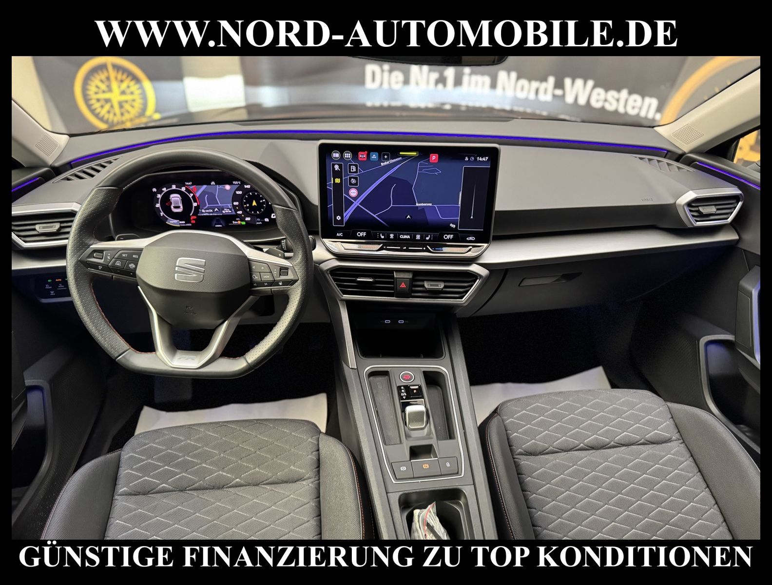 KomfortExtrasUnterhaltungBeschreibungwww.nord-automobile.de SEAT LEON FRAnsprechpartner: Jan Feldhus, Jonathan Steinfeld, Tom Bijman, Simon Wolff, Matthis Ullrich* FAHRZEUG-NUMMER: M-0781-BD * LACKIERUNG: Mitternachtsschwarz * Deutsche Ausliefeung * Modelljahr:2025 * Unfallfrei * UPE brutto 42.024 ¤ * Mit Rückfahrkamerasystem * Mit Ausweichunterstützung mit Abbiegeassistent * Parklenkassistent * Matrix-Beam * Automatische Distanzregelung * Wired & Wireless App-Connect * Sprachsteuerung * Mit Verkehrszeichenerkennung * Digitaler Radioempfang * Komforttelefonie: Wireless Charging(fast charge) und Außenantennenanbindung * LED-Scheinwerfer * Climatronic ( 3-Zonen ) mit Klimabedienteil hinten * Spurhalteassistent plus Emergency Assist und Stauassistent * Schlüsselloses Schließ- und Startsystem''Keyless Advanced'' mit Safesicherung * Sitzheizung für Vordersitze getrennt regelbar * Ledermultifunktionslenkrad, beheizbar mit Tiptronic * Höheneinstellung, manuell, für Vordersitze * Rücksitzbank ungeteilt, Lehne geteilt umlegbar mit Mittelarmlehne * Scheiben seitlich in Wärmeschutzverglasung, ab B-Säule und hinten dunkel eingefärbt * Servolenkung, geschwindigkeitsabhängig(Servotronic) * Nebelscheinwerfer * Sicherheitsinnenspiegel automatisch abblendbar * Scheibenwischer-Intervallschaltung mit Licht/Regensensor * Airbag FS und BFS, ohne Knieairbag, mit BFS-Deaktivierung * Außenspiegel elektrisch anklappbar-/einstellbar, beheizbar, mit Beifahrerspiegelabsenkung * Fensterheber mit Komfortschaltung und Abschaltsicherung, elektrisch * Diebstahlalarmanlage, Innenraumüberwachung, Back-up-Horn und Abschleppschutz * Radschrauben mit Diebstahlsicherung(nicht abschließbar) * Reifendruckkontrolle * Start/Stopp-Anlage mit Rekuperation * Leichtmetallräder 7 1/2J x 17 * 7-Gang-Automatikgetriebe * Nord-Automobile - Ihr starker und kompetenter Partner seit über 30 Jahren * Wir bieten Ihnen eine günstige Finanzierung auch ohne Anzahlung über die * AutoEuropaBank - Zweigniederlassung der Volkswagen Bank GmbH an * 20 XXL-Fotografien dieses Fahrzeuges finden Sie unter www.nord-automobile.de * Gerne unterbreiten wir Ihnen ein Angebot zum Ankauf Ihres bisherigen Fahrzeuges * Beim Export-Geschäft führen wir die Ausfuhranmeldung und Zulassung für Sie durch * Wir sind Meister-Werkstatt und zertifizierte GTÜ-Prüfstelle * Lernen Sie uns kennen - wir freuen uns auf Ihren Besuch * Keine Haftung für Druck & Schreibfehler. ... Klima vorn+hinten, Klimaautomatik, Automatik, Navigationssystem, Sitzheiz. vorn, Regensensor, ESP, ASR, ABS, Distronic, Parktronic System, Multifunktionslenkr., Radio, Bordcomputer, Tempomat, Spiegel autom. abblendbar, Spiegel beheizbar, elektr. Fensterheber vorn+hinten, elektr. WFS, Keyless-Go, ZV mit Fernb., Fahrerairb., Beifahrerairb., Seitenairbag vorn, Kopfairbags, Leichtmetallfelgen, Nichtraucher, Nebelscheinw., Servolenkung, Sportfahrwerk, Sportsitze/Schalensitze, Traktionskontr., Sitzbank teilbar, abklappb. Spiegel, elektr. verstellb. Spiegel, Kopfst. vorn, Kopfst. hinten, Gepaeckraumabd., Nebelschlussl., Scheibenbr., Mittelarmlehne, Lendenwirbelst., Sitzhoehenv., Sitzheizung Fahrer + Beif., Lichtsensor, Waermeschutzvergl., 12 V Zusatzanschluss, aus erster Hand, Schadstoffklasse: Euro 6, Frontantrieb, Lederlenkrad, HSN 7593, TSN ARV, CO2: 124 g/km, HU + AU wird vor Verkauf erneuert, Feinstaubplakette: 4 - Grün |