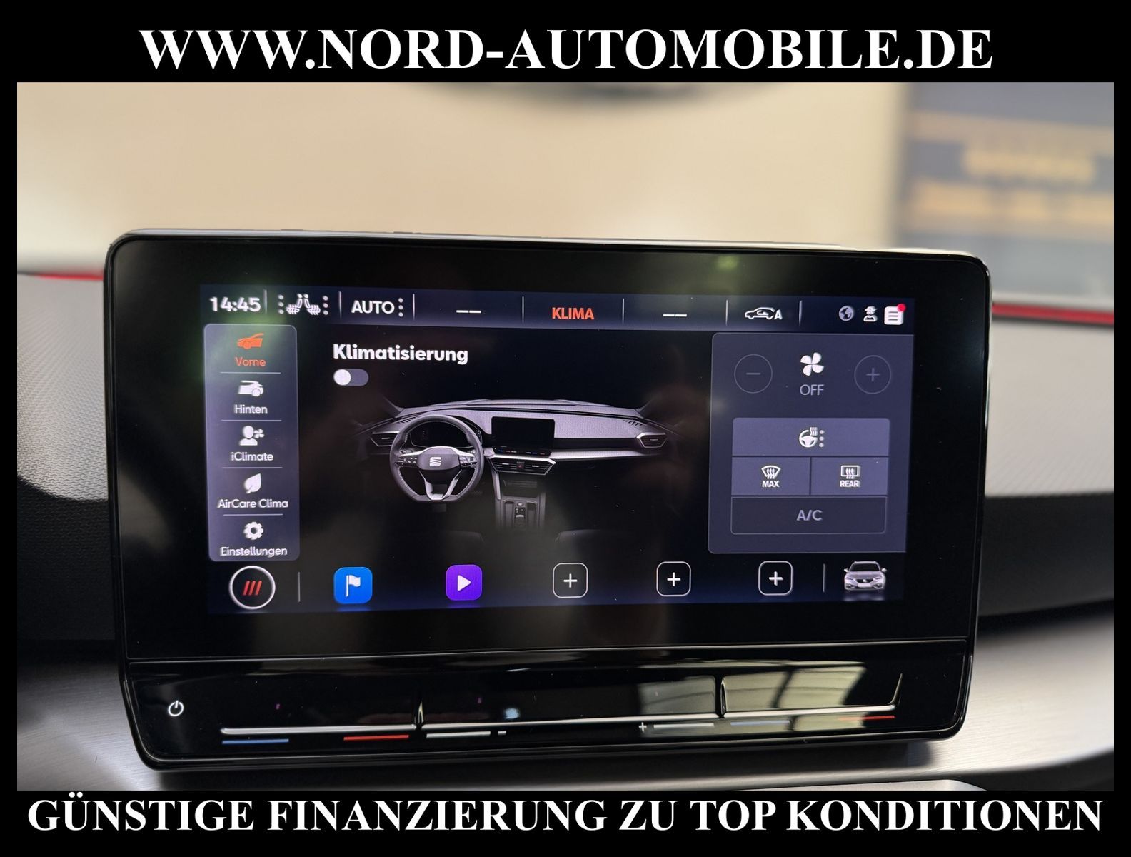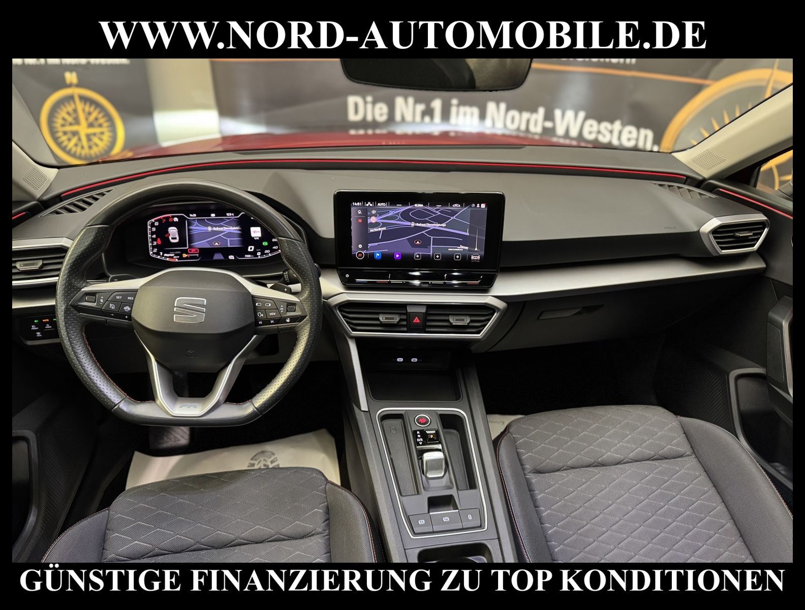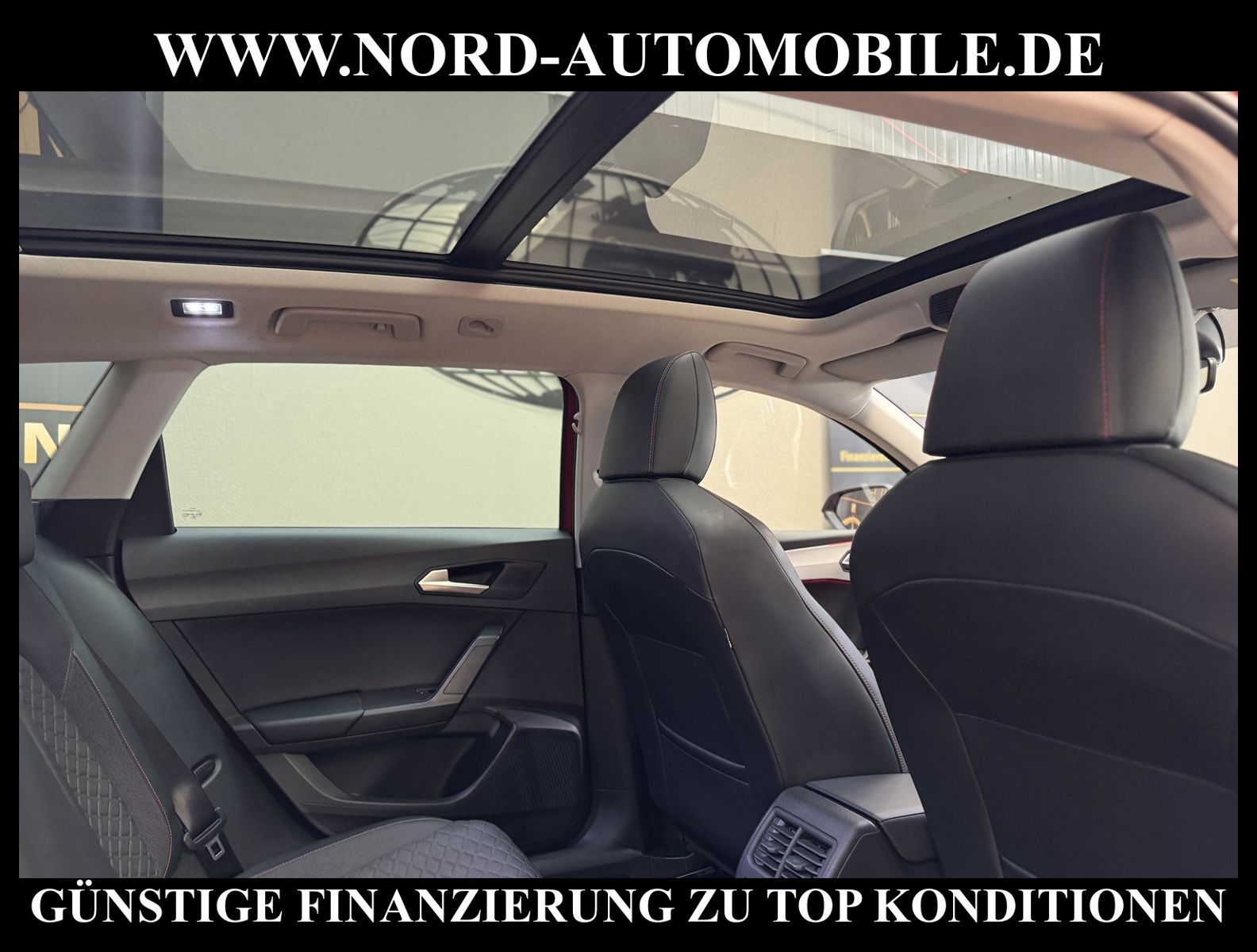 KomfortExtrasUnterhaltungBeschreibungwww.nord-automobile.de SEAT LEON STAnsprechpartner:Jan Feldhus, Jonathan Steinfeld, Tom Bijman, Simon Wolff, Matthis Ullrich* FAHRZEUG-NUMMER: M-2454-BD * LACKIERUNG: Desire Red Metellic * Deutsche Auslieferung * Modelljahr:2021 * UPE brutto 35.979 ¤ * Abgaskonzept, EU6 AP * Panorama-Ausstelldach, elektrisch * Zentralverriegelung ''Keyless-Go''ohne Safesicherung * Spurhalteassistent * Einparkhilfe * Navigationsgerät-High * LED-Scheinwerfer * Wireless RSE ''App'' * Digitaler Radioempfang * Telefonvorbereitung für Handy * Müdigkeitserkennung * Mit Rückfahrkamerasystem * Mit Ausweichunterstützung mit Abbiegeassistent * Geschwindigkeitsregelanlage plus Speed-Limiter * Climatronic ( 3-Zonen ) mit Klimabedienteil hinten * Sitzheizung für Vordersitze getrennt regelbar * Anhängevorrichtung mechanisch schwenkbar und elektrisch auslösbar * Ledermultifunktionslenkrad, beheizbar mit Tiptronic * Lendenwirbelstütze, manuell einstellbar in Vordersitzlehnen * Höheneinstellung, manuell, für Vordersitze * Rücksitzbank ungeteilt, Lehne geteilt umlegbar mit Mittelarmlehne * Servolenkung, geschwindigkeitsabhängig(Servotronic) * Nebelscheinwerfer * Einstiegleisten in den Türausschnitten(beleuchtet) * Scheibenwischer-Intervallschaltung mit Licht/Regensensor * Tagesfahrlicht mit Assistenzfahrlicht u.Coming- u. Leaving-home Funktion automatisch * Fensterheber mit Komfortschaltung und Abschaltsicherung, elektrisch * Scheiben seitlich in Wärmeschutzverglasung, ab B-Säule und hinten dunkel eingefärbt * Radschrauben mit Diebstahlsicherung(nicht abschließbar) * Außenspiegel elektrisch anklappbar-/einstellbar, beheizbar, mit Beifahrerspiegelabsenkung * Sicherheitsinnenspiegel automatisch abblendbar * Airbag FS und BFS, ohne Knieairbag, mit BFS-Deaktivierung * 18''-Leichtmetallräder ''Performance'' 30/4, bearbeitet * Reifendruckkontrolle * Start/Stopp-Anlage mit Rekuperation * 7-Gang-Automatikgetriebe * Nord-Automobile - Ihr starker und kompetenter Partner seit über 30 Jahren * Wir bieten Ihnen eine günstige Finanzierung auch ohne Anzahlung über die * AutoEuropaBank - Zweigniederlassung der Volkswagen Bank GmbH an * 20 XXL-Fotografien dieses Fahrzeuges finden Sie unter www.nord-automobile.de * Gerne unterbreiten wir Ihnen ein Angebot zum Ankauf Ihres bisherigen Fahrzeuges * Beim Export-Geschäft führen wir die Ausfuhranmeldung und Zulassung für Sie durch * Wir sind Meister-Werkstatt und zertifizierte GTÜ-Prüfstelle * Lernen Sie uns kennen - wir freuen uns auf Ihren Besuch * Keine Haftung für Druck & Schreibfehler. ... Klima vorn+hinten, Klimaautomatik, Automatik, Navigationssystem, Sitzheiz. vorn, Regensensor, ESP, ASR, ABS, Parktronic System, Multifunktionslenkr., Radio, Bordcomputer, Tempomat, Spiegel autom. abblendbar, Spiegel beheizbar, elektr. Fensterheber vorn+hinten, elektr. WFS, Keyless-Go, ZV mit Fernb., Fahrerairb., Beifahrerairb., Seitenairbag vorn, Kopfairbags, Leichtmetallfelgen, Nichtraucher, Anhaengerk., Nebelscheinw., Servolenkung, Sportfahrwerk, Sportsitze/Schalensitze, Spoiler, Traktionskontr., Sitzbank teilbar, Dachreling, abklappb. Spiegel, elektr. verstellb. Spiegel, Kopfst. vorn, Gepaeckraumabd., Nebelschlussl., Scheibenbr., Mittelarmlehne, Lendenwirbelst., Sitzhoehenv., Sitzheizung Fahrer + Beif., Lichtsensor, Waermeschutzvergl., 12 V Zusatzanschluss, aus erster Hand, Schadstoffklasse: Euro 6, Frontantrieb, Lederlenkrad, Lederschaltknauf, HSN 7593, TSN APY, Verbrauch: 5,0/6,1/4,3 l/100 km (komb/inn/auß), Partikelfilter, Feinstaubplakette: 4 - Grün |