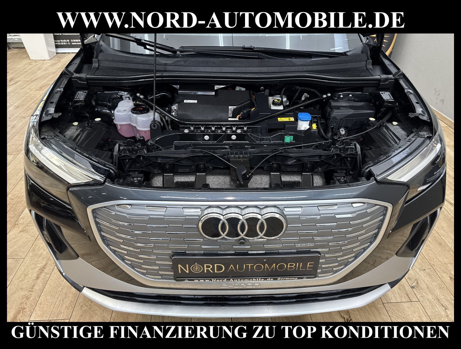 KomfortExtrasUnterhaltungBeschreibungwww.nord-automobile.de AUDI Q4 e-tronAnsprechpartner:Jan Feldhus, Jonathan Steinfeld, Tom Bijman, Simon Wolff, Matthis Ullrich* FAHRZEUG-NUMMER: M-2904-BD * LACKIERUNG: Mythosschwarz Metallic * Modelljahr:2022 * UPE brutto 62.196 ¤ * S-Line * Audi Smartphone Interface * Zentralverriegelung ''Keyless-Go'' * Navigationsgerät-High * Spurverlassenswarnung * Mit Rückfahrkamerasystem * Head-Up Display * Mit Verkehrszeichenerkennung * Digitaler Radioempfang * Pedalerie aus Edelstahl * Audi virtual cockpit plus * Interieur S line mit Sportsitzen in Leder/Kunstleder-Kombination schwarz * Mit Ausweichunterstützung mit Abbiegeassistent * Einparkhilfe vorn und hinten * Telefonvorbereitung für Handy * LED-Scheinwerfer * Automatische Distanzregelung(mit follow to stop) und Speed-Limiter * Dekor-Einlagen, Alu matt gebürstet * Ledersportmultifunktionslenkrad * Höheneinstellung, manuell, für Vordersitze * Rücksitzbank ungeteilt, Lehne geteilt umlegbar (dreiteilig) mit Mittelarmlehne * Servolenkung, geschwindigkeitsabhängig(Servotronic) * Lendenwirbelstütze, elektr. einstellbar in Vordersitzlehnen * Radschrauben mit Diebstahlsicherung(nicht abschließbar) * Airbag FS und BFS, ohne Knieairbag, mit BFS-Deaktivierung * Servoschließung Heckklappe * Sicherheitsinnenspiegel automatisch abblendbar * Diebstahlalarmanlage, Innenraumüberwachung, Back-up-Horn und Abschleppschutz * Außenspiegel automatisch abblendbar elektrisch anklapp-/einstellbar, beheizbar, mit Beifahrerspiegelabsenkung * Räder, 5-Y-Speichen, 8, 0J|9, 0Jx20, Reifen 235/50|255/45 R20 * Reifendruckkontrolle * Nord-Automobile - Ihr starker und kompetenter Partner seit über 20 Jahren * Wir bieten Ihnen eine günstige Finanzierung auch ohne Anzahlung über die * AutoEuropaBank - Zweigniederlassung der Volkswagen Bank GmbH an * 20 XXL-Fotografien dieses Fahrzeuges finden Sie unter www.nord-automobile.de * Gerne unterbreiten wir Ihnen ein Angebot zum Ankauf Ihres bisherigen Fahrzeuges * Beim Export-Geschäft führen wir die Ausfuhranmeldung und Zulassung für Sie durch * Wir sind Meister-Werkstatt und zertifizierte GTÜ-Prüfstelle * Lernen Sie uns kennen - wir freuen uns auf Ihren Besuch * Keine Haftung für Druck & Schreibfehler. ... Klima, Klimaautomatik, Automatik, Navigationssystem, Regensensor, Vorders. elekt. verstellb., ESP, ABS, Distronic, Parktronic System, Multifunktionslenkr., Radio, Bordcomputer, Tempomat, Spiegel autom. abblendbar, Spiegel beheizbar, elektr. Fensterheber vorn+hinten, Alarm, elektr. WFS, ZV mit Fernb., Fahrerairb., Beifahrerairb., Seitenairbag vorn, Kopfairbags, Leichtmetallfelgen, Nichtraucher, Servolenkung, Sportfahrwerk, Sportsitze/Schalensitze, Sitzbank teilbar, abklappb. Spiegel, elektr. verstellb. Spiegel, Kopfst. vorn, Aluoptik, Mittelarmlehne, Lendenwirbelst., elekt. verstellb. Fahrersitz, Lichtsensor, Waermeschutzvergl., 12 V Zusatzanschluss, Frontantrieb, Lederlenkrad, HSN 0588, TSN BZT, HU + AU wird vor Verkauf erneuert, Standklima |