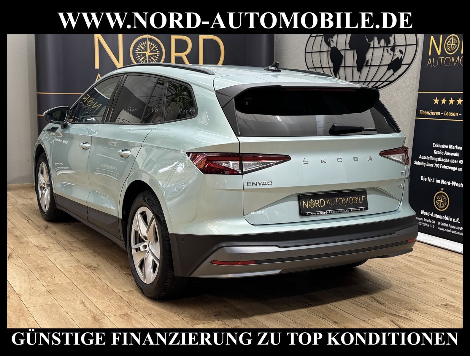 KomfortExtrasUnterhaltungBeschreibungwww.nord-automobile.de Skoda Enyaq iV electric 132kW 1-Gang-Automatik 4 TürenAnsprechpartner: Jan Feldhus, Jonathan Steinfeld, Tom Bijman, Simon Wolff, Matthis Ullrich* FAHRZEUG-NUMMER: M-1346-BD * LACKIERUNG: Arctic Silber Metallic * Modelljahr:2022 * Mit Batteriezertifikat * UPE brutto 45.005 ¤ * Navi Amundsen + Web radio * Sitzbezüge in Teilleder * Mit Rückfahrkamerasystem * Matrix-Beam * Spurhalteassistent * Schnellladevorrichtung (CCS-Ladedose) * Fahrassistenz-System: Abbiegebremsfunktion und Ausweichunterstützung * Klimaanlage Climatronic 2-Zonen * Schlüsselloses Schlie - und Startsystem ''Keyless Advanced'' ohne Safesicherung * Komfort telefonie mit Wireless charging * SmartLink (MirrorLink, Apple CarPlay und Android Auto) * Care Connect + Infotainment Online * Müdigkeitserkennung * Verkehrszeichenerkennung * Lenkrad (Leder) mit Multifunktion * Sprachsteuerung * Leuchtweitenregulierung, autom/dynamisch mit Kurvenfahrlicht * Scheibenwischer-Intervallschaltung mit Licht/Regensensor * Aut. Gepäckraumabdeckung - Rollo * Außenspiegel, automatisch abblendbar elektrisch anklapp-/einstellbar separat beheizbar * Sitz vorn höhenverstellbar mit Lendenwirbelstütze beidseitig * Rücksitzbank geteilt umlegbar mit Mittelarmlehne * ''CRUISE CONTROL'' mit Speedlimiter * Lendenwirbelstütze, manuell einstellbar in Vordersitzlehnen * Akustische Seitliche Fenster vorne mit SunSet * Komfortsitze vorn * DAB - Digitaler Radioempfang * Sonnenrollo für die Seitenscheiben hinten - mechanisch * Servolenkung, geschwindigkeitsabhängig (Servotronic) * Variabler Ladeboden im Kofferraum * Dachreling, schwarz * Wegfahrsperre elektronisch * Airbag FS und BFS, ohne Knieairbag, mit BFS-Deaktivierung * Alarmanlage mit Innenraum-ÜW, Akku Sirene, Abschleppschutz, ZV mit Funk- fern.(2 klappbare Schlüssel)+SAFE System * Leichtmetallräder 8J x 19 * Nord-Automobile - Ihr starker und kompetenter Partner seit über 30 Jahren * Wir bieten Ihnen eine günstige Finanzierung auch ohne Anzahlung über die * AutoEuropaBank - Zweigniederlassung der Volkswagen Bank GmbH an * 20 XXL-Fotografien dieses Fahrzeuges finden Sie unter www.nord-automobile.de * Gerne unterbreiten wir Ihnen ein Angebot zum Ankauf Ihres bisherigen Fahrzeuges * Beim Export-Geschäft führen wir die Ausfuhranmeldung und Zulassung für Sie durch * Wir sind Meister-Werkstatt und zertifizierte GTÜ-Prüfstelle * Lernen Sie uns kennen - wir freuen uns auf Ihren Besuch * Keine Haftung für Druck & Schreibfehler. ... Klima, Klimaautomatik, Automatik, Navigationssystem, Regensensor, ABS, Parktronic System, Multifunktionslenkr., Radio, Tel. m. Freisprech., Bordcomputer, Tempomat, Spiegel autom. abblendbar, Spiegel beheizbar, elektr. Fensterheber vorn, Alarm, elektr. WFS, Keyless-Go, ZV mit Fernb., Fahrerairb., Beifahrerairb., Leichtmetallfelgen, Nichtraucher, Servolenkung, Sitzbank teilbar, Dachreling, abklappb. Spiegel, elektr. verstellb. Spiegel, Mittelarmlehne, Lendenwirbelst., Sitzhoehenv., orthop. Fahrersitz, Lichtsensor, aus erster Hand, Lederlenkrad, HSN 8004, TSN AWR, HU + AU wird vor Verkauf erneuert |