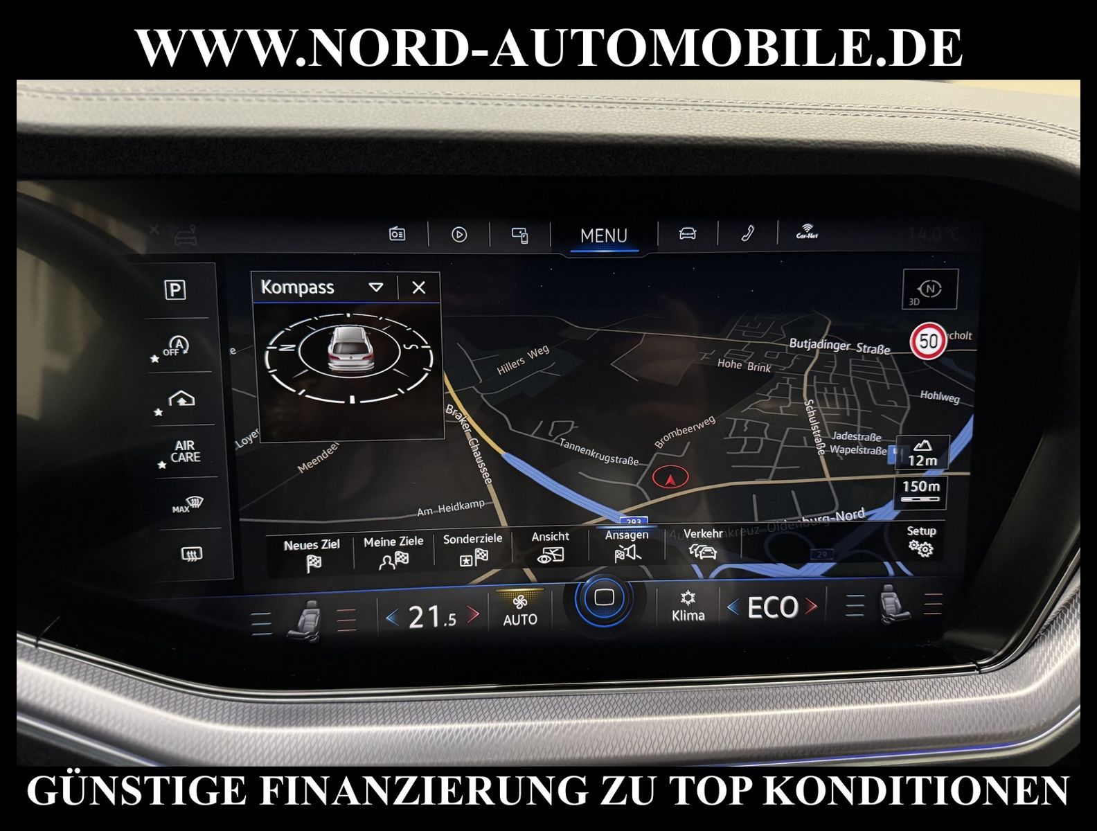 KomfortExtrasUnterhaltungBeschreibungwww.nord-automobile.de Volkswagen Touareg R-Line 4Motion 3.0 TDI SCR 170kW 8-Gang Tiptronic 4 TürenAnsprechpartner: Jan Feldhus, Jonathan Steinfeld, Tom Bijman, Simon Wolff, Matthis Ullrich* FAHRZEUG-NUMMER: M-6385-BD * LACKIERUNG: Siliziumgrau Metallic * Modelljahr: 2022 * UPE brutto 103.144 ¤ * Deutsche Auslieferung * Abgasnorm Euro 6d * R-Line Black Style * 4 Corner Luftfederung mit elektrisch geregelter Dämpfung * Luftfederung elektronisch geregelt inkl. Allradlenkung * Head-up-Display * IQ.LIGHT - LED-Matrix-Scheinwerfer * Spurwechselassistent * Schlüsselloses Schließ- und Startsystem ''Keyless Access'' mit Safe-Sicherung * Spurhalteassistent plus Emergency Assist und Stauassistent * Rückfahrkamera ''Rear View'' * Parklenkassistent (Park Assist) und PDC vorn und hinten * Müdigkeitserkennungserkennung * Mirror Link plus Wireless RSE ''App'' * Nachtsicht-Assistent * Active Info Display, mehrfarbig, verschiedene Info-Profile wählbar * Autom. Distanzregelung (ACC inkl. Stop&Go-Funktion) - Geschwindigkeitsbegrenzungsanlage * Navigationsgerät-Premium * Standheizung mit Fernbedienung * Innovision Cockpit (Instrumente digital und Bedienung über Touchscreen-Farbdisplay) * Verkehrszeichenerkennung * Anhängerkupplung elektr. anklappbar * Soundsystem ''DYNAUDIO Consequence'', 16-Kanal-Verstärker, 12+1 Lautsprecher, Subwoofer * Memory-Paket Premium * Sitzheizung für Vordersitze getrennt regelbar * ''Air Care Climatronic'' mit 4-Zonen-Klimatisierung und Bedienungselementen hinten * Komfort-Paket Keyless Access * Umfeldbeobachtungssystem (Front assist) mit City-Notbremsfunktion * 2 USB-C-Schnittstellen vorn, 1 USB-C-Ladebuchse an der Mittelkonsole hinten * Telefonschnittstelle ''Business'' mit induktiver Ladefunktion * Lenkrad heizbar (Leder, R-Line) mit Multifunktion und Schaltfunktion * Garagentoröffner * Komfortsitze vorn * Lendenwirbelstützen vorn pneumatisch einstellbar * Lenksäule mit elektrischer Höhen- und Längseinstellung, mit Memory-Funktion * Rücksitzbank und -lehne asymmetrisch geteilt umklappbar, längs verschiebbar, Lehenneigung einstellbar * Vordersitze elektrisch einstellbar, mit Memory-Funktion und längs verschiebbarer Oberschenkelauflage * Sitze vorn mit Klima- und Massagefunktion * Seitenscheiben hinten und Heckscheibe abgedunkelt, zu 65 % lichtabsorbierend * Dynamische Fernlichtregulierung ''Dynamic Light Assist'' für LED-Matrix-Scheinwerfer * Scheibenwaschdüsen vorn automatisch beheizt * Scheinwerfer-Reinigungsanlage * Ambientebeleuchtung mehrfarbig * Kindersitzverankerung für Kindersitzsystem I-Size, 2 x top tether * Airbag für Fahrer und Beifahrer, mit Beifahrerairbag-Deaktivierung * Radioempfang digital (DAB+) * Kopfairbagsystem für Front- und Fondpassagiere inkl. Seitenairbags vorn * Reifenfülldruck-Kontrollsystem * Komfortöffnung Heckklappe (Virtuelles Pedal) plus Easy Close * Außenspiegel elektrisch einstell-, anklapp-, beheizbar und abblendend, Beifahrerspiegelabsenkung und Memory * Diebstahlwarnanlage mit Innenraumüberwachung, Back-up-Horn und Abschleppschutz * 8-Gang-Automatikgetriebe für Allrad * Start-Stopp-System mit Bremsenergie-Rückgewinnung * Dachhimmel in Titanschwarz * Allradlenkung * 4 Leichtmetallräder ''Nevada'' 9 J x 20 in Schwarz * Nord-Automobile - Ihr starker und kompetenter Partner seit über 30 Jahren * Wir bieten Ihnen eine günstige Finanzierung auch ohne Anzahlung über die * AutoEuropaBank - Zweigniederlassung der Volkswagen Bank GmbH an * 20 XXL-Fotografien dieses Fahrzeuges finden Sie unter www.nord-automobile.de * Gerne unterbreiten wir Ihnen ein Angebot zum Ankauf Ihres bisherigen Fahrzeuges * Beim Export-Geschäft führen wir die Ausfuhranmeldung und Zulassung für Sie durch * Wir sind Meister-Werkstatt und zertifizierte GTÜ-Prüfstelle * Lernen Sie uns kennen - wir freuen uns auf Ihren Besuch * Keine Haftung für Druck & Schreibfehler. ... Klima, Klimaautomatik, Automatik, Leder, Navigationssystem, Allrad, Sitzheiz. vorn, Xenon, Vorders. elekt. verstellb., ESP, ABS, Distronic, Parktronic System, Multifunktionslenkr., Radio, Soundsystem, Bordcomputer, Spiegel beheizbar, Scheinwerferreinigung, elektr. Fensterheber vorn, Keyless-Go, ZV mit Fernb., Fahrerairb., Beifahrerairb., Seitenairbag vorn, Kopfairbags, Leichtmetallfelgen, Nichtraucher, Anhaengerk., Sitzbank teilbar, Lenksaeule einstellbar, abklappb. Spiegel, elektr. verstellb. Spiegel, Luftfederung, Mittelarmlehne, elekt. verstellb. Fahrersitz, Standheizung, Sitzheizung, Waermeschutzvergl., aus erster Hand, Schadstoffklasse: Euro 6, Diesel, 4x4-Antrieb, Lederlenkrad, HSN 0603, TSN COB, Verbrauch: 7,0/8,8/5,9 l/100 km (komb/inn/auß), CO2: 218 g/km, Feinstaubplakette: 4 - Grün |