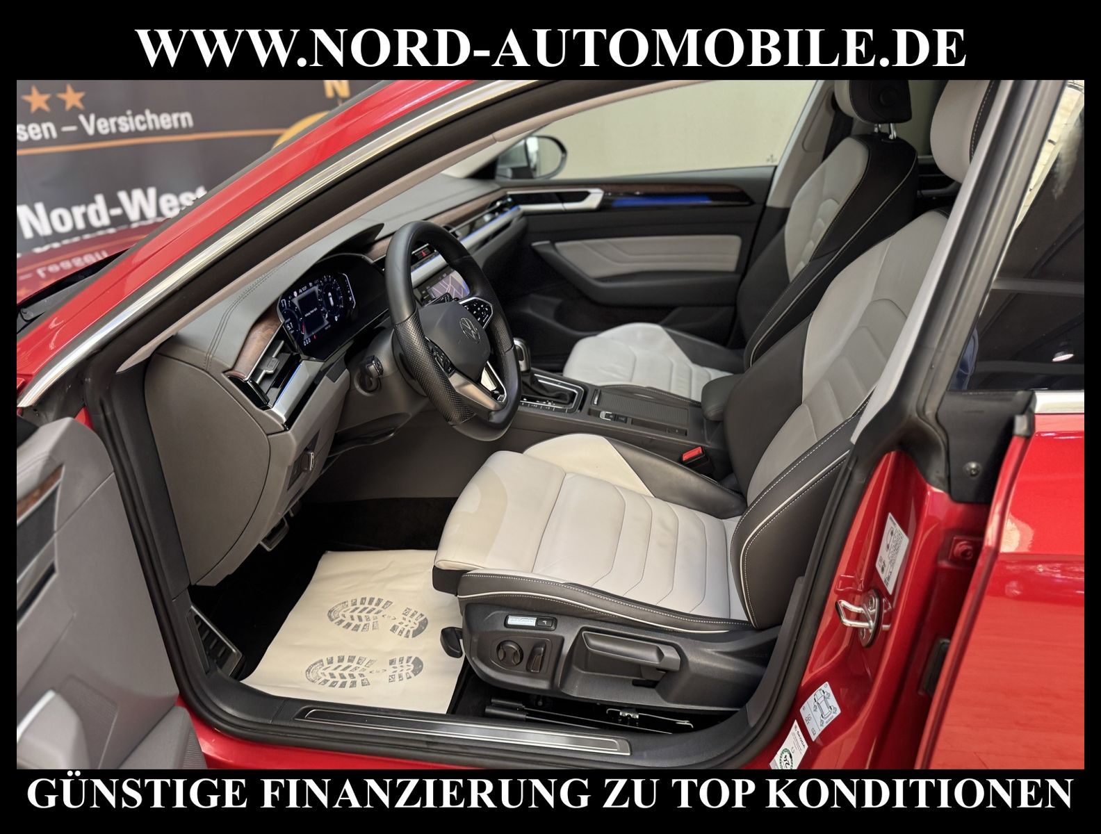 KomfortExtrasUnterhaltungBeschreibungwww.nord-automobile.de VW ARTEON SHOOTING BRAKEAnsprechpartner:Jan Feldhus, Jonathan Steinfeld, Tom Bijman, Simon Wolff, Matthis Ullrich* FAHRZEUG-NUMMER:M-0122-BD * LACKIERUNG: Kings Red Metallic * Deutsche Auslieferung * Modelljahr:2022 * Abgaskonzept, EU6 AP * UPE brutto 57.661 ¤ * Dynamiklenkung * Reifendruckkontrolle * Lederpaket ''Nappa'' * Einparkhilfe vorn und hinten * Wired & Wireless App-Connect * Navigationssystem ''Discover Pro'' inkl.''Streaming & Internet'' * Automatische Distanzregelung(mit follow to stop) und Speed-Limiter * LED-Scheinwerfer * Mit Verkehrszeichenerkennung * Digitaler Radioempfang * Mit Rückfahrkamerasystem * Zentralverriegelung ''Keyless-Entry''ohne Safesicherung * Geschwindigkeitsbegrenzungsanlage * Climatronic ( 3-Zonen ) mit Klimabedienteil hinten * Front Assist inkl. City ANB für ACC high * Komforttelefonie und Wireless charging( ohne LTE ) * Spurhalteassistent plus Emergency Assist und Stauassistent * Sitzheizung für Vorder-/u.Hintersitze, getrennt regelbar * Höheneinstellung, manuell f.Vordersitze plus Sitzflächen-Neigungs u.Tiefeneins.links, plus Lehneneinst.elektr.links * Rücksitzbank ungeteilt, Lehne geteilt umlegbar, mit Mittelarmlehne * Ledersportmultifunktionslenkrad, beheizbar mit Tiptronic * Fernlichtassistent * Ambientebeleuchtung * Sport-Komfortsitze vorn * Scheiben seitlich in Wärmeschutzverglasung, ab B-Säule und hinten dunkel eingefärbt * Radschrauben mit Diebstahlsicherung(nicht abschließbar) * Außenspiegel automatisch abblendbar elektrisch anklapp-/einstellbar, beheizbar, mit Beifahrerspiegelabsenkung * Airbag FS und BFS, Knieairbag auf FS, mit BFS-Deaktivierung * Sicherheitsinnenspiegel automatisch abblendbar * Start/Stopp-Anlage mit Rekuperation * 6-Gang-Automatikgetriebe * Leichtmetallräder 8J x 18 * Nord-Automobile - Ihr starker und kompetenter Partner seit über 30 Jahren * Wir bieten Ihnen eine günstige Finanzierung auch ohne Anzahlung über die * AutoEuropaBank - Zweigniederlassung der Volkswagen Bank GmbH an * 20 XXL-Fotografien dieses Fahrzeuges finden Sie unter www.nord-automobile.de * Gerne unterbreiten wir Ihnen ein Angebot zum Ankauf Ihres bisherigen Fahrzeuges * Beim Export-Geschäft führen wir die Ausfuhranmeldung und Zulassung für Sie durch * Wir sind Meister-Werkstatt und zertifizierte GTÜ-Prüfstelle * Lernen Sie uns kennen - wir freuen uns auf Ihren Besuch * Keine Haftung für Druck & Schreibfehler. ... Klima vorn+hinten, Klimaautomatik, Automatik, Leder, Navigationssystem, Sitzheiz. vorn, Sitzheiz. hinten, Regensensor, ESP, ASR, ABS, Distronic, Parktronic System, Multifunktionslenkr., Radio, Bordcomputer, Spiegel autom. abblendbar, Spiegel beheizbar, elektr. Fensterheber vorn, elektr. WFS, Keyless-Go, ZV mit Fernb., Fahrerairb., Beifahrerairb., Seitenairbag vorn, Kopfairbags, Leichtmetallfelgen, elektr. Fahrwerksregelung, Nichtraucher, Traktionskontr., Sitzbank teilbar, Innenraumfilter, Lenksaeule einstellbar, abklappb. Spiegel, elektr. verstellb. Spiegel, Kopfst. hinten, Gurtstraffer, Gepaeckraumabd., Nebelschlussl., Scheibenbr., Holzoptik, Mittelarmlehne, Lendenwirbelst., Sitzhoehenv., Sitzheizung Fahrer + Beif., Lichtsensor, Waermeschutzvergl., 12 V Zusatzanschluss, aus erster Hand, Schadstoffklasse: Euro 6, Frontantrieb, Lederlenkrad, Lederschaltknauf, HSN 0603, TSN COR, Verbrauch: 1,3/0,0/0,0 l/100 km (komb/inn/auß), CO2: 26 g/km, Partikelfilter, HU + AU wird vor Verkauf erneuert, Feinstaubplakette: 4 - Grün |