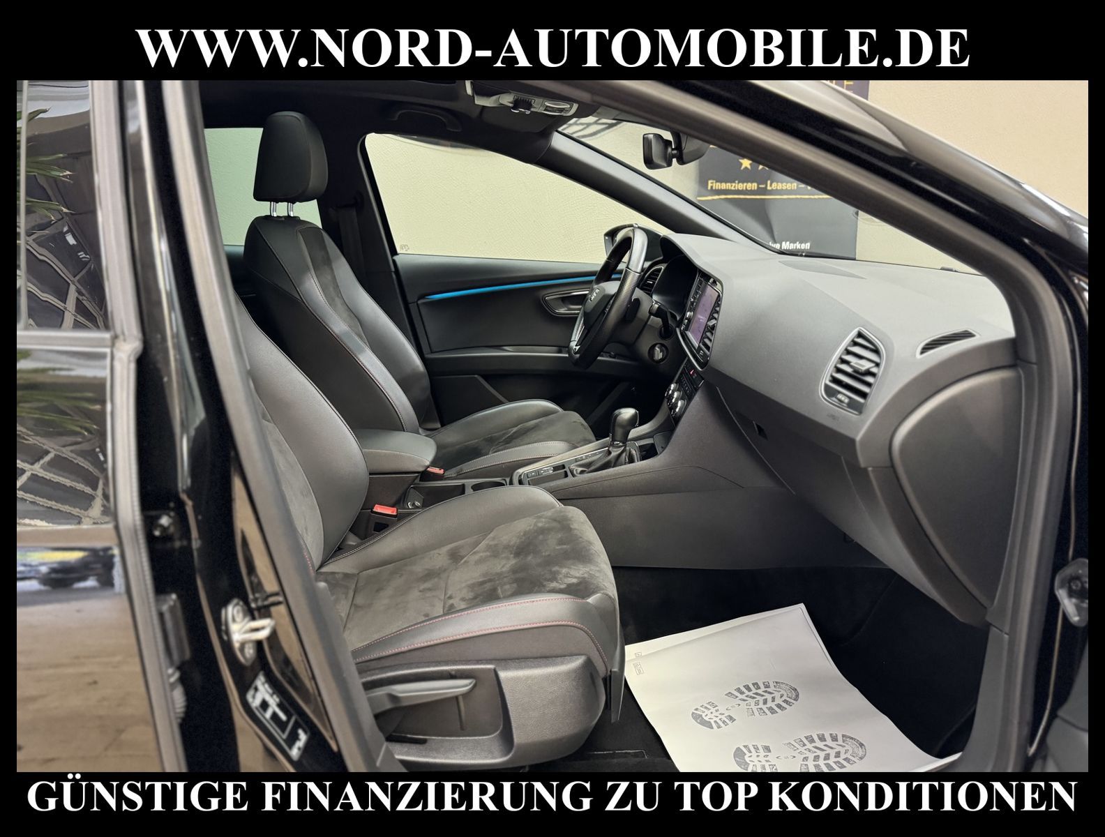 KomfortExtrasUnterhaltungBeschreibungwww.nord-automobile.de Seat Leon FR-Line Black Matt Edition 2.0 TDI 110kW 7-Gang Automatikgetriebe 4 TürenAnsprechpartner: Jan Feldhus, Jonathan Steinfeld, Tom Bijman, Simon Wolff, Matthis Ullrich* FAHRZEUG-NUMMER: M-4820-BD * LACKIERUNG: Mitternachtsschwarz * Modelljahr:2020 * UPE brutto 38.214 ¤ * Deutsche Auslieferung * Schadstoffarm nach Abgasnorm Euro 6d-TEMP * Sportpaket * Navigationssystem * Einparkhilfe vorn und hinten * Sitzheizung für Vordersitze getrennt regelbar * Panorama-Ausstelldach elektrisch * Rückfahrkamera * LED Scheinwerfer * Anhängevorrichtung, abnehmbar und abschließbar * Müdigkeitserkennung * Ultraschall-Einparkhilfe vorne und hinten mit OPS (Optisches Parksystem) * Klimaautomatik * Mit Verkehrszeichenerkennung * DAB (Digital Audio Broadcasting) * Digitaler Radioempfang * Fahrassistenz-Paket - Fernlichtassistent - Verkehrszeichenerkennung - Automatische Distanzregelung (ACC) - Spurhalteassistent - Frontkamera * Komfort telefonie * Geschwindigkeitsbegrenzungsanlage * Mirror Link plus Wireless RSE ''App'' * Full Link (MirrorLink, Apple CarPlay und Android Auto) * Spurhalte-, Stau-, und Emergency Assistent (Heading Control Assist) * Soundsystem mit Subwoofer ''branded'' * Kombiinstrument digital (virtual cockpit) * Automatische Distanzregelung * Connectivity Box: Induktive Ladestation + GSM-Verstärker * Komfortsitze vorn * Make-up-Spiegel links, beleuchtet, mit Abdeckung und Tasche * Höheneinstellung, manuell, für Vordersitze * Fernlichtassistent * Rücksitzbank ungeteilt, Lehne geteilt umlegbar mit Mittelarmlehne * Tagesfahrlicht mit Assistenzfahrlicht u.Coming- Leaving-home Funktion manuell * Scheiben seitlich in Wärmeschutzver- glasung, ab B-Säule und hinten dunkel eingefärbt * Lendenwirbelstütze, manuell einstellbar in Vordersitzlehnen * Leuchtweitenregulierung, autom.dynamisch * Scheibenwischer-Intervallschaltung mit Licht/Regensensor * Winterpaket: Sitzheizung vorne, Scheinwerfer-Reinigungsanlage, beheizbare Scheibenwaschdüsen, beheizbare Aussenspiegel * Scheinwerferreinigungsanlage * Ledersportmultifunktionslenkrad mit Tiptronic * Fensterheber mit Komfortschaltung und Abschaltsicherung * City-Notbremsfunktion * Ablage-Paket * Nebelscheinwerfer * Multifunktionsanzeige/Bordcomputer * Außenspiegel, elektrisch anklappbar und elektrisch einstell-/beheizbar * Sicherheitsinnenspiegel automatisch abblendbar * Reifendruckkontrolle * FR Dynamik-Paket: Adaptive Fahrwerklenkung (DCC), Progressivlenkung * Kindersitzverankerung für Kindersitzsystem ISO FIX * Front Assist inkl. City ANB für ACC high * Seitenairbag vorn, mit Kopfairbag * Diebstahlalarmanlage, Innenraumüber- wachung, Back-up-Horn und Abschleppschutz * Dynamiklenkung * 7-Gang-Automatikgetriebe * Leichtmetallräder 7 1/2J x 18 * Start/Stopp-Anlage mit Rekuperation * Nord-Automobile - Ihr starker und kompetenter Partner seit über 30 Jahren * Wir bieten Ihnen eine günstige Finanzierung auch ohne Anzahlung über die * AutoEuropaBank - Zweigniederlassung der Volkswagen Bank GmbH an * 20 XXL-Fotografien dieses Fahrzeuges finden Sie unter www.nord-automobile.de * Gerne unterbreiten wir Ihnen ein Angebot zum Ankauf Ihres bisherigen Fahrzeuges * Beim Export-Geschäft führen wir die Ausfuhranmeldung und Zulassung für Sie durch * Wir sind Meister-Werkstatt und zertifizierte GTÜ-Prüfstelle * Lernen Sie uns kennen - wir freuen uns auf Ihren Besuch * Keine Haftung für Druck & Schreibfehler. ... Klima, Klimaautomatik, Automatik, Navigationssystem, Sitzheiz. vorn, Regensensor, ESP, ABS, Distronic, Multifunktionslenkr., Radio, Soundsystem, Tel. m. Freisprech., Bordcomputer, Tempomat, Spiegel beheizbar, Scheinwerferreinigung, elektr. Fensterheber vorn, elektr. WFS, ZV mit Fernb., Fahrerairb., Beifahrerairb., Seitenairbag vorn, Kopfairbags, Leichtmetallfelgen, Nichtraucher, Anhaengerk., Nebelscheinw., abklappb. Spiegel, Mittelarmlehne, Sitzhoehenv., Sitzheizung, Lichtsensor, aus erster Hand, Schadstoffklasse: Euro 6, Diesel, Frontantrieb, Lederlenkrad, HSN 7593, TSN AIR, Verbrauch: 4,3/5,0/3,8 l/100 km (komb/inn/auß), CO2: 138 g/km, Feinstaubplakette: 4 - Grün |
