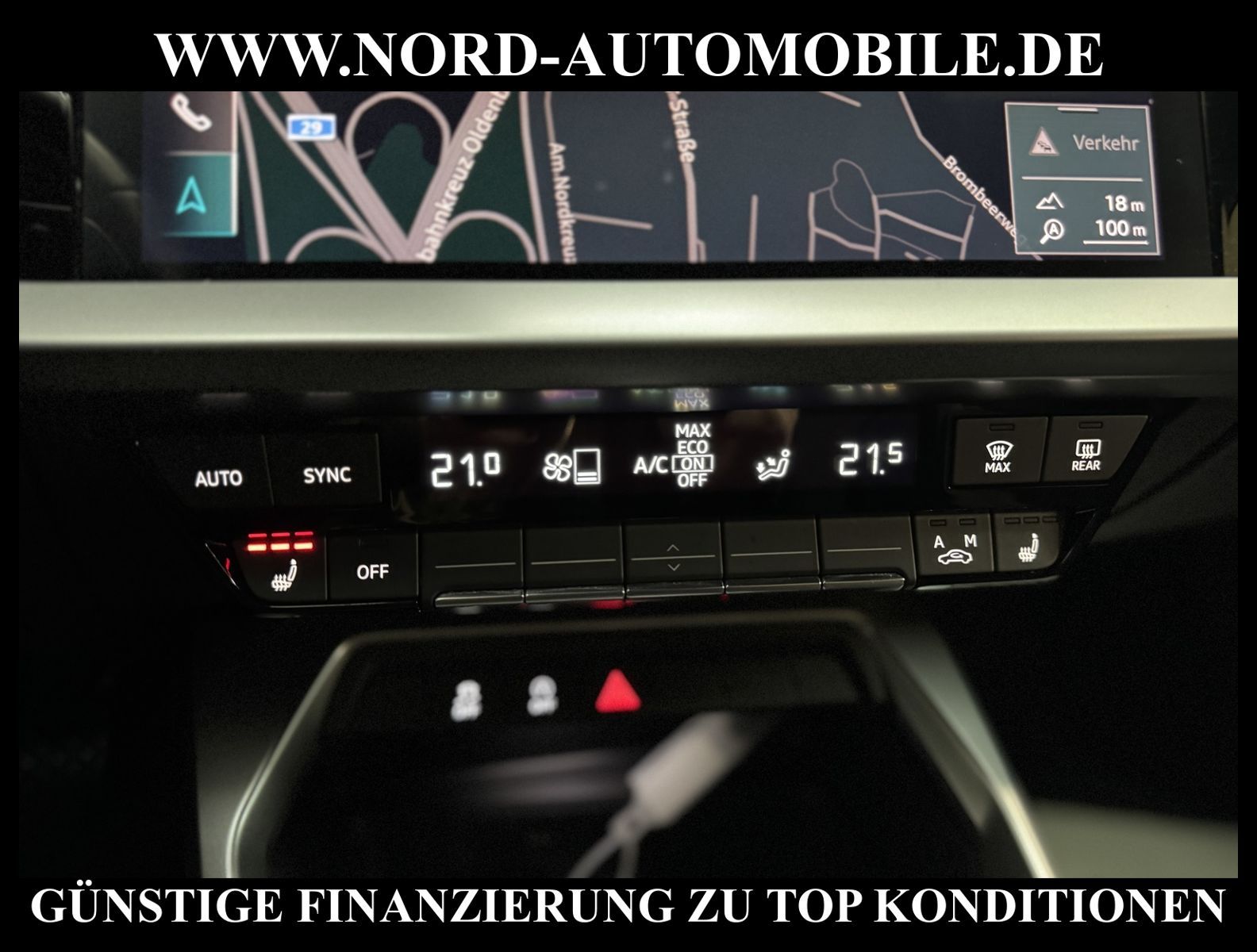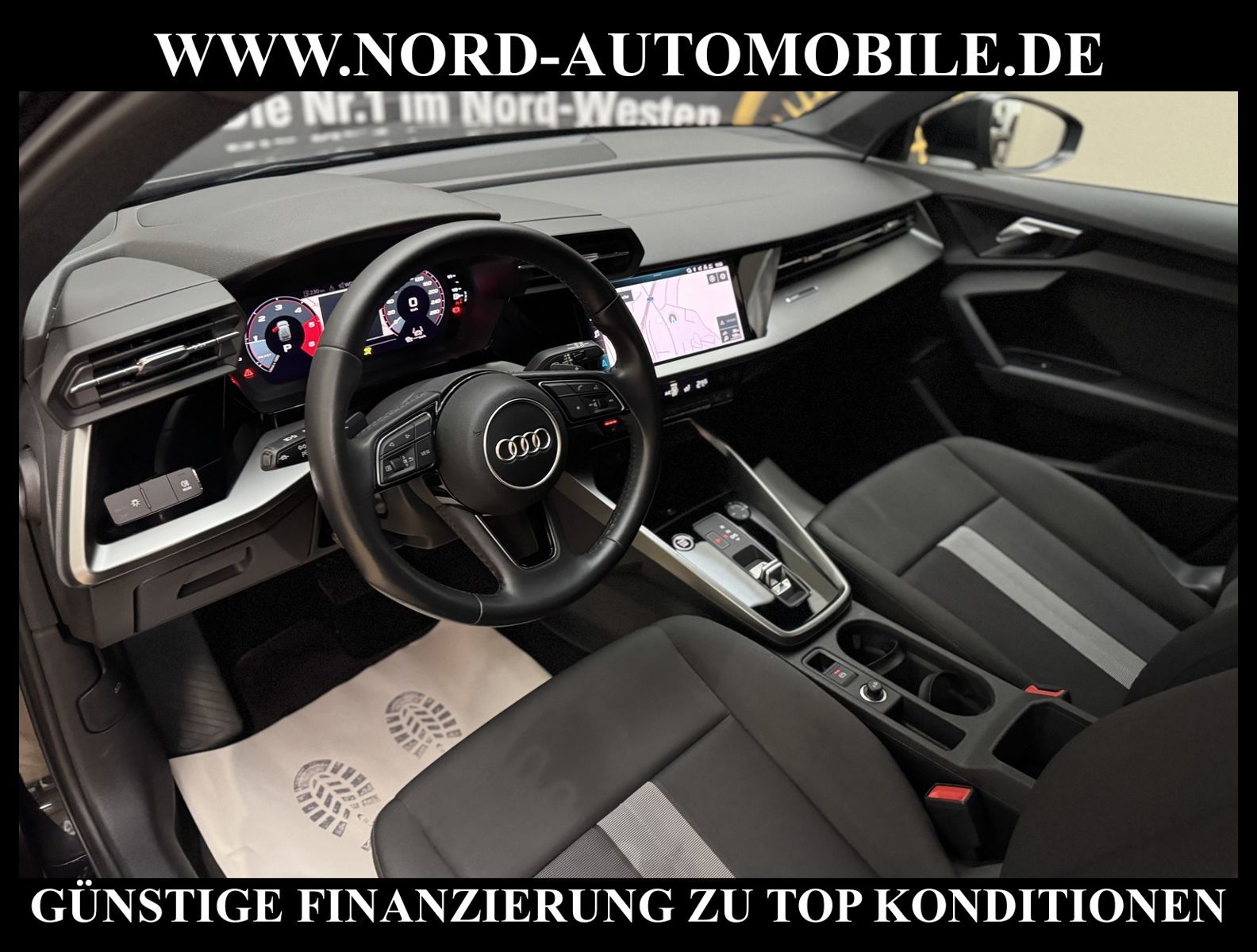 KomfortExtrasUnterhaltungBeschreibungwww.nord-automobile.de Audi A3 Sportback S line 2.0 35 TDI 110kW 7-Gang S tronic 4 TürenAnsprechpartner: Jan Feldhus, Jonathan Steinfeld, Tom Bijman, Simon Wolff* FAHRZEUG-NUMMER: M-9531 * LACKIERUNG: Mythosschwarz Metallic * Modelljahr:2021 * UPE brutto 47.519 ¤ * Deutsche Auslieferung * Schadstoffarm nach Abgasnorm Euro 6d-TEMP * MMI Navigation Plus mit MMI Touch * Sitzheizung vorn * Geschwindigkeitsbegrenzungsanlage * Audi virtual cockpit * Automatische Distanzregelung (mit follow to stop) und Speed-Limiter * LED-Scheinwerfer * Einparkhilfe hinten (APS) * Bluetooth-Freisprecheinrichtung mit Spracherkennung (Audi Phone Box) * Radioempfang digital (DAB) * Schließ-/Startsystem Advanced Key (Komfortschlüssel * Vorbereitung für Head-up Display * Audi Sound-System * Klimaautomatik * Lenkrad (Sport/Leder - 3-Speichen) mit Multifunktion und Schaltfunktion * Dachhimmel in Stoff schwarz * Scheibenwischer mit Regensensor * Airbag Beifahrerseite abschaltbar * Wegfahrsperre (elektronisch) * Reifendruck-Kontrollanzeige * Getriebe 7-Gang - Doppelkupplungsgetriebe S-tronic * Start-Stop-System mit Rekuperation * Gepäckraumklappe elektr. betätigt (öffnen + schliessen * Außenspiegel elektr. verstell- und heizbar, beide * Leichtmetallräder, 5-Parallelspeichen 8, 0Jx17, Reifen 225/45 R17 * Nord-Automobile - Ihr starker und kompetenter Partner seit über 30 Jahren * Wir bieten Ihnen eine günstige Finanzierung auch ohne Anzahlung über die * AutoEuropaBank - Zweigniederlassung der Volkswagen Bank GmbH an * 20 XXL-Fotografien dieses Fahrzeuges finden Sie unter www.nord-automobile.de * Gerne unterbreiten wir Ihnen ein Angebot zum Ankauf Ihres bisherigen Fahrzeuges * Beim Export-Geschäft führen wir die Ausfuhranmeldung und Zulassung für Sie durch * Wir sind Meister-Werkstatt und zertifizierte GTÜ-Prüfstelle * Lernen Sie uns kennen - wir freuen uns auf Ihren Besuch * Keine Haftung für Druck & Schreibfehler. ... Klima, Klimaautomatik, Automatik, Navigationssystem, Sitzheiz. vorn, Regensensor, ESP, ABS, Distronic, Multifunktionslenkr., Soundsystem, Tel. m. Freisprech., Bordcomputer, Spiegel beheizbar, elektr. Fensterheber vorn, elektr. WFS, ZV mit Fernb., Fahrerairb., Beifahrerairb., Leichtmetallfelgen, Nichtraucher, elektr. verstellb. Spiegel, Sitzheizung, Schadstoffklasse: Euro 6, Diesel, Frontantrieb, Lederlenkrad, HSN 0588, TSN BUG, Verbrauch: 3,8/4,2/3,5 l/100 km (komb/inn/auß), CO2: 100 g/km, HU + AU wird vor Verkauf erneuert, Feinstaubplakette: 4 - Grün |