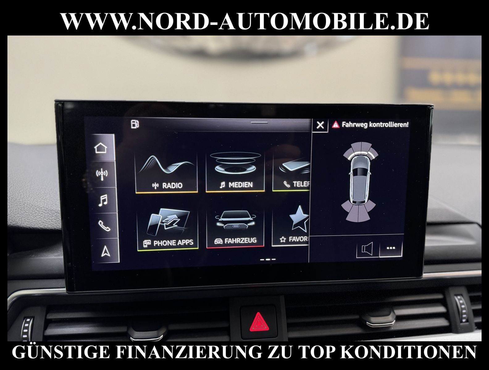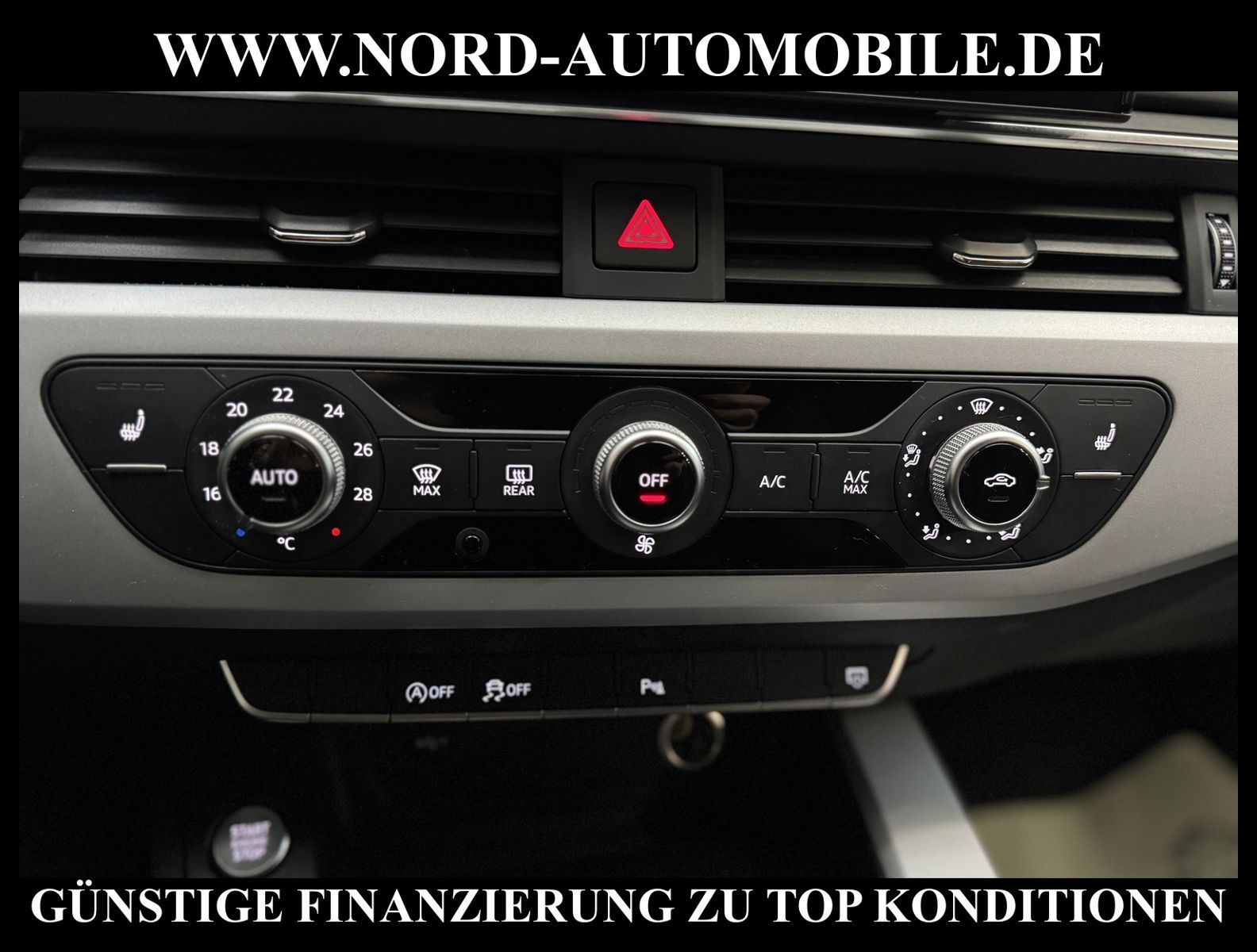 KomfortExtrasUnterhaltungBeschreibungwww.nord-automobile.de AUDI A4 AvantAnsprechpartner:Jan Feldhus, Jonathan Steinfeld, Tom Bijman, Simon Wolff, Matthis Ullrich* FAHRZEUG-NUMMER: M-9848-BD * LACKIERUNG:Mythosschwarz Metallic * Deutsche Auslieferung * Mdelljahr:2022 * UPE brutto 45.261 ¤ * Abgaskonzept, EU6 AP * Audi Smartphone Interface * Einparkhilfe plus * Sonnenschutzrollo für Seitenscheiben hinten * Sitzheizung für Vordersitze getrennt regelbar * Navigationsgerät-High * Telefonvorbereitung für Handy * Digitaler Radioempfang * Einparkhilfe vorn und hinten * Multifunktionsanzeige/Bordcomputer''TOP'' * Geschwindigkeitsregelanlage plus Speed-Limiter * LED-Scheinwerfer * Komfortschlüssel inkl. sensorgesteuerterGepäckraumentriegelung inkl. Gepäckraum-klappe elektrisch öffnend und schließend * Ledersportmultifunktionslenkrad * Höheneinstellung, manuell, für Vordersitze * Rücksitzbank ungeteilt, Lehne geteilt umlegbar (dreiteilig) mit Mittelarmlehne * Zentralverriegelung ''Keyless-Entry''ohne Safesicherung * Servoschließung Heckklappe * Glas im Fond dunkel eingefärbt(Venus 35/ Privacy)vorn Wärmeschutzglas (grün) * Fernlichtassistent * Sicherheitsinnenspiegel automatisch abblendbar * Airbag FS und BFS, ohne Knieairbag, mit BFS-Deaktivierung * Außenspiegel, automatisch abblendbar elektrisch anklapp-/einstell-/beheizbar * Reifendruckkontrolle * Start/Stopp-Anlage mit Rekuperation * Leichtmetallräder 7 1/2J x17 * 7-Gang-Automatikgetriebe * Nord-Automobile - Ihr starker und kompetenter Partner seit über 30 Jahren * Wir bieten Ihnen eine günstige Finanzierung auch ohne Anzahlung über die * AutoEuropaBank - Zweigniederlassung der Volkswagen Bank GmbH an * 20 XXL-Fotografien dieses Fahrzeuges finden Sie unter www.nord-automobile.de * Gerne unterbreiten wir Ihnen ein Angebot zum Ankauf Ihres bisherigen Fahrzeuges * Beim Export-Geschäft führen wir die Ausfuhranmeldung und Zulassung für Sie durch * Wir sind Meister-Werkstatt und zertifizierte GTÜ-Prüfstelle * Lernen Sie uns kennen - wir freuen uns auf Ihren Besuch * Keine Haftung für Druck & Schreibfehler. ... Klima, Klimaautomatik, Automatik, Navigationssystem, Sitzheiz. vorn, Regensensor, ESP, ABS, Parktronic System, Multifunktionslenkr., Radio, Bordcomputer, Tempomat, Spiegel autom. abblendbar, Spiegel beheizbar, elektr. Fensterheber vorn, elektr. WFS, Keyless-Go, Beifahrerairb., Seitenairbag vorn, Kopfairbags, Leichtmetallfelgen, Nichtraucher, Servolenkung, Sitzbank teilbar, Dachreling, abklappb. Spiegel, elektr. verstellb. Spiegel, Kopfst. vorn, Mittelarmlehne, Sitzheizung Fahrer + Beif., Lichtsensor, Waermeschutzvergl., aus erster Hand, Schadstoffklasse: Euro 6, Frontantrieb, Lederlenkrad, HSN 0588, TSN BNW, Verbrauch: 6,0/7,5/5,1 l/100 km (komb/inn/auß), CO2: 145 g/km, Partikelfilter, HU + AU wird vor Verkauf erneuert, Feinstaubplakette: 4 - Grün |