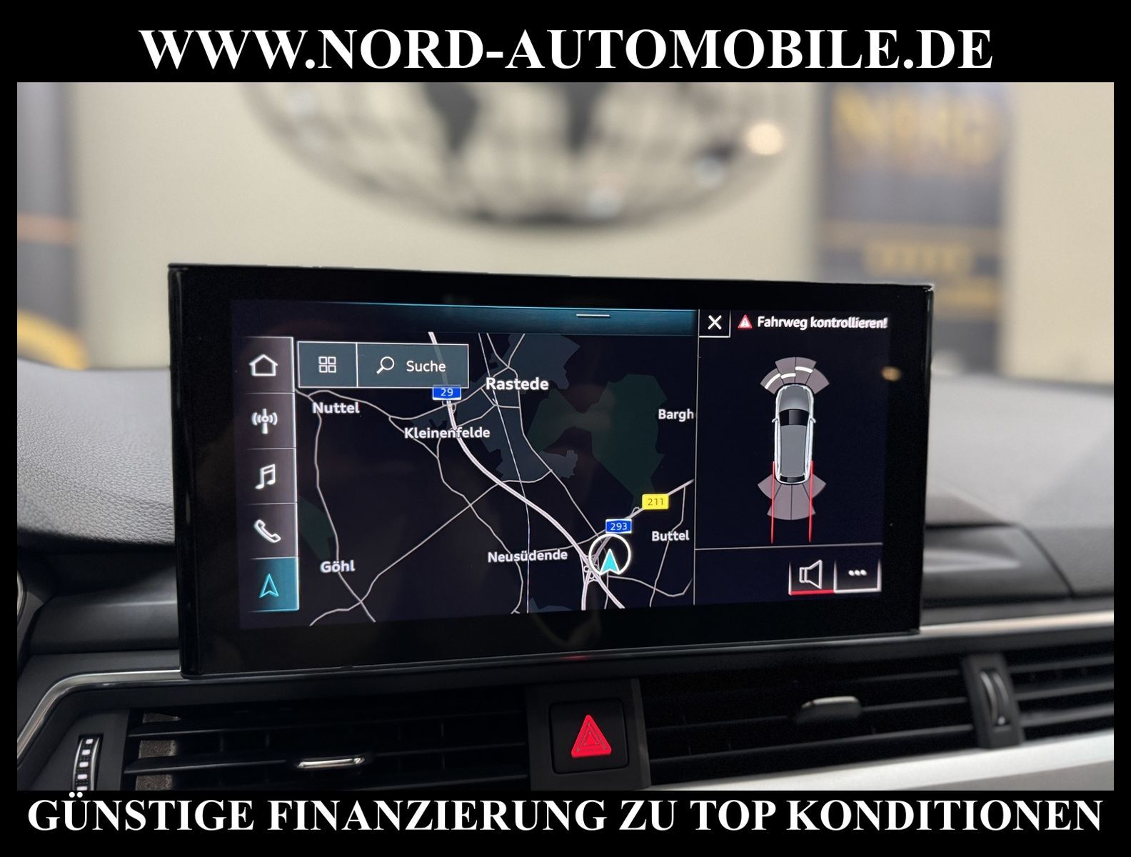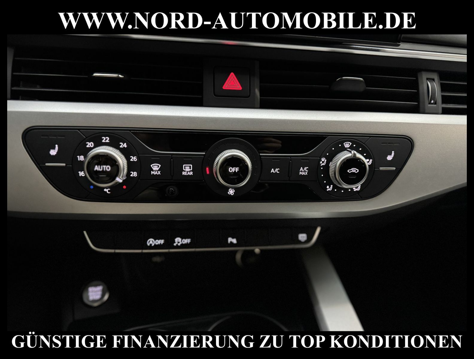KomfortExtrasUnterhaltungBeschreibungwww.nord-automobile.de AUDI A4 AvantAnsprechpartner:Jan Feldhus, Jonathan Steinfeld, Tom Bijman, Simon Wolff, Matthis Ullrich* FAHRZEUG-NUMMER: M-6774-BD * LACKIERUNG:Mythosschwarz Metallic * Deutsche Auslieferung * Mdelljahr:2022 * UPE brutto 45.261 ¤ * Abgaskonzept, EU6 AP * Audi Smartphone Interface * Einparkhilfe plus * Sonnenschutzrollo für Seitenscheiben hinten * Sitzheizung für Vordersitze getrennt regelbar * Navigationsgerät-High * Telefonvorbereitung für Handy * Digitaler Radioempfang * Einparkhilfe vorn und hinten * Multifunktionsanzeige/Bordcomputer''TOP'' * Geschwindigkeitsregelanlage plus Speed-Limiter * LED-Scheinwerfer * Komfortschlüssel inkl. sensorgesteuerterGepäckraumentriegelung inkl. Gepäckraum-klappe elektrisch öffnend und schließend * Ledersportmultifunktionslenkrad * Höheneinstellung, manuell, für Vordersitze * Rücksitzbank ungeteilt, Lehne geteilt umlegbar (dreiteilig) mit Mittelarmlehne * Zentralverriegelung ''Keyless-Entry''ohne Safesicherung * Servoschließung Heckklappe * Glas im Fond dunkel eingefärbt(Venus 35/ Privacy)vorn Wärmeschutzglas (grün) * Fernlichtassistent * Sicherheitsinnenspiegel automatisch abblendbar * Airbag FS und BFS, ohne Knieairbag, mit BFS-Deaktivierung * Außenspiegel, automatisch abblendbar elektrisch anklapp-/einstell-/beheizbar * Reifendruckkontrolle * Start/Stopp-Anlage mit Rekuperation * Leichtmetallräder 7 1/2J x17 * 7-Gang-Automatikgetriebe * Nord-Automobile - Ihr starker und kompetenter Partner seit über 30 Jahren * Wir bieten Ihnen eine günstige Finanzierung auch ohne Anzahlung über die * AutoEuropaBank - Zweigniederlassung der Volkswagen Bank GmbH an * 20 XXL-Fotografien dieses Fahrzeuges finden Sie unter www.nord-automobile.de * Gerne unterbreiten wir Ihnen ein Angebot zum Ankauf Ihres bisherigen Fahrzeuges * Beim Export-Geschäft führen wir die Ausfuhranmeldung und Zulassung für Sie durch * Wir sind Meister-Werkstatt und zertifizierte GTÜ-Prüfstelle * Lernen Sie uns kennen - wir freuen uns auf Ihren Besuch * Keine Haftung für Druck & Schreibfehler. ... Klima, Klimaautomatik, Automatik, Navigationssystem, Sitzheiz. vorn, Regensensor, ESP, ABS, Parktronic System, Multifunktionslenkr., Radio, Bordcomputer, Tempomat, Spiegel autom. abblendbar, Spiegel beheizbar, elektr. Fensterheber vorn, elektr. WFS, Keyless-Go, Beifahrerairb., Seitenairbag vorn, Kopfairbags, Leichtmetallfelgen, Nichtraucher, Servolenkung, Sitzbank teilbar, Dachreling, abklappb. Spiegel, elektr. verstellb. Spiegel, Kopfst. vorn, Mittelarmlehne, Sitzheizung Fahrer + Beif., Lichtsensor, Waermeschutzvergl., aus erster Hand, Schadstoffklasse: Euro 6, Frontantrieb, Lederlenkrad, HSN 0588, TSN BNW, Verbrauch: 6,0/7,5/5,1 l/100 km (komb/inn/auß), CO2: 145 g/km, Partikelfilter, HU + AU wird vor Verkauf erneuert, Feinstaubplakette: 4 - Grün |