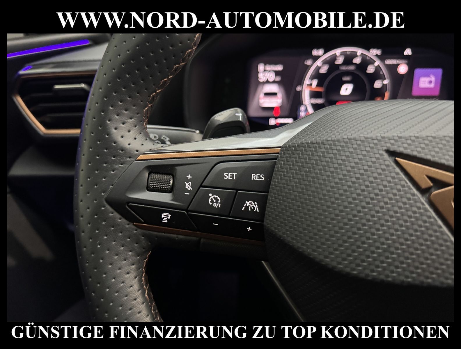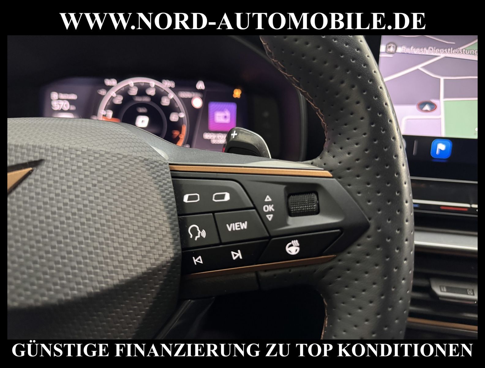 KomfortExtrasUnterhaltungBeschreibungwww.nord-automobile.de Cupra Leon SP 1.5 eTSI 110kW 7-Gang Automatikgetriebe 4 TürenAnsprechpartner: Jan Feldhus, Jonathan Steinfeld, Tom Bijman, Simon Wolff, Matthis Ullrich* FAHRZEUG-NUMMER: M-2594-BD * LACKIERUNG: Mitternachtsschwarz * Modelljahr:2024 * UPE brutto 43.859 ¤ * Deutsche Auslieferung * Abgaskonzept, EU6 AP * Navigationssystem * Full Link (MirrorLink, Apple CarPlay und Android Auto) * Mit Verkehrszeichenerkennung * Automatische Distanzregelung (mit follow to stop) und Speed-Limiter * Komforttelefonie mit LTE und Wireless charging * Mit Rückfahrkamerasystem * Sprachsteuerung * Müdigkeitserkennung * LED-Scheinwerfer * Fahrassistenz-System: Parklenkassistent mit Einparkhilfe vorn und hinten inkl. Rückfahrkamera * Schlüsselloses Schließ- und Startsystem ''Keyless Advanced'' mit Safesicherung * Sitzheizung für Vordersitze getrennt regelbar * Spurhalteassistent plus Emergency Assistund Stauassistent * Climatronic ( 3-Zonen ) mit Klimabedienteil hinten * Kombiinstrument digital (virtual cockpit) * Auspark- und Spurwechselassistent und Ausstiegswarner * Lenkrad heizbar (Sport/Leder) mit Multifunktion und Schaltfunktion * Höheneinstellung, manuell, für Vordersitze * Lendenwirbelstütze, manuell einstellbar in Vordersitzlehnen * Tagesfahrlicht mit Assistenzfahrlicht u.Coming- u. Leaving-home Funktion automatisch * Rücksitzbank ungeteilt, Lehne geteilt umlegbar mit Mittelarmlehne * Einstiegleisten in den Türausschnitten (beleuchtet) * Nebelscheinwerfer * Fernlichtassistent * Scheiben seitlich in Wärmeschutzver- glasung, ab B-Säule und hinten dunkel eingefärbt * Mittelarmlehne vorn * Heckscheiben-Wisch-Waschanlage mit Intervallschaltung * Scheibenwischer-Intervallschaltung mit Licht/Regensensor * Variables Ladebodenkonzept * Airbag FS und BFS, Knieairbag auf FS undBFS, mit BFS-Deaktivierung * Winterpaket: Sitzheizung vorn, Scheinw.-Reinigungsanlage, beheizbares Scheibenwischw., beheizbare Aussenspiegel * Fensterheber mit Komfortschaltung und Abschaltsicherung, elektrisch * Sicherheitsinnenspiegel automatisch abblendbar * Radschrauben mit Diebstahlsicherung (nicht abschließbar) * Reifendruckkontrolle * Diebstahlalarmanlage, Innenraumüber- wachung, Back-up-Horn und Abschleppschutz * Außenspiegel elektr. verstell-, heiz- und anklappbar mit Spiegelabsenkung und Welcome Light * Start/Stopp-Anlage mit Rekuperation * LM-Felgen 18 Zoll * Dynamiklenkung * Getriebe 7-Gang - Doppelkupplungsgetriebe DSG * Nord-Automobile - Ihr starker und kompetenter Partner seit über 30 Jahren * Wir bieten Ihnen eine günstige Finanzierung auch ohne Anzahlung über die * AutoEuropaBank - Zweigniederlassung der Volkswagen Bank GmbH an * 20 XXL-Fotografien dieses Fahrzeuges finden Sie unter www.nord-automobile.de * Gerne unterbreiten wir Ihnen ein Angebot zum Ankauf Ihres bisherigen Fahrzeuges * Beim Export-Geschäft führen wir die Ausfuhranmeldung und Zulassung für Sie durch * Wir sind Meister-Werkstatt und zertifizierte GTÜ-Prüfstelle * Lernen Sie uns kennen - wir freuen uns auf Ihren Besuch * Keine Haftung für Druck & Schreibfehler. ... Klima, Klimaautomatik, Automatik, Navigationssystem, Sitzheiz. vorn, Regensensor, ESP, ABS, Distronic, Parktronic System, Multifunktionslenkr., Radio, Bordcomputer, Spiegel beheizbar, Scheinwerferreinigung, elektr. Fensterheber vorn, Keyless-Go, ZV mit Fernb., Fahrerairb., Beifahrerairb., Leichtmetallfelgen, Nichtraucher, Nebelscheinw., abklappb. Spiegel, elektr. verstellb. Spiegel, Mittelarmlehne, Sitzheizung, Lichtsensor, aus erster Hand, Schadstoffklasse: Euro 6, Frontantrieb, Lederlenkrad, HSN 7593, TSN ATB, CO2: 139 g/km, HU + AU wird vor Verkauf erneuert, Feinstaubplakette: 4 - Grün |