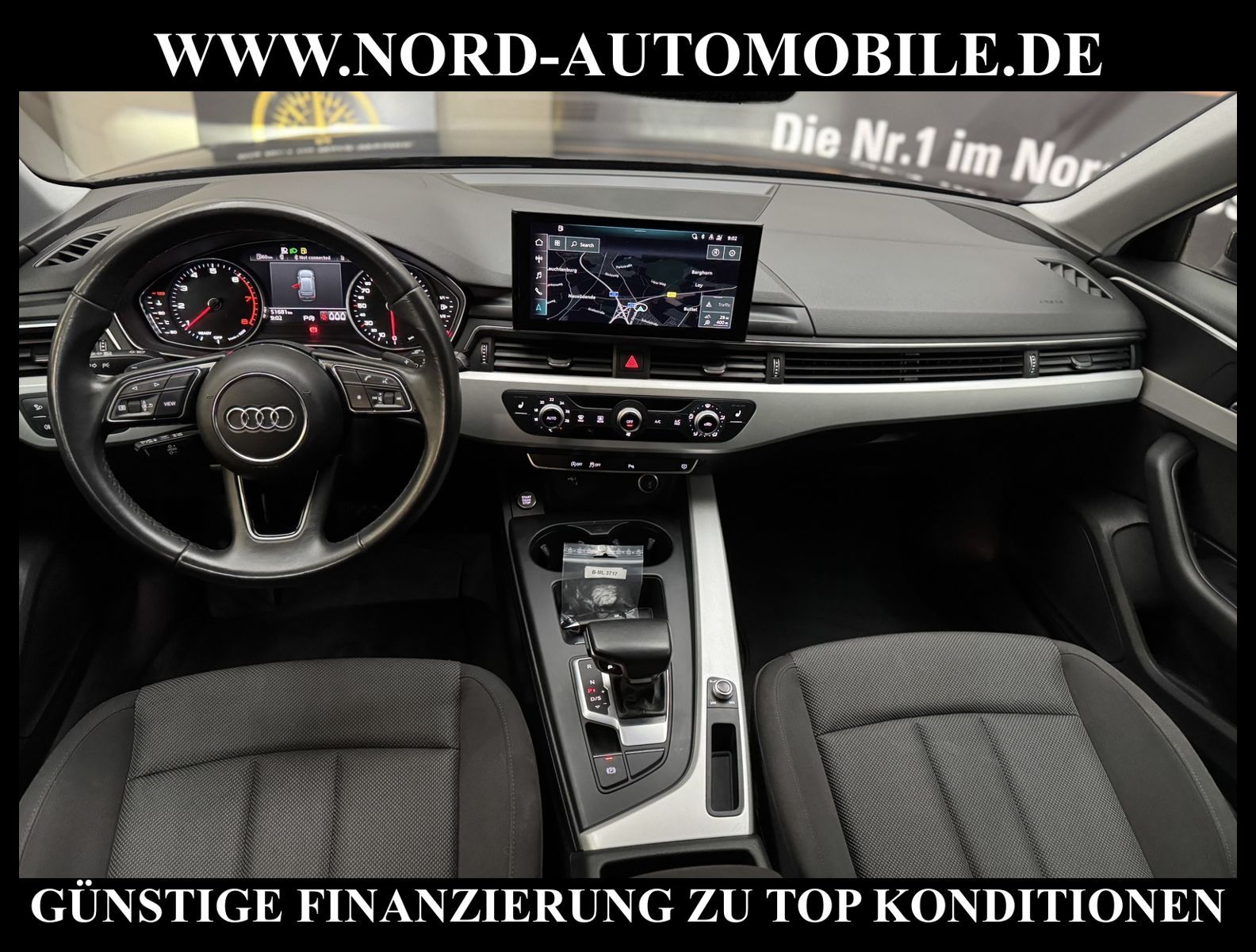 KomfortExtrasUnterhaltungBeschreibungwww.nord-automobile.de AUDI A4 AvantAnsprechpartner:Jan Feldhus, Jonathan Steinfeld, Tom Bijman, Simon Wolff, Matthis Ullrich* FAHRZEUG-NUMMER: M-3842-BD * LACKIERUNG:Mythosschwarz Metallic * Deutsche Auslieferung * Mdelljahr:2022 * UPE brutto 45.261 ¤ * Abgaskonzept, EU6 AP * Audi Smartphone Interface * Einparkhilfe plus * Sonnenschutzrollo für Seitenscheiben hinten * Sitzheizung für Vordersitze getrennt regelbar * Navigationsgerät-High * Telefonvorbereitung für Handy * Digitaler Radioempfang * Einparkhilfe vorn und hinten * Multifunktionsanzeige/Bordcomputer''TOP'' * Geschwindigkeitsregelanlage plus Speed-Limiter * LED-Scheinwerfer * Komfortschlüssel inkl. sensorgesteuerterGepäckraumentriegelung inkl. Gepäckraum-klappe elektrisch öffnend und schließend * Ledersportmultifunktionslenkrad * Höheneinstellung, manuell, für Vordersitze * Rücksitzbank ungeteilt, Lehne geteilt umlegbar (dreiteilig) mit Mittelarmlehne * Zentralverriegelung ''Keyless-Entry''ohne Safesicherung * Servoschließung Heckklappe * Glas im Fond dunkel eingefärbt(Venus 35/ Privacy)vorn Wärmeschutzglas (grün) * Fernlichtassistent * Sicherheitsinnenspiegel automatisch abblendbar * Airbag FS und BFS, ohne Knieairbag, mit BFS-Deaktivierung * Außenspiegel, automatisch abblendbar elektrisch anklapp-/einstell-/beheizbar * Reifendruckkontrolle * Start/Stopp-Anlage mit Rekuperation * Leichtmetallräder 7 1/2J x17 * 7-Gang-Automatikgetriebe * Nord-Automobile - Ihr starker und kompetenter Partner seit über 30 Jahren * Wir bieten Ihnen eine günstige Finanzierung auch ohne Anzahlung über die * AutoEuropaBank - Zweigniederlassung der Volkswagen Bank GmbH an * 20 XXL-Fotografien dieses Fahrzeuges finden Sie unter www.nord-automobile.de * Gerne unterbreiten wir Ihnen ein Angebot zum Ankauf Ihres bisherigen Fahrzeuges * Beim Export-Geschäft führen wir die Ausfuhranmeldung und Zulassung für Sie durch * Wir sind Meister-Werkstatt und zertifizierte GTÜ-Prüfstelle * Lernen Sie uns kennen - wir freuen uns auf Ihren Besuch * Keine Haftung für Druck & Schreibfehler. ... Klima, Klimaautomatik, Automatik, Navigationssystem, Sitzheiz. vorn, Regensensor, ESP, ABS, Parktronic System, Multifunktionslenkr., Radio, Bordcomputer, Tempomat, Spiegel autom. abblendbar, Spiegel beheizbar, elektr. Fensterheber vorn, elektr. WFS, Keyless-Go, Beifahrerairb., Seitenairbag vorn, Kopfairbags, Leichtmetallfelgen, Nichtraucher, Servolenkung, Sitzbank teilbar, Dachreling, abklappb. Spiegel, elektr. verstellb. Spiegel, Kopfst. vorn, Mittelarmlehne, Sitzheizung Fahrer + Beif., Lichtsensor, Waermeschutzvergl., aus erster Hand, Schadstoffklasse: Euro 6, Frontantrieb, Lederlenkrad, HSN 0588, TSN BNW, Verbrauch: 6,0/7,5/5,1 l/100 km (komb/inn/auß), CO2: 145 g/km, Partikelfilter, HU + AU wird vor Verkauf erneuert, Feinstaubplakette: 4 - Grün |
