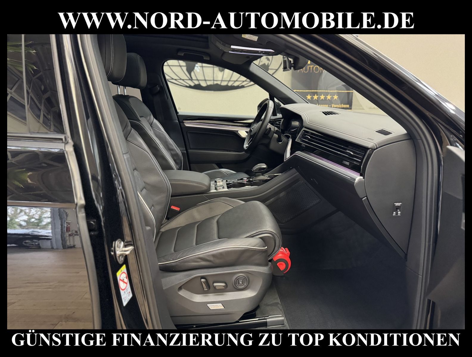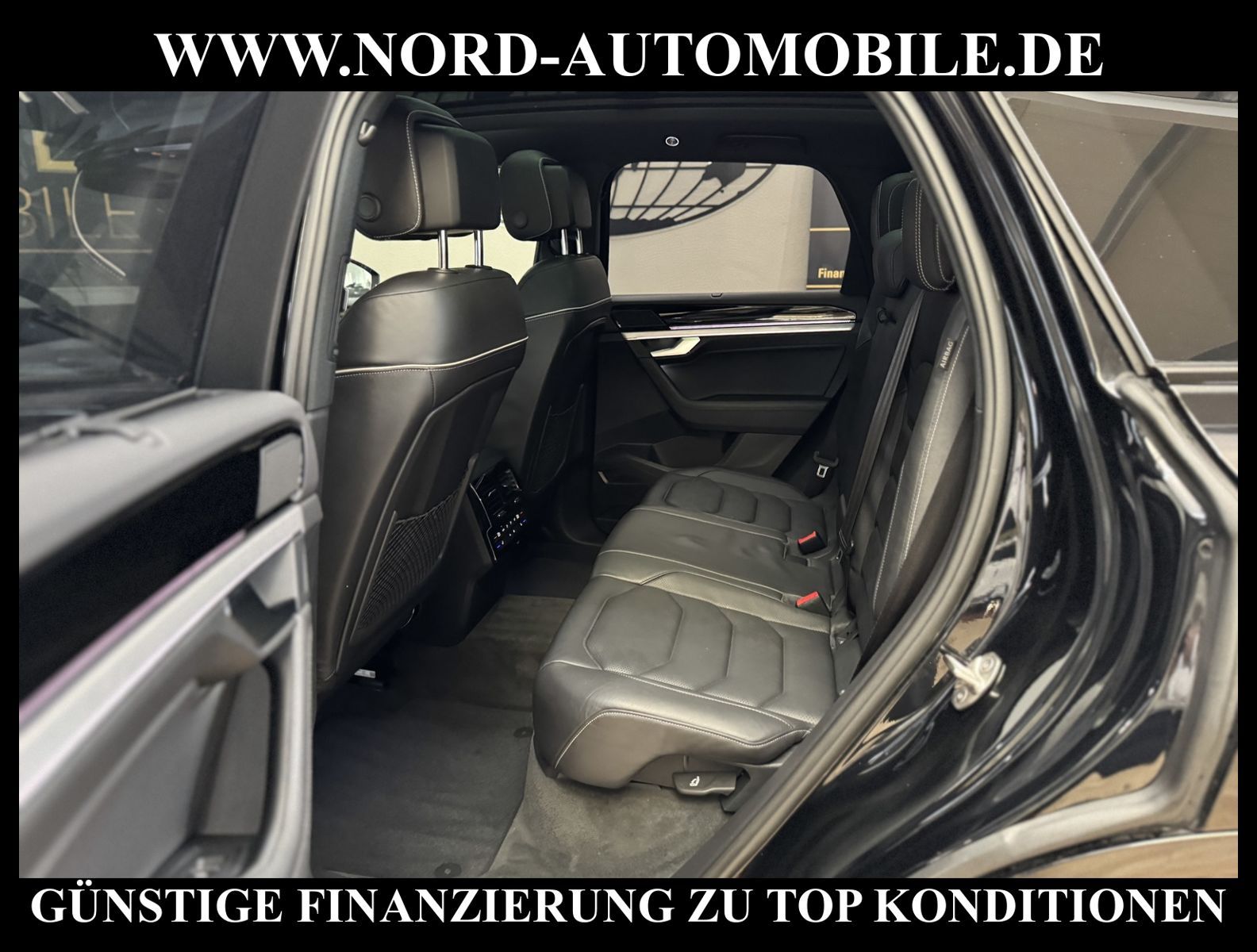 KomfortExtrasUnterhaltungBeschreibungwww.nord-automobile.de Volkswagen Touareg Elegance 4Motion 3.0 TDI SCR 210kW 8-Gang Tiptronic 4 TürenAnsprechpartner: Jan Feldhus, Jonathan Steinfeld, Tom Bijman, Simon Wolff* FAHRZEUG-NUMMER: M-0419- BD * LACKIERUNG: Deep Black Perleffekt * Modelljahr: 2022 * UPE brutto 105.599 ¤ * Unfallfrei * Deutsche Auslieferung * Abgasnorm Euro 6d * R-Line Black Style * 4 Corner Luftfederung mit elektrisch geregelter Dämpfung * Rückfahrkamera mit 360° Umgebungsansicht (Area View) * Head-up-Display * IQ.LIGHT - LED-Matrix-Scheinwerfer * Spurwechselassistent * Digital Cockpit, mehrfarbig, verschiedene Info-Profile wählbar * Schlüsselloses Schließ- und Startsystem ''Keyless Access'' mit Safe-Sicherung * Spurhalteassistent plus Emergency Assist und Stauassistent * Parklenkassistent (Park Assist) und PDC vorn und hinten * Panorama-Ausstell-/Schiebedach * Müdigkeitserkennungserkennung * Mirror Link plus Wireless RSE ''App'' * Sitzbezug / Polsterung: Leder Savona * Dachhimmel in Soul-Schwarz * Active Info Display, mehrfarbig, verschiedene Info-Profile wählbar * Autom. Distanzregelung (ACC inkl. Stop&Go-Funktion) - Geschwindigkeitsbegrenzungsanlage * Sitzheizung für Vorder-/u.Hintersitze, getrennt regelbar * Automatische Distanzregelung ACC ''stop & go'' bis 210 km/h inkl. ''Front Assist'' mit Fußgängererkennung * Navigationsgerät-Premium * Standheizung und -lüftung mit Funkfernbedienung und Vorwahluhr * Verkehrszeichenerkennung * Sonnenschutzrollo an den Türscheiben hinten * Memory-Paket Premium * ''Air Care Climatronic'' mit 4-Zonen-Klimatisierung und Bedienungselementen hinten * Komfort-Paket Keyless Access * Umfeldbeobachtungssystem (Front assist) mit City-Notbremsfunktion * 2 USB-C-Schnittstellen vorn, 1 USB-C-Ladebuchse an der Mittelkonsole hinten * Telefonschnittstelle ''Business'' mit induktiver Ladefunktion * Lenkrad heizbar (Leder) mit Multifunktion und Schaltfunktion * Seitenscheiben in Verbund-Sicherheitsglas, Seitenscheiben hinten und Heckscheibe abgedunkelt * Komfortsitze vorn * Lendenwirbelstützen vorn pneumatisch einstellbar * Lenksäule mit elektrischer Höhen- und Längseinstellung, mit Memory-Funktion * Rücksitzbank und -lehne asymmetrisch geteilt umklappbar, längs verschiebbar, Lehenneigung einstellbar * Vordersitze elektrisch einstellbar, mit Memory-Funktion und längs verschiebbarer Oberschenkelauflage * Ambiente-Paket * Sitze vorn mit Klima- und Massagefunktion * Dynamische Fernlichtregulierung ''Dynamic Light Assist'' für LED-Matrix-Scheinwerfer * Scheibenwaschdüsen vorn automatisch beheizt * Scheinwerfer-Reinigungsanlage * Ambientebeleuchtung mehrfarbig * Frontscheibe in Wärmeschutzglas, geräuschdämmend und beheizbar * Knieairbag Fahrer-/Beifahrerseite, Seitenairbag und Gurtstraffer hinten außen * Kindersitzverankerung für Kindersitzsystem I-Size, 2 x top tether * Radioempfang digital (DAB+) * Airbag für Fahrer und Beifahrer, mit Beifahrerairbag-Deaktivierung, inkl. Knie-Airbag auf der Fahrerseite * Reifenfülldruck-Kontrollsystem * Komfortöffnung Heckklappe (Virtuelles Pedal) plus Easy Close * Außenspiegel elektrisch einstell-, anklapp-, beheizbar und abblendend, Beifahrerspiegelabsenkung und Memory * Diebstahlwarnanlage mit Innenraumüberwachung, Back-up-Horn und Abschleppschutz * 8-Gang-Automatikgetriebe für Allrad * Start-Stopp-System mit Bremsenergie-Rückgewinnung * Dachhimmel in Titanschwarz * Allradlenkung * 4 Leichtmetallräder ''Suzuka'' 9, 5 J x 21 in Schwarz, Volkswagen R * Nord-Automobile - Ihr starker und kompetenter Partner seit über 30 Jahren * Wir bieten Ihnen eine günstige Finanzierung auch ohne Anzahlung über die * AutoEuropaBank - Zweigniederlassung der Volkswagen Bank GmbH an * 20 XXL-Fotografien dieses Fahrzeuges finden Sie unter www.nord-automobile.de * Gerne unterbreiten wir Ihnen ein Angebot zum Ankauf Ihres bisherigen Fahrzeuges * Beim Export-Geschäft führen wir die Ausfuhranmeldung und Zulassung für Sie durch * Wir sind Meister-Werkstatt und zertifizierte GTÜ-Prüfstelle * Lernen Sie uns kennen - wir freuen uns auf Ihren Besuch * Keine Haftung für Druck & Schreibfehler. ... Klima, Klimaautomatik, Automatik, Leder, Navigationssystem, Allrad, Sitzheiz. vorn, Sitzheiz. hinten, Xenon, Vorders. elekt. verstellb., ESP, ABS, Distronic, Parktronic System, Multifunktionslenkr., Radio, Bordcomputer, beheizte Frontscheibe, Spiegel beheizbar, Scheinwerferreinigung, elektr. Fensterheber vorn, Keyless-Go, ZV mit Fernb., Fahrerairb., Beifahrerairb., Seitenairbag vorn, Kopfairbags, Leichtmetallfelgen, Nichtraucher, Sitzbank teilbar, Lenksaeule einstellbar, abklappb. Spiegel, elektr. verstellb. Spiegel, Luftfederung, Mittelarmlehne, elekt. verstellb. Fahre |