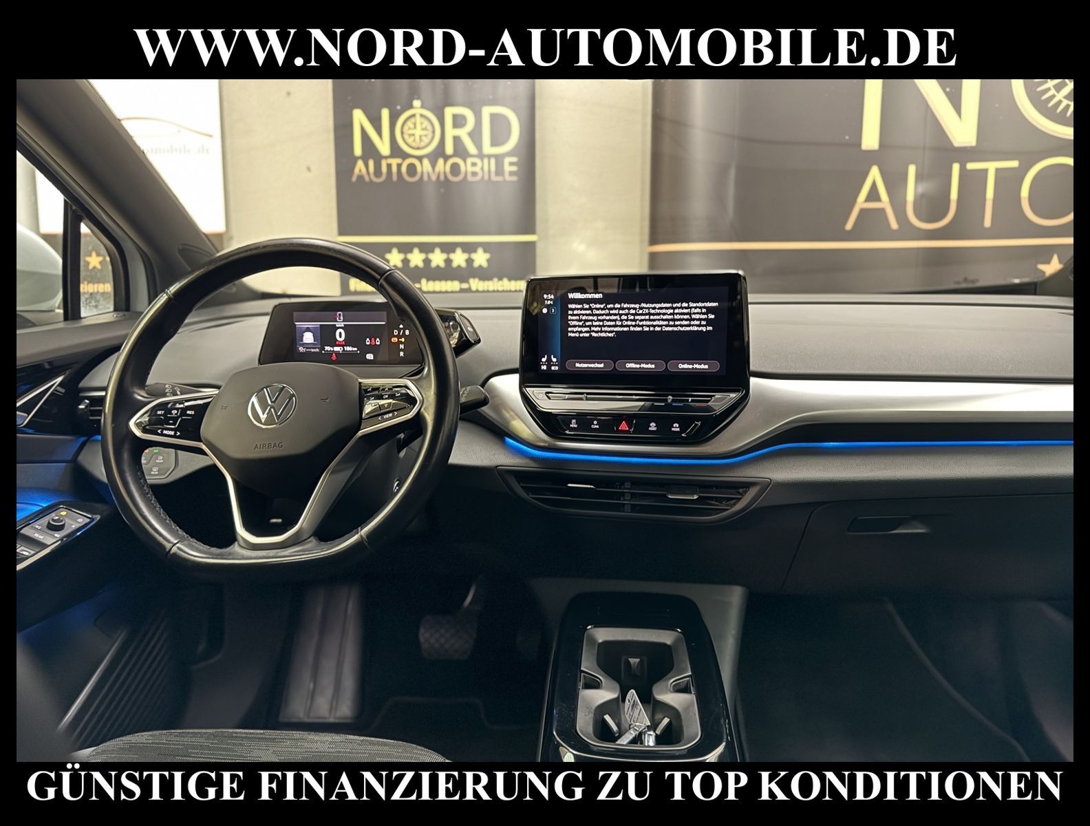 KomfortExtrasUnterhaltungBeschreibungwww.nord-automobile.de Volkswagen ID.4 Pro Performance electric 150kW 1-Gang-Automatik 4 TürenAnsprechpartner: Jan Feldhus, Jonathan Steinfeld, Tom Bijman, Simon Wolff, Matthis Ullrich* FAHRZEUG-NUMMER: M-0633-BD * LACKIERUNG: Gletscherweiß Metallic * Modelljahr:2022 * Mit Batteriezertifikat! * UPE brutto 50.148 ¤ * Deutsche Auslieferung * Style-Paket * Schnellladevorrichtung (CCS-Ladedose) * Navigationssystem ''Discover Media'' inkl. ''Streaming & Internet'' * LED-Scheinwerfer * Einparkhilfe vorne und hinten * Müdigkeitserkennungserkennung * Spurhalteassistent Lane-Assist * Autom. Distanzregelung (ACC inkl. Stop&Go-Funktion) - Geschwindigkeitsbegrenzungsanlage * Zentralverriegelung ''Keyless-Go'' ohne Safesicherung * Verkehrszeichenerkennung * Sitzheizung für Vordersitze getrennt regelbar * Klimaanlage ''Air Care Climatronic'' mit 2-Zonen-Temperaturregelung * 2 USB-C-Schnittstellen vorn, 1 USB-C-Ladebuchse an der Mittelkonsole hinten * Mobiltelefon Schnittstelle Comfort mit kabelloser Ladefunktion * Intelligente Fahrzeugvernetzung (Car2X) * Sprachsteuerungssystem * Sitzbezüge in Stoff, Dessin ''Lizard'' * Lenkrad heizbar (Leder) mit Multifunktion * Sitz vorn links höhenverstellbar * Rücksitzbank ungeteilt, Lehne asymmetrisch geteilt umklappbar * Wärmeschutzverglasung grün getönt * Frontscheibe in Verbundsicherheitsglas, drahtlos beheizbar und infrarot-reflektierend, geräuschdämmend * Scheibenwaschdüsen vorn automatisch beheizt * Scheibenwischer-Intervallschaltung mit Licht/Regensensor * Dachreling silber eloxiert * ISOFIX-Halteösen für Kindersitze auf denäußeren Rücksitzen sowie auf dem Beifahrersitz, i-Size-kompatibel * Umfeldbeobachtungssystem (Front assist) mit City-Notbremsfunktion * Airbag für Fahrer und Beifahrer, mit Beifahrerairbag-Deaktivierung * Radioempfang digital (DAB+) * Sicherheitsinnenspiegel automatisch abblendbar * Kopfairbags vorn und hinten, Seitenairbags vorn, Center-Airbag * Außenspiegel elektrisch einstell-, anklapp-, beheizbar, Umfeldbeleuchtung, Beifahrerspiegelabsenkung * Servolenkung, geschwindigkeitsabhängig (Servotronic) * Reifenkontrollanzeige * 4 Leichtmetallräder ''Drammen'', 8 J x 20 vorn, 9 J x 20 hinten, in Schwarz, Oberfläche glanzgedreht * Nord-Automobile - Ihr starker und kompetenter Partner seit über 30 Jahren * Wir bieten Ihnen eine günstige Finanzierung auch ohne Anzahlung über die * AutoEuropaBank - Zweigniederlassung der Volkswagen Bank GmbH an * 20 XXL-Fotografien dieses Fahrzeuges finden Sie unter www.nord-automobile.de * Gerne unterbreiten wir Ihnen ein Angebot zum Ankauf Ihres bisherigen Fahrzeuges * Beim Export-Geschäft führen wir die Ausfuhranmeldung und Zulassung für Sie durch * Wir sind Meister-Werkstatt und zertifizierte GTÜ-Prüfstelle * Lernen Sie uns kennen - wir freuen uns auf Ihren Besuch * Keine Haftung für Druck & Schreibfehler. ... Klima, Klimaautomatik, Automatik, Navigationssystem, Sitzheiz. vorn, Regensensor, ABS, Distronic, Multifunktionslenkr., Radio, Tel. m. Freisprech., Bordcomputer, beheizte Frontscheibe, Spiegel beheizbar, elektr. Fensterheber vorn, elektr. WFS, Keyless-Go, ZV mit Fernb., Fahrerairb., Beifahrerairb., Kopfairbags, Leichtmetallfelgen, Nichtraucher, Servolenkung, Sitzbank teilbar, Dachreling, abklappb. Spiegel, elektr. verstellb. Spiegel, Sitzhoehenv., Sitzheizung, Lichtsensor, Waermeschutzvergl., aus erster Hand, Heckantrieb, Lederlenkrad, HSN 0603, TSN CLQ |