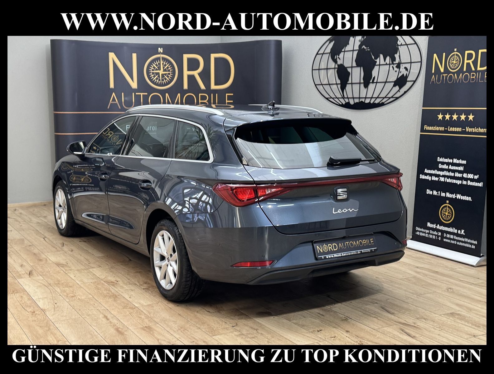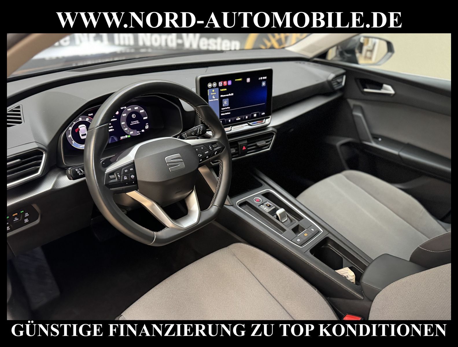 SEAT LEON SPORTSTOURER 1.5 eTSI STYLE AUTOMATIK Ansprechpartner: Jan Feldhus, Jonathan Steinfeld, Tom Bijman, Simon Wolff, Matthis Ullrich* FAHRZEUG-NUMMER: MM-1151-BD * LACKIERUNG: Magnetic Tech Grey * Schadstoffarm nach Abgasnorm Euro 6e * UPE brutto 38.080, - * LED- Hauptscheinwerfer * Smartphone Integration (AppleCarplay, Android Auto) * Außenspiegel elektr. verstell-, heiz- und anklappbar mit Spiegelabsenkung * Connectivity-Box * Klimaanlage Climatronic 3-Zonen * Kombiinstrument digital (virtual cockpit) * Licht- und Sicht-Paket * Schließ-/Startsystem Kessy Advanced * Seitenscheiben hinten und Heckscheibe abgedunkelt * Metallic-Lackierung * Vision-Paket Plus * 6 Lautsprecher * Airbag Fahrer-/Beifahrerseite * Antriebs-Schlupfregelung (ASR) * Automatik-Sicherheitsgurte vorn und hinten * Blinkleuchten LED in Außenspiegel integriert * Bluetooth Audio-Streaming * Bluetooth-Schnittstelle mit Freisprecheinrichtung integriert * Bordcomputer * Dachreling schwarz * Durchladeeinrichtung (Mittelarmlehne hinten) * Einstiegsleisten beleuchtet * Elektron. Querdifferentialsperre (XDS) * Fahrassistenz-System: Müdigkeitserkennung * Fahrassistenz-System: Spurhalteassistent * Fahrassistenz-System: Umfeldbeobachtungssystem (Front assist) mit City-Notbremsfunktion * Fahrassistenz-System: Verkehrszeichenerkennung * Fensterheber elektrisch vorn + hinten mit Komfortschaltung * Geschwindigkeits-Regelanlage (Tempomat) inkl. Geschw.-Begrenzer * Handschuhfach beleuchtet * Heckleuchten LED * Heckleuchten Voll-LED mit Lichtband (Infinite Light) * Isofix-Aufnahmen für Kindersitz an Rücksitz * Kopf-Airbag-System * Kopfstützen hinten (3-fach) * Kopfstützen vorn * Modellpflege * Nebelscheinwerfer LED mit Abbiegelicht * Notrufsystem * Parkbremse elektrisch mit Auto-Hold-Funktion * Radioempfang digital (DAB+) * Reifen-Reparaturset * Reifenkontroll-Anzeige * Rücksitzlehne geteilt/klappbar (1/3-2/3) * Rücksitzlehnen umklappbar mit Fernentriegelung im Kofferraum * Schaltpunktanzeige * Scheinwerfer LED * SEAT Media-System Plus * Seitenairbag * Servolenkung elektro-mechanisch * Steckdose (12V-Anschluß) vorn * Türablagefach vorn * USB-Schnittstelle vorn (2-fach, Typ C) * Zentralverriegelung / Startanlage Keyless Go * Motor 1, 5 Ltr. - 85 kW TSI * Leichtmetallräder 16'' Zoll * Nord-Automobile - Ihr starker und kompetenter Partner seit über 30 Jahren * Wir bieten Ihnen eine günstige Finanzierung auch ohne Anzahlung über die * AutoEuropaBank - Zweigniederlassung der Volkswagen Bank GmbH an * 20 XXL-Fotografien dieses Fahrzeuges finden Sie unter www.nord-automobile.de * Gerne unterbreiten wir Ihnen ein Angebot zum Ankauf Ihres bisherigen Fahrzeuges * Beim Export-Geschäft führen wir die Ausfuhranmeldung und Zulassung für Sie durch * Wir sind Meister-Werkstatt und zertifizierte GTÜ-Prüfstelle * Lernen Sie uns kennen - wir freuen uns auf Ihren Besuch * Keine Haftung für Druck & Schreibfehler. ... Klima vorn+hinten, Klimaautomatik, Automatik, Regensensor, ESP, ASR, ABS, Parktronic System, Multifunktionslenkr., Bordcomputer, Tempomat, Spiegel autom. abblendbar, Spiegel beheizbar, elektr. Fensterheber vorn+hinten, Alarm, elektr. WFS, Keyless-Go, ZV mit Fernb., Fahrerairb., Beifahrerairb., Seitenairbag vorn, Kopfairbags, Leichtmetallfelgen, Nichtraucher, Nebelscheinw., Servolenkung, Traktionskontr., Sitzbank teilbar, Dachreling, abklappb. Spiegel, elektr. verstellb. Spiegel, Kopfst. vorn, Kopfst. hinten, Gepaeckraumabd., Nebelschlussl., Scheibenbr., Mittelarmlehne, Lendenwirbelst., Sitzhoehenv., Lichtsensor, Waermeschutzvergl., 12 V Zusatzanschluss, Schadstoffklasse: Euro 6, Frontantrieb, Lederlenkrad, HSN 7593, TSN ATZ, HU + AU wird vor Verkauf erneuert, Feinstaubplakette: 4 - Grün |