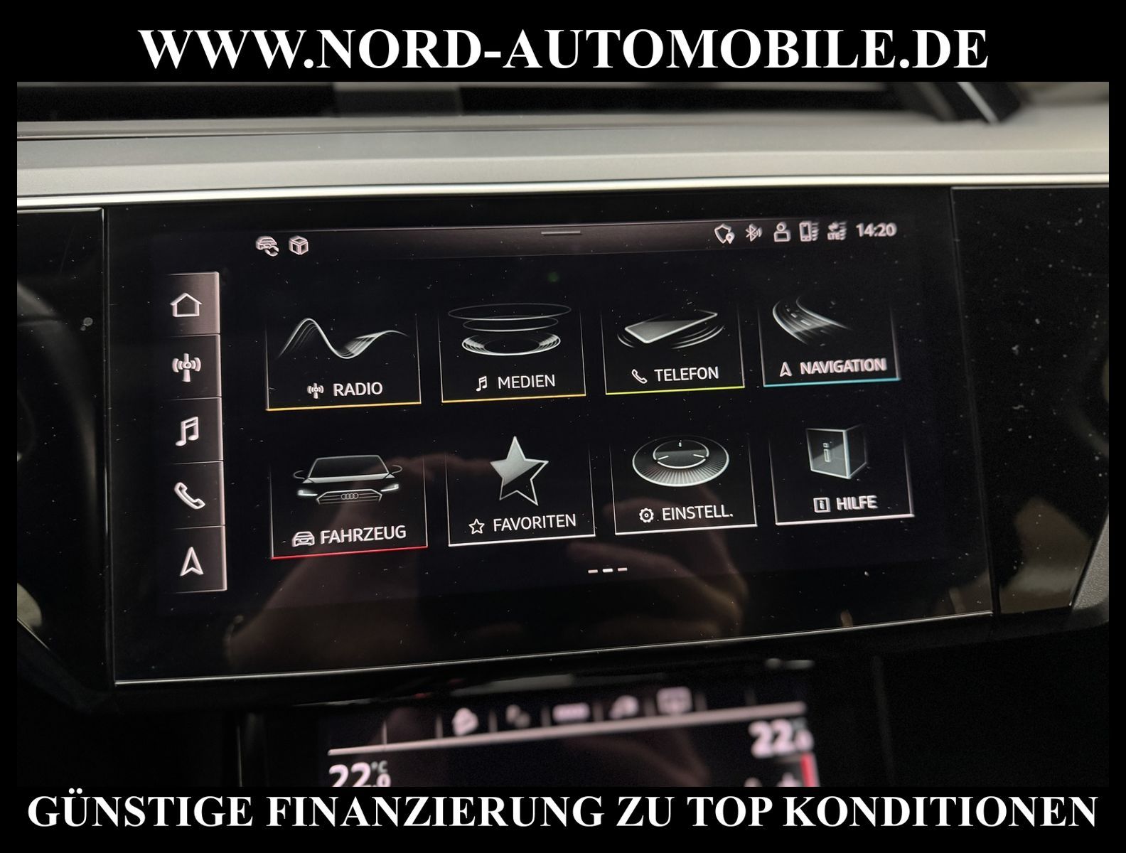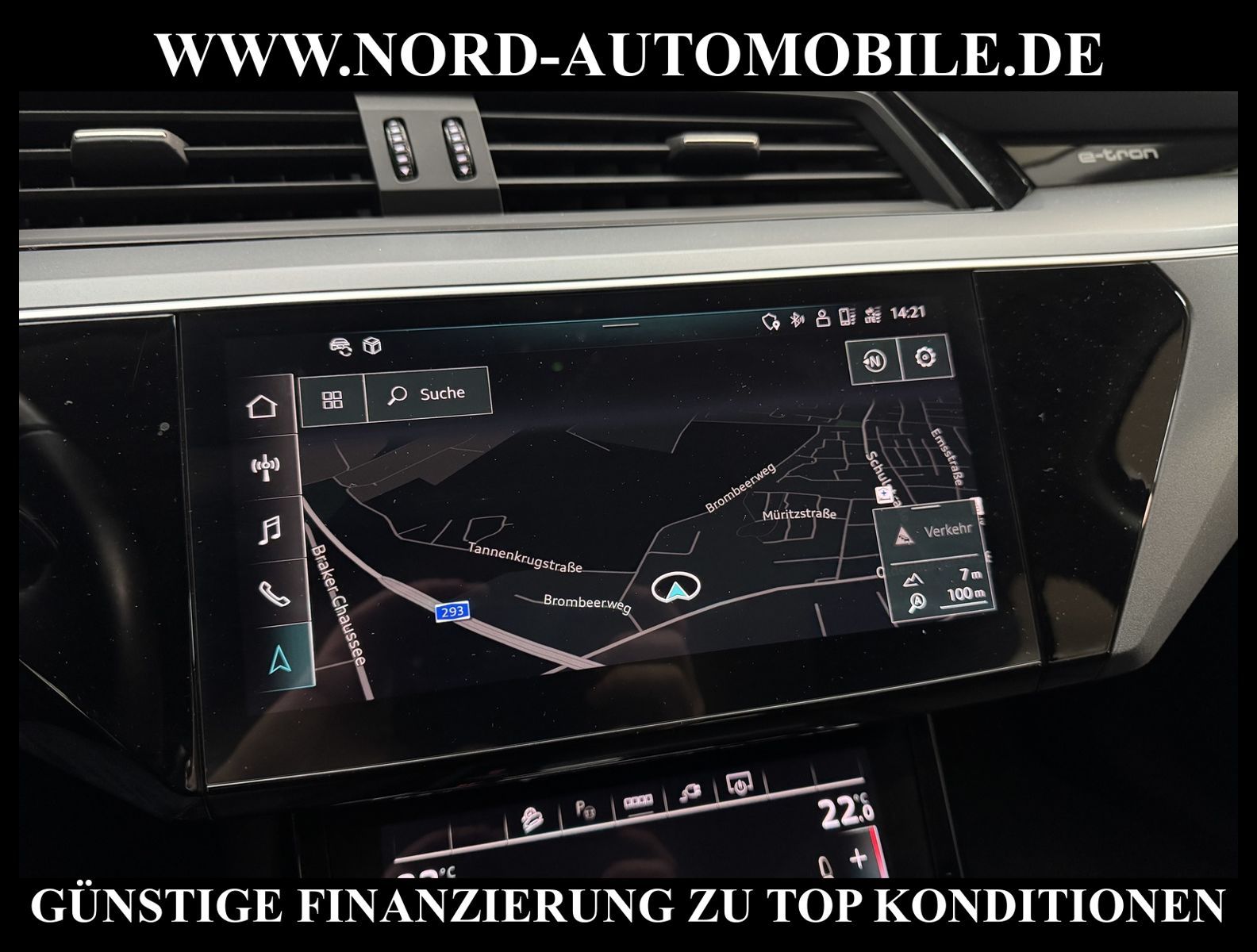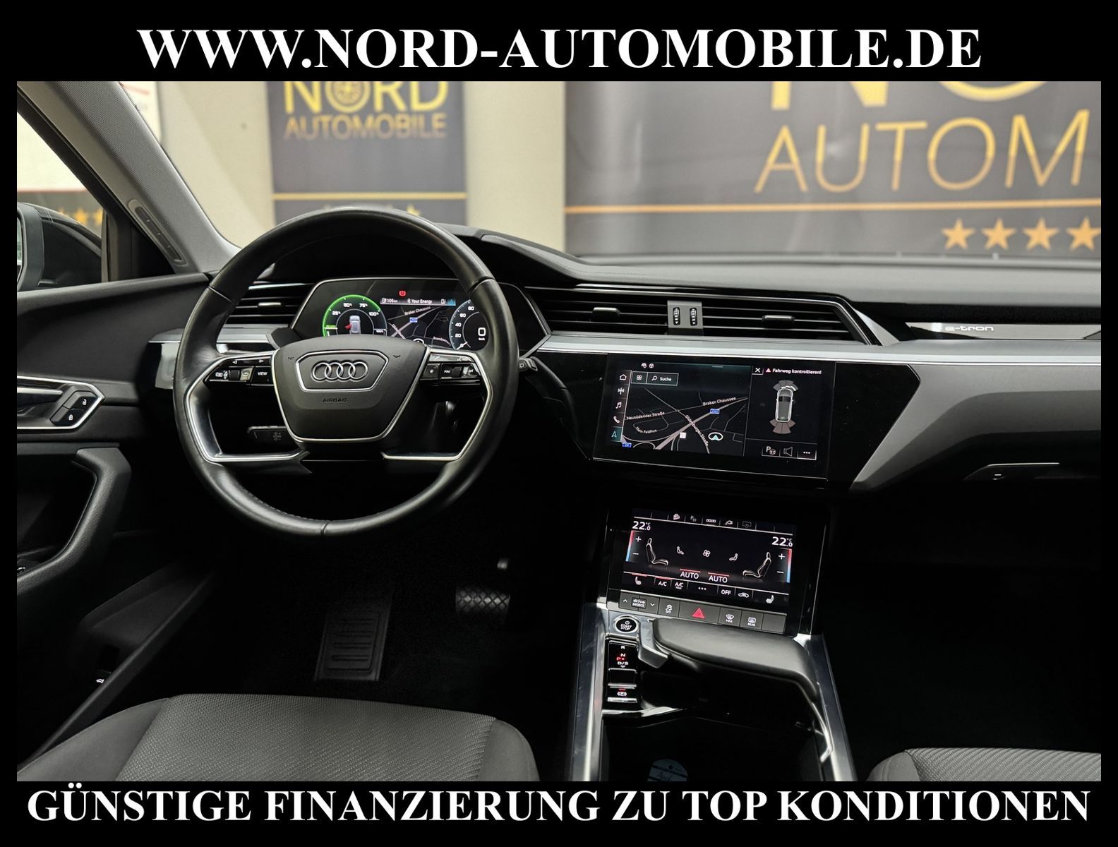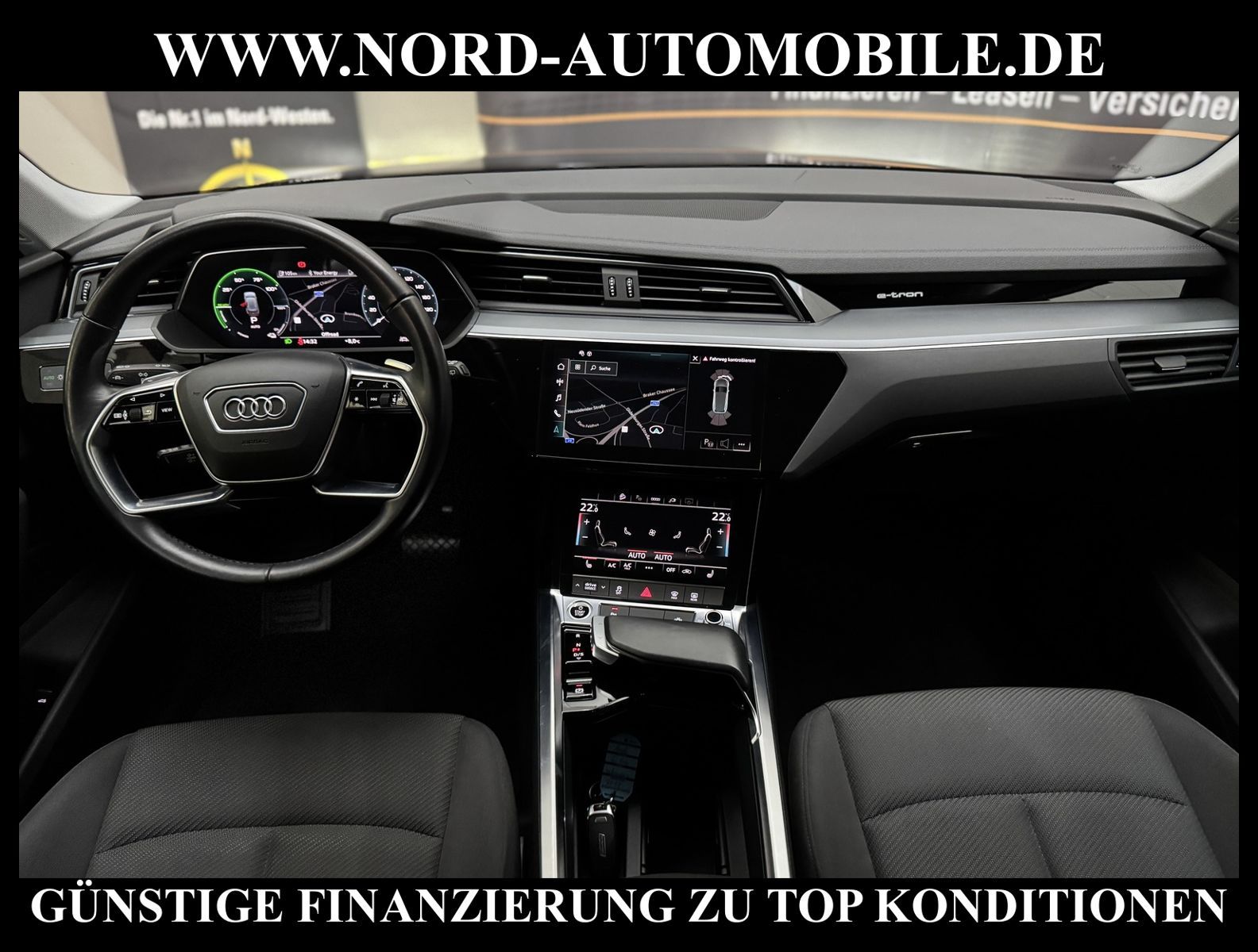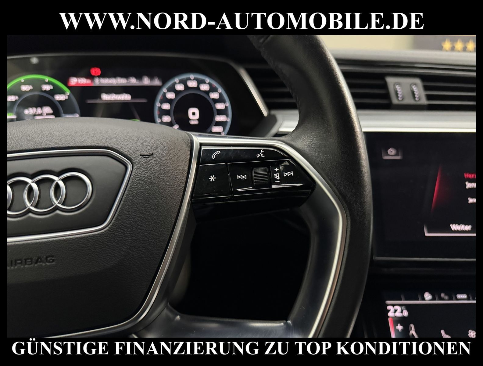 KomfortExtrasUnterhaltungBeschreibungwww.nord-automobile.de Audi e-tron quattro 230kW 1-GangAnsprechpartner: Jan Feldhus, Jonathan Steinfeld, Tom Bijman, Simon Wolff* FAHRZEUG-NUMMER: M-7058-BD * LACKIERUNG: Brillantschwarz * Modelljahr:2021 * UPE brutto 73.108 ¤ * MMI Navigation Plus mit MMI Touch * Sitzheizung vorn * Spurhalteassistent * City-Notbremsfunktion (Audi pre sense City) * Einparkhilfe plus vorn, seitlich und hinten, akustisch und optisch mit Umgebungsanzeige * Radioempfang digital (DAB) * LED- Hauptscheinwerfer mit Linse * Zentralverriegelung ''Keyless-Go'' ohne Safesicherung * Fahrwerk (adaptive air suspension) * Geschwindigkeits-Regelanlage (Tempomat) * Audi Sound-System * Kombiinstrument digital (virtual cockpit plus) * Klimaautomatik * Multifunktions-Lederlenkrad im 4-Speichen-Design * Servolenkung * Airbag Beifahrerseite abschaltbar * Außenspiegel elektr. verstell- und heizbar, beide * Wegfahrsperre (elektronisch) * Reifendruck-Kontrollanzeige * Gepäckraumklappe elektr. betätigt (öffnen + schliessen) * Leichtmetallräder, 5-Arm-Dynamik, graphitgrau, glanzgedreht, 9, 0Jx20, Reifen 255/50 R20 * Nord-Automobile - Ihr starker und kompetenter Partner seit über 20 Jahren * Wir bieten Ihnen eine günstige Finanzierung auch ohne Anzahlung über die * AutoEuropaBank - Zweigniederlassung der Volkswagen Bank GmbH an * 20 XXL-Fotografien dieses Fahrzeuges finden Sie unter www.nord-automobile.de * Gerne unterbreiten wir Ihnen ein Angebot zum Ankauf Ihres bisherigen Fahrzeuges * Beim Export-Geschäft führen wir die Ausfuhranmeldung und Zulassung für Sie durch * Wir sind Meister-Werkstatt und zertifizierte DEKRA-Prüfstelle * Lernen Sie uns kennen - wir freuen uns auf Ihren Besuch * Keine Haftung für Druck & Schreibfehler. ... Klima, Klimaautomatik, Automatik, Navigationssystem, Allrad, Sitzheiz. vorn, ABS, Parktronic System, Multifunktionslenkr., Soundsystem, Bordcomputer, Tempomat, Spiegel beheizbar, elektr. Fensterheber vorn, elektr. WFS, ZV mit Fernb., Fahrerairb., Beifahrerairb., Leichtmetallfelgen, Nichtraucher, Servolenkung, elektr. verstellb. Spiegel, Luftfederung, Sitzheizung, 4x4-Antrieb, Lederlenkrad, HSN 0588, TSN BSK, HU + AU wird vor Verkauf erneuert |