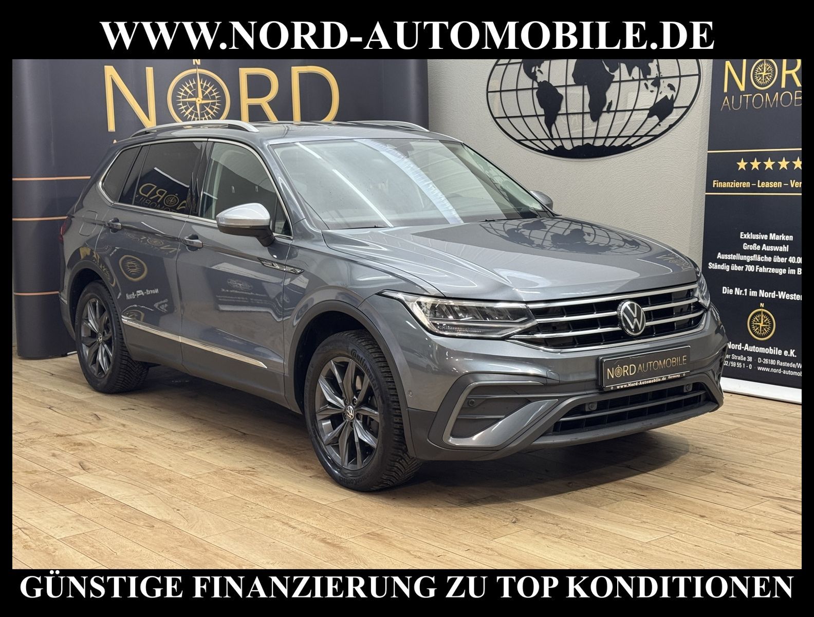 KomfortExtrasUnterhaltungBeschreibungwww.nord-automobile.de Volkswagen Tiguan Allspace Life 1.5 TSI 110kW 7-Gang DSG 4 TürenAnsprechpartner: Jan Feldhus, Jonathan Steinfeld, Tom Bijman, Simon Wolff* FAHRZEUG-NUMMER: M-5031 * LACKIERUNG: Platinum Grey Metallic * Modelljahr: 2022 * UPE brutto 45.619 ¤ * Deutsche Auslieferung * Abgasnorm Euro 6d * Audio-Navigationssystem Discover Media Streaming & Internet * Navigationssystem ''Discover Media'' inkl. ''Streaming & Internet'' * Spurwechselassistent * LED-Scheinwerfer * Spurhalteassistent plus Emergency Assist und Stauassistent * Rückfahrkamera ''Rear View'' * Anhängevorrichtung anklappbar, mit elektrischer Entriegelung * Parklenkassistent (Park Assist) und PDC vorn und hinten * Müdigkeitserkennungserkennung * Climatronic ( 3-Zonen ) mit Klimabedienteil hinten * Autom. Distanzregelung (ACC inkl. Stop&Go-Funktion) - Geschwindigkeitsbegrenzungsanlage * Winter-Paket * Verkehrszeichenerkennung * Multifunktionsanzeige/Bordcomputer * Front Assist inkl. City ANB für ACC high * Sitzheizung für Vordersitze getrennt regelbar * Bluetooth-Schnittstelle für Mobiltelefon * Fernlichtregulierung (Light Assist) * Lenkrad heizbar (Leder) mit Multifunktion und Schaltfunktion * Rücksitzbank und -lehne asymmetrisch geteilt umklappbar, mit Mittelarmlehne mit Mittelarmlehne * Mittelarmlehne vorn * Sitze vorn höhenverstellbar * Komfortsitze vorn * Beifahrersitzlehne komplett umklappbar * Seitenscheiben hinten und Heckscheibe abgedunkelt, zu 65 % lichtabsorbierend * Scheibenwaschdüsen vorn automatisch beheizt * Scheibenwischer-Intervallschaltung mit Licht/Regensensor * Dachreling silber eloxiert * Kindersitzverankerung für Kindersitzsystem I-Size, 2 x top tether * Außenspiegel elektr. verstell-, heiz- und anklappbar - Außenspiegel mit autom. Absenkfunktion, rechts * Kofferraumdeckel / Heckklappe elektr. betätigt (öffnen + schliessen) * Radioempfang digital (DAB+) * Zentralverriegelung mit Funkfernbedienung * Sicherheitsinnenspiegel automatisch abblendbar * Airbag für Fahrer und Beifahrer, mit Beifahrerairbag-Deaktivierung, inkl. Knie-Airbag auf der Fahrerseite * Kopfairbagsystem für Front- und Fondpassagiere inkl. Seitenairbags vorn * Elektronische Parkbremse inkl. Auto-Hold-Funktion * Start/Stopp-Anlage mit Rekuperation * 7-Gang-Automatikgetriebe * Reifenkontrollanzeige * 4 Leichtmetallräder ''Grange Hill'' 7 J x 18 in Schwarz * Nord-Automobile - Ihr starker und kompetenter Partner seit über 30 Jahren * Wir bieten Ihnen eine günstige Finanzierung auch ohne Anzahlung über die * AutoEuropaBank - Zweigniederlassung der Volkswagen Bank GmbH an * 20 XXL-Fotografien dieses Fahrzeuges finden Sie unter www.nord-automobile.de * Gerne unterbreiten wir Ihnen ein Angebot zum Ankauf Ihres bisherigen Fahrzeuges * Beim Export-Geschäft führen wir die Ausfuhranmeldung und Zulassung für Sie durch * Wir sind Meister-Werkstatt und zertifizierte GTÜ-Prüfstelle * Lernen Sie uns kennen - wir freuen uns auf Ihren Besuch * Keine Haftung für Druck & Schreibfehler. ... Klima, Klimaautomatik, Automatik, Navigationssystem, Sitzheiz. vorn, Regensensor, ESP, ABS, Distronic, Parktronic System, Multifunktionslenkr., Radio, Tel. m. Freisprech., Bordcomputer, Spiegel beheizbar, elektr. Fensterheber vorn, elektr. WFS, ZV mit Fernb., Fahrerairb., Beifahrerairb., Seitenairbag vorn, Kopfairbags, Leichtmetallfelgen, Nichtraucher, Anhaengerk., Nebelscheinw., Dachreling, abklappb. Spiegel, elektr. verstellb. Spiegel, Mittelarmlehne, Lendenwirbelst., Sitzhoehenv., orthop. Fahrersitz, Sitzheizung, Lichtsensor, Waermeschutzvergl., aus erster Hand, Schadstoffklasse: Euro 6, Frontantrieb, Lederlenkrad, HSN 0603, TSN CIR, Verbrauch: 5,7/6,8/5,0 l/100 km (komb/inn/auß), CO2: 129 g/km, HU + AU wird vor Verkauf erneuert, Feinstaubplakette: 4 - Grün |