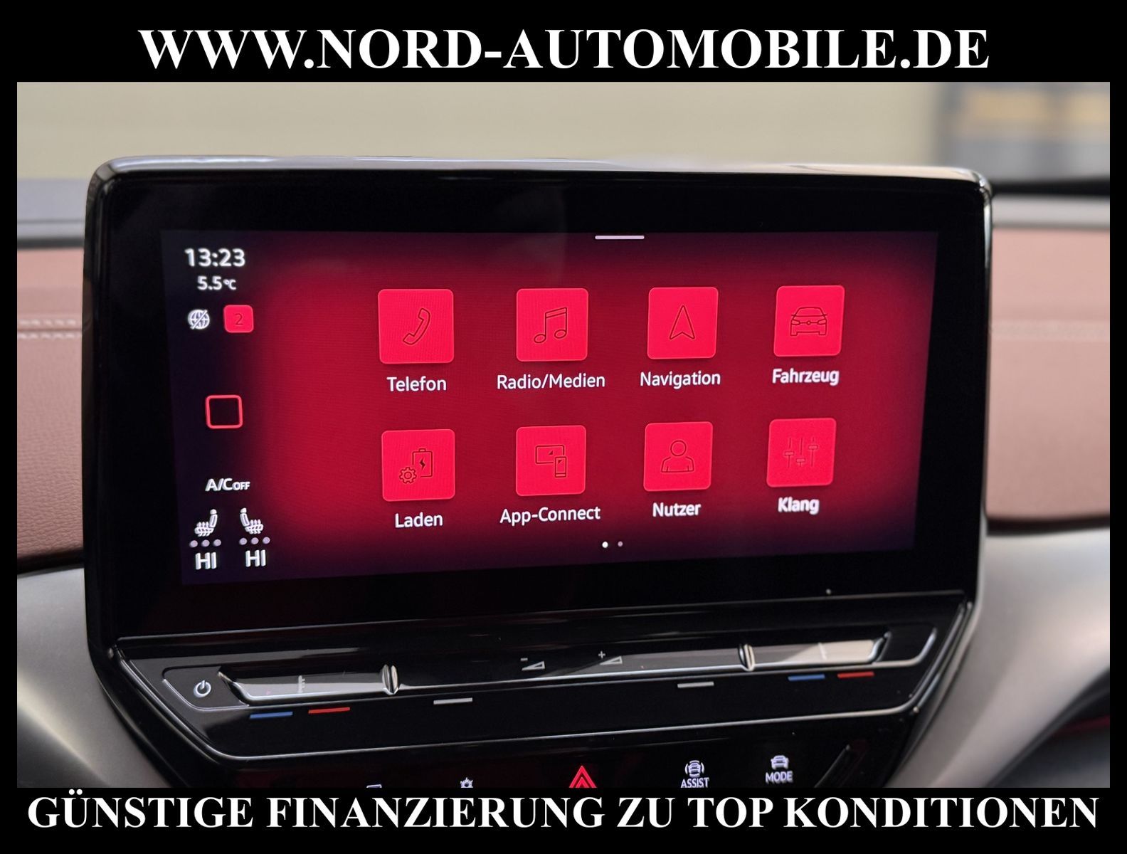KomfortExtrasUnterhaltungBeschreibungwww.nord-automobile.de VW ID.4Ansprechpartner:Jan Feldhus, Jonathan Steinfeld, Tom Bijman, Simon Wolff, Matthis Ullrich* FAHRZEUG-NUMMER: M-0552-BD * LACKIERUNG: Mondsteingrau * Deutsche Auslieferung * Modelljahr:2022 * Unfallfrei * Mit Batteriezertifikat! * Spurhalteassistent * Sitzbezüge in Teilleder * Sprachsteuerung * Automatische Distanzregelung(mit follow to stop) und Speed-Limiter * Wärmepumpe zur Reichweitenoptimierung * Mit Verkehrszeichenerkennung * Digitaler Radioempfang * IQ.LIGHT - LED-Matrix-Scheinwerfer mit automatischer Fahrlichtschaltung, Schlechtwetterlicht, Begrüßungsfunktion * Sitzheizung für Vordersitze getrennt regelbar * Rückfahrkamera ''Rear View'' * Einparkhilfe vorn und hinten * Ambientebeleuchtung außen, leuchtende(s) Stylingelement(e) seitlich und vorn * Komfort telefonie mit LTE und Wireless charging * Mit Ausweichunterstützung mit Abbiegeassistent * Schlüsselloses Schließ- und Startsystem''Keyless Advanced'' mit Safesicherung * Ledermultifunktionslenkrad, beheizbar * Höheneinstellung, manuell, für Vordersitze * Rücksitzbank ungeteilt, Lehne geteilt umlegbar mit Mittelarmlehne * Scheiben seitlich in Wärmeschutzverglasung, ab B-Säule und hinten dunkel eingefärbt * Hamar 8 J x 19 in Dark Graphite / glanzgedreht, Airstop®-Ganzjahresreifen 235/55 R 19 * Servolenkung, geschwindigkeitsabhängig(Servotronic) * Frontscheibe in Verbundsicherheitsglas, drahtlos beheizbar und infrarot-reflektierend, geräuschdämmend * Scheibenwischer-Intervallschaltung mit Licht/Regensensor * Airbag FS und BFS, ohne Knieairbag, mit BFS-Deaktivierung * Außenspiegel, elektrisch anklappbar, elektrisch einstellbar, separat beheizbar * Radschrauben mit Diebstahlsicherung(nicht abschließbar) * Diebstahlalarmanlage, Innenraumüberwachung, Back-up-Horn und Abschleppschutz * Sicherheitsinnenspiegel automatisch abblendbar * Reifendruckkontrolle * Nord-Automobile - Ihr starker und kompetenter Partner seit über 30 Jahren * Wir bieten Ihnen eine günstige Finanzierung auch ohne Anzahlung über die * AutoEuropaBank - Zweigniederlassung der Volkswagen Bank GmbH an * 20 XXL-Fotografien dieses Fahrzeuges finden Sie unter www.nord-automobile.de * Gerne unterbreiten wir Ihnen ein Angebot zum Ankauf Ihres bisherigen Fahrzeuges * Beim Export-Geschäft führen wir die Ausfuhranmeldung und Zulassung für Sie durch * Wir sind Meister-Werkstatt und zertifizierte GTÜ-Prüfstelle * Lernen Sie uns kennen - wir freuen uns auf Ihren Besuch * Keine Haftung für Druck & Schreibfehler. ... Klima vorn+hinten, Klimaautomatik, Automatik, Navigationssystem, Sitzheiz. vorn, Regensensor, ESP, ABS, Distronic, Parktronic System, Multifunktionslenkr., Radio, Bordcomputer, Spiegel autom. abblendbar, beheizte Frontscheibe, Spiegel beheizbar, elektr. Fensterheber vorn, Alarm, elektr. WFS, Keyless-Go, ZV mit Fernb., Fahrerairb., Beifahrerairb., Seitenairbag vorn, Kopfairbags, Leichtmetallfelgen, Nichtraucher, Servolenkung, Sitzbank teilbar, Innenraumfilter, Dachreling, abklappb. Spiegel, elektr. verstellb. Spiegel, Kopfst. hinten, Gurtstraffer, Heckscheibenw., Mittelarmlehne, Sitzhoehenv., Sitzheizung Fahrer + Beif., aus erster Hand, Lederlenkrad, HSN 0603, TSN CLO |