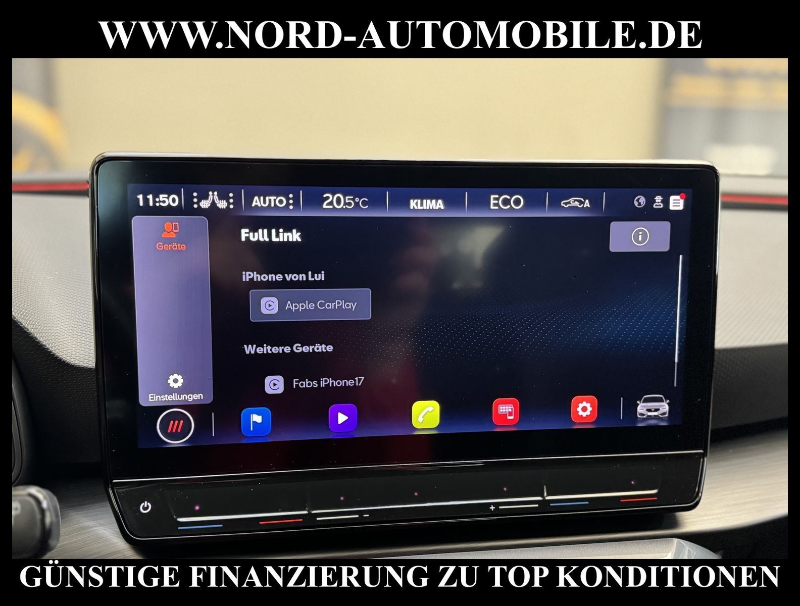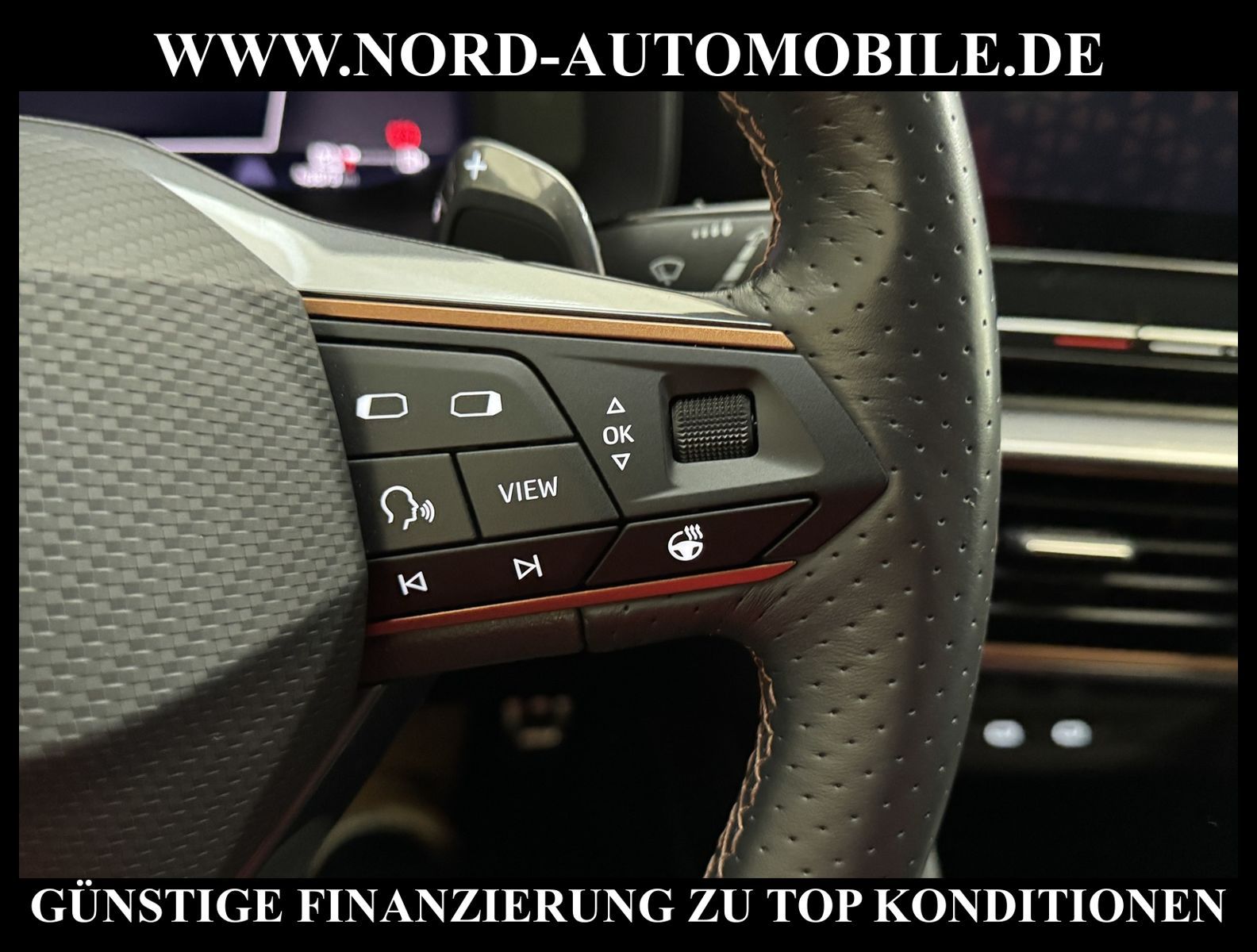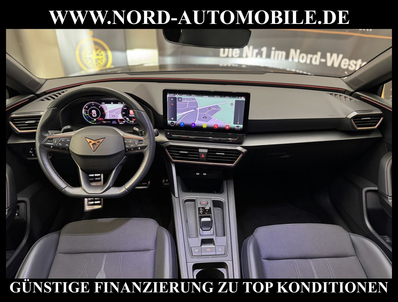 KomfortExtrasUnterhaltungBeschreibungwww.nord-automobile.de CUPRA LEONAnsprechpartner:Jan Feldhus, Jonathan Steinfeld, Tom Bijman, Simon Wolff, Matthis Ullrich* FAHRZEUG-NUMMER: M-5136-BD * LACKIERUNG: Mitternachtsschwarz * Deutsche Auslieferung * Modelljahr:2023 * Mit Batteriezertifikat! * UPE brutto 41.339 ¤ * Abgaskonzept, EU6 AP * Voll-LED: LED-Scheinwerfer und -Heckleuchten, autom. Leuchtweitenreg., Welcome Light, Coming/Leaving Home * Mit Rückfahrkamerasystem * Mit Verkehrszeichenerkennung * Mirror Link plus Wireless ''App''plus RSE (Vorbereitung) * Parklenkassistent * Auspark- und Spurwechselassistent und Ausstiegswarner * Automatische Distanzregelung(mit follow to stop) und Speed-Limiter * Spurhalteassistent plus Emergency Assist und Stauassistent * Sitzheizung für Vordersitze getrennt regelbar * Müdigkeitserkennung * Mit Ausweichunterstützung mit Abbiegeassistent * Climatronic ( 3-Zonen ) mit Klimabedienteil hinten * Komforttelefonie mit LTE und Wireless charging * Schlüsselloses Schließ- und Startsystem''Keyless Advanced'' ohne Safesicherung * Ledermultifunktionslenkrad, beheizbar mit Tiptronic * Sitzheizung für Vordersitze getrennt regelbar * Lendenwirbelstütze, manuell einstellbar in Vordersitzlehnen * Spurhalteassistent plus Emergency Assistund Stauassistent * Sportsitze vorn * Sprachsteuerung * Digitaler Radioempfang * Parklenkassistent * Höheneinstellung, manuell, für Vordersitze * Rücksitzbank ungeteilt, Lehne geteilt umlegbar mit Mittelarmlehne * Scheiben seitlich in Wärmeschutzverglasung, ab B-Säule und hinten dunkel eingefärbt * Radschrauben mit Diebstahlsicherung(nicht abschließbar) * Adaptive Fahrwerksregelung mit kontinuierlicher Bedienung * Tagesfahrlicht mit Assistenzfahrlicht u.Coming- u. Leaving-home Funktion automatisch * Nebelscheinwerfer * Einstiegleisten in den Türausschnitten(beleuchtet) * Scheibenwischer-Intervallschaltung mit Licht/Regensensor * Fernlichtassistent * Fensterheber mit Komfortschaltung und Abschaltsicherung, elektrisch * Airbag FS und BFS, ohne Knieairbag, mit BFS-Deaktivierung * Außenspiegel elektrisch anklappbar-/einstellbar, beheizbar, mit Beifahrerspiegelabsenkung * Kindersitzverankerung für Kindersitzsystem I-Size, 2 x top tether und Kindersitzverankerung vorn BF-Seite * Sicherheitsinnenspiegel automatisch abblendbar * Reifendruckkontrolle * Start/Stopp-Anlage mit Rekuperation * 6-Gang-Automatikgetriebe * Nord-Automobile - Ihr starker und kompetenter Partner seit über 30 Jahren * Wir bieten Ihnen eine günstige Finanzierung auch ohne Anzahlung über die * AutoEuropaBank - Zweigniederlassung der Volkswagen Bank GmbH an * 20 XXL-Fotografien dieses Fahrzeuges finden Sie unter www.nord-automobile.de * Gerne unterbreiten wir Ihnen ein Angebot zum Ankauf Ihres bisherigen Fahrzeuges * Beim Export-Geschäft führen wir die Ausfuhranmeldung und Zulassung für Sie durch * Wir sind Meister-Werkstatt und zertifizierte GTÜ-Prüfstelle * Lernen Sie uns kennen - wir freuen uns auf Ihren Besuch * Keine Haftung für Druck & Schreibfehler. ... Klima vorn+hinten, Klimaautomatik, Automatik, Navigationssystem, Sitzheiz. vorn, Regensensor, ESP, ASR, ABS, Distronic, Parktronic System, Multifunktionslenkr., Radio, Bordcomputer, Tempomat, Spiegel autom. abblendbar, Spiegel beheizbar, elektr. Fensterheber vorn+hinten, elektr. WFS, Keyless-Go, ZV mit Fernb., Fahrerairb., Beifahrerairb., Seitenairbag vorn, Kopfairbags, Leichtmetallfelgen, elektr. Fahrwerksregelung, Nichtraucher, Nebelscheinw., Servolenkung, Sportsitze/Schalensitze, Spoiler, Traktionskontr., Sitzbank teilbar, abklappb. Spiegel, elektr. verstellb. Spiegel, Kopfst. vorn, Gepaeckraumabd., Nebelschlussl., Scheibenbr., Mittelarmlehne, Lendenwirbelst., Sitzhoehenv., Sitzheizung Fahrer + Beif., Lichtsensor, Waermeschutzvergl., aus erster Hand, Schadstoffklasse: Euro 6, Frontantrieb, HSN 7593, TSN ARQ, Verbrauch: 1,5/0,0/0,0 l/100 km (komb/inn/auß), CO2: 26 g/km, Partikelfilter, HU + AU wird vor Verkauf erneuert, Feinstaubplakette: 4 - Grün |