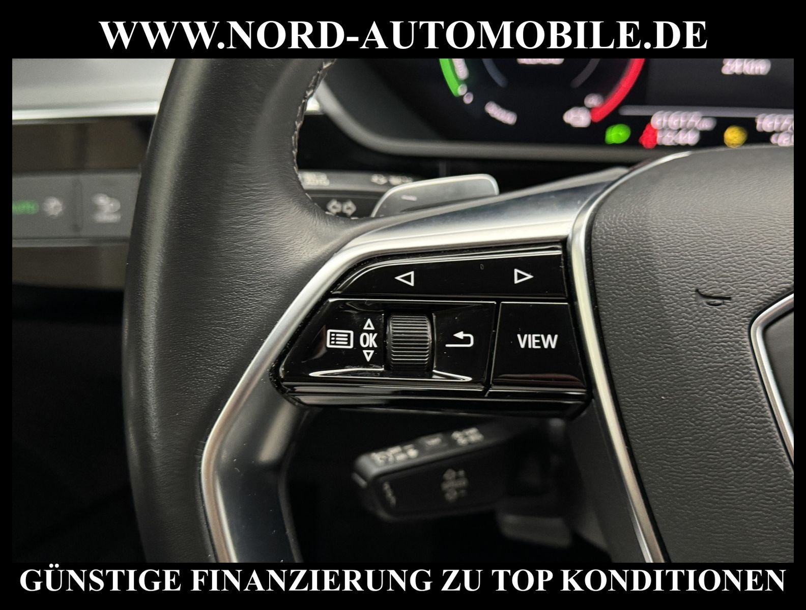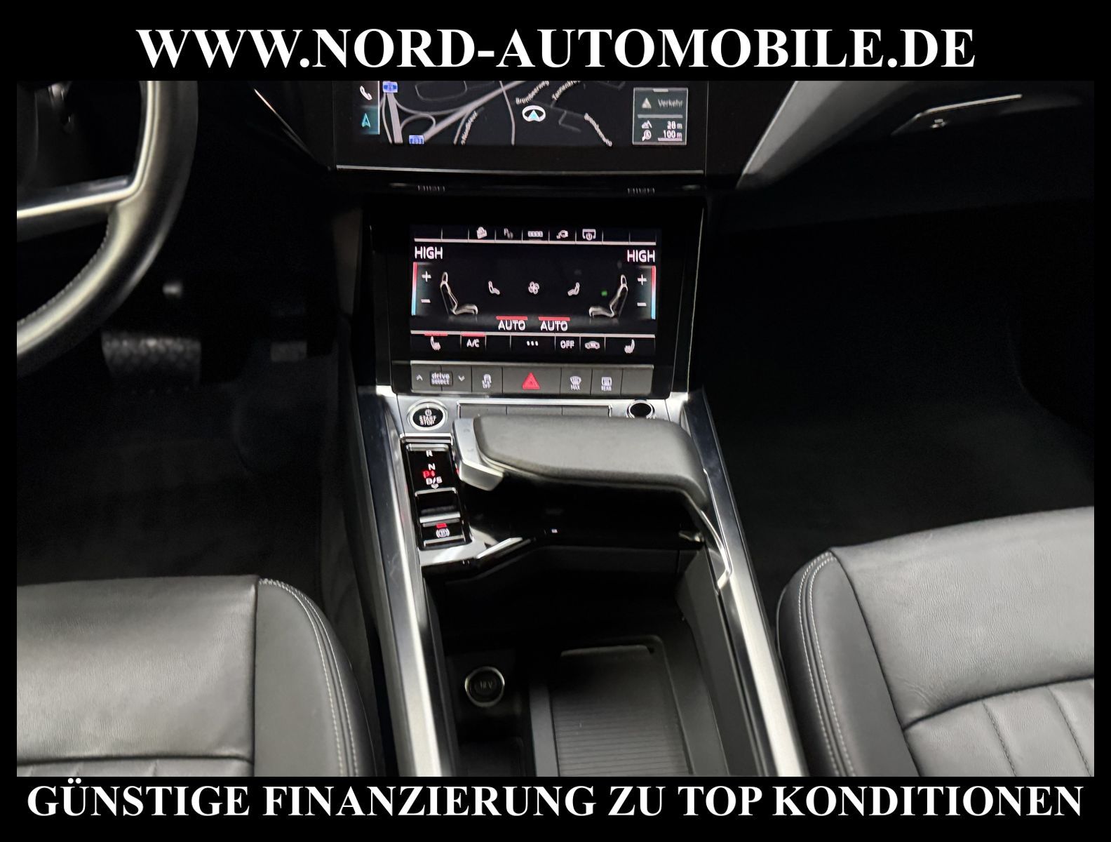 KomfortExtrasUnterhaltungBeschreibungwww.nord-automobile.de Audi e-tronAnsprechpartner:Jan Feldhus, Jonathan Steinfeld, Tom Bijman, Simon Wolff, Matthis Ullrich* FAHRZEUG-NUMMER: M-2568-BD * LACKIERUNG: Brillantschwarz * Deutsche Auslieferung * Modelljahr:2022 * UPE brutto 86.579 ¤ * Mit Batteriezertifikat SoH 97, 9% * Navigationsgerät-High * Mit Rückfahrkamerasystem * LED-Scheinwerfer * Audi virtual cockpit * Audi Soundsystem * Einparkhilfe plus mit Umgebungsanzeige * 4 Corner Luftfederung mit elektrisch geregelter Dämpfung * Digitaler Radioempfang * Sitzheizung für Vordersitze getrennt regelbar * Spurverlassenswarnung * Ledersitze * Telefonvorbereitung für Handy * Lenksäule, axial u.vertikal einstellbar * Höheneinstellung, manuell, für Vordersitze * Ledermultifunktionslenkrad für Airbag-System * Lendenwirbelstütze, elektr. einstellbar in Vordersitzlehnen * Radschrauben mit Diebstahlsicherung plus Radlöseerkennung * Räder, 5-Arm, 9, 0Jx20, Reifen 255/50 R20 * Servoschließung Heckklappe * Zentralverriegelung ''Keyless-Go''ohne Safesicherung * Außenspiegel elektr. einstell-/beheizbar * Sicherheitsinnenspiegel automatisch abblendbar * Airbag FS und BFS, ohne Knieairbag, mit BFS-Deaktivierung * Reifendruckkontrolle * Nord-Automobile - Ihr starker und kompetenter Partner seit über 30 Jahren * Wir bieten Ihnen eine günstige Finanzierung auch ohne Anzahlung über die * AutoEuropaBank - Zweigniederlassung der Volkswagen Bank GmbH an * 20 XXL-Fotografien dieses Fahrzeuges finden Sie unter www.nord-automobile.de * Gerne unterbreiten wir Ihnen ein Angebot zum Ankauf Ihres bisherigen Fahrzeuges * Beim Export-Geschäft führen wir die Ausfuhranmeldung und Zulassung für Sie durch * Wir sind Meister-Werkstatt und zertifizierte GTÜ-Prüfstelle * Lernen Sie uns kennen - wir freuen uns auf Ihren Besuch * Keine Haftung für Druck & Schreibfehler. ... Klima, Klimaautomatik, Automatik, Leder, Navigationssystem, Allrad, Sitzheiz. vorn, ESP, ABS, Parktronic System, Multifunktionslenkr., Radio, Soundsystem, Bordcomputer, Tempomat, Spiegel autom. abblendbar, Spiegel beheizbar, Scheinwerferreinigung, elektr. Fensterheber vorn, elektr. WFS, Keyless-Go, ZV mit Fernb., Fahrerairb., Beifahrerairb., Seitenairbag vorn, Kopfairbags, Leichtmetallfelgen, Nichtraucher, Spoiler, Sitzbank teilbar, elektr. verstellb. Spiegel, Kopfst. vorn, Gepaeckraumabd., Luftfederung, Mittelarmlehne, Lendenwirbelst., Sitzheizung Fahrer + Beif., Waermeschutzvergl., 12 V Zusatzanschluss, aus erster Hand, 4x4-Antrieb, Lederlenkrad, HSN 0588, TSN BSL, HU + AU wird vor Verkauf erneuert, Standklima |