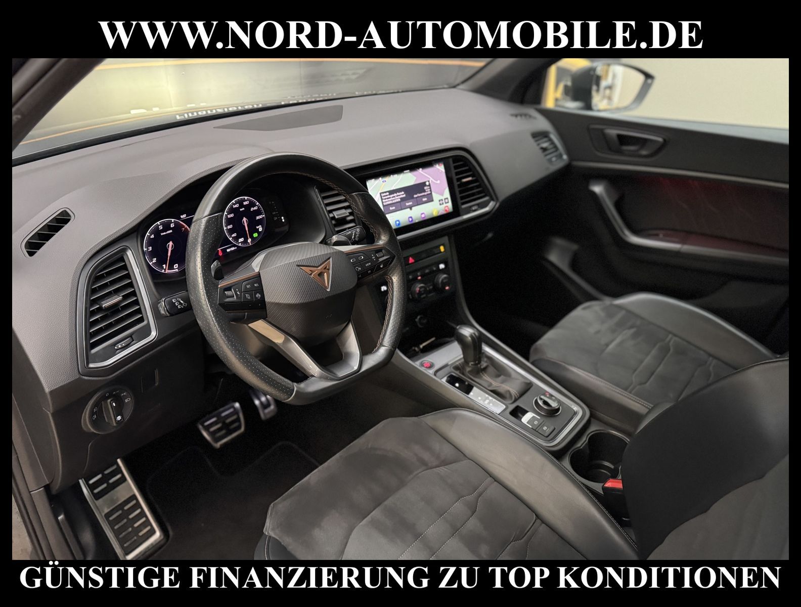 KomfortExtrasUnterhaltungBeschreibungwww.nord-automobile.de CUPRA ATECAAnsprechpartner: Jan Felhus, Jonathan Steinfeld, Tom Bijman, Simon Wolff, Matthis Ullrich* FAHRZEUG-NUMMER: M-1502-BD * LACKIERUNG: Rodiumgrau Metallic * Deutsche Auslieferung * Modelljahr:2022 * Abgaskonzept, EU6 AP * UPE brutto 49.649 ¤ * LED-Scheinwerfer * Zentralverriegelung ''Keyless-Entry'' ohne Safesicherung * Front Assist inkl. City ANB ohne ACC * Navigationsgerät-High * Mirror Link plus Wireless ''App''plus RSE (Vorbereitung) * Komfort telefonie, ohne Außenantennenanbindung * Müdigkeitserkennung * Geschwindigkeitsregelanlage plus Speed-Limiter * Multifunktionsanzeige/Bordcomputer''FPK'' Entry * Mit Front und Rückfahrkamerasystem und zwei Seitenkameras * Sitzheizung für Vordersitze getrennt regelbar * Sportsitze vorn * Sprachsteuerung * Digitaler Radioempfang * Anhängevorrichtung mechanisch schwenkbarund elektrisch auslösbar * Ledermultifunktionslenkrad, beheizbar mit Tiptronic * Dynamiklenkung * Höheneinstellung, manuell, für Vordersitze * Rücksitzbank ungeteilt, Lehne geteilt umlegbar mit Mittelarmlehne * Scheiben seitlich in Wärmeschutzverglasung, ab B-Säule und hinten dunkel eingefärbt * Radschrauben mit Diebstahlsicherung(nicht abschließbar) * Sicherheitsinnenspiegel automatisch abblendbar * Einstiegleisten in den Türausschnitten(beleuchtet) * Nebelscheinwerfer * Scheibenwischer-Intervallschaltung mit Licht/Regensensor * Außenspiegel elektrisch anklappbar-/einstellbar, beheizbar, mit Beifahrerspiegelabsenkung * Fensterheber mit Komfortschaltung und Abschaltsicherung, elektrisch * Airbag FS und BFS, Knieairbag auf FS und BFS, mit BFS-Deaktivierung * Servoschließung Heckklappe * 19''-Leichtmetallräder ''Exclusive'' 36/1, bearbeitet, kupferfarben * Reifendruckkontrolle * 7-Gang-Automatikgetriebe für Allrad * Start/Stopp-Anlage mit Rekuperation * Nord-Automobile - Ihr starker und kompetenter Partner seit über 30 Jahren * Wir bieten Ihnen eine günstige Finanzierung auch ohne Anzahlung über die * AutoEuropaBank - Zweigniederlassung der Volkswagen Bank GmbH an * 20 XXL-Fotografien dieses Fahrzeuges finden Sie unter www.nord-automobile.de * Gerne unterbreiten wir Ihnen ein Angebot zum Ankauf Ihres bisherigen Fahrzeuges * Beim Export-Geschäft führen wir die Ausfuhranmeldung und Zulassung für Sie durch * Wir sind Meister-Werkstatt und zertifizierte GTÜ-Prüfstelle * Lernen Sie uns kennen - wir freuen uns auf Ihren Besuch * Keine Haftung für Druck & Schreibfehler. ... Klima, Klimaautomatik, Automatik, Navigationssystem, Allrad, Sitzheiz. vorn, Regensensor, ESP, ASR, ABS, Parktronic System, Multifunktionslenkr., Radio, Bordcomputer, Tempomat, Spiegel autom. abblendbar, beheizte Frontscheibe, Spiegel beheizbar, elektr. Fensterheber vorn+hinten, elektr. WFS, Keyless-Go, ZV mit Fernb., Fahrerairb., Beifahrerairb., Seitenairbag vorn, Kopfairbags, Leichtmetallfelgen, elektr. Fahrwerksregelung, Nichtraucher, Anhaengerk., Nebelscheinw., Servolenkung, Sportsitze/Schalensitze, Spoiler, Traktionskontr., Sitzbank teilbar, Dachreling, abklappb. Spiegel, elektr. verstellb. Spiegel, Kopfst. vorn, 3.Bremsl., Gepaeckraumabd., Nebelschlussl., Scheibenbr., Mittelarmlehne, Lendenwirbelst., Sitzhoehenv., Sitzheizung Fahrer + Beif., Lichtsensor, Waermeschutzvergl., 12 V Zusatzanschluss, aus erster Hand, Schadstoffklasse: Euro 6, 4x4-Antrieb, Lederlenkrad, HSN 7593, TSN AOD, Verbrauch: 7,7/9,6/6,6 l/100 km (komb/inn/auß), CO2: 203 g/km, Partikelfilter, Feinstaubplakette: 4 - Grün |