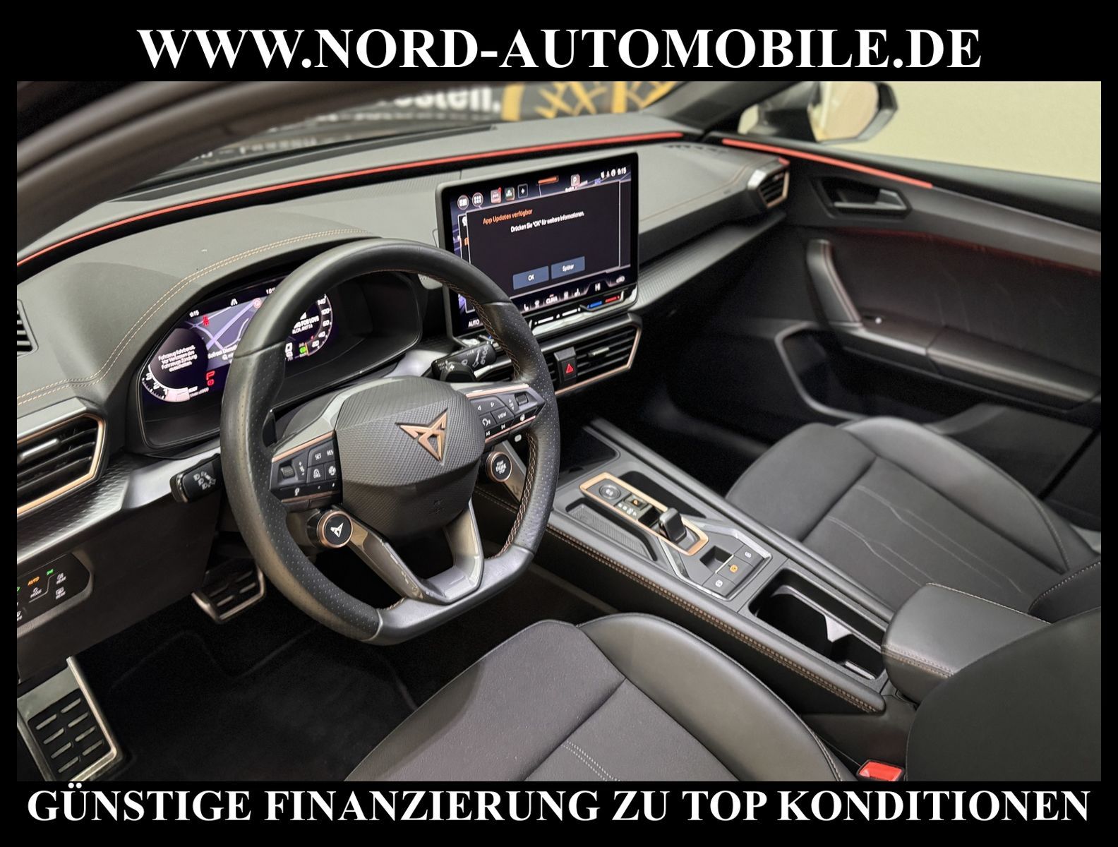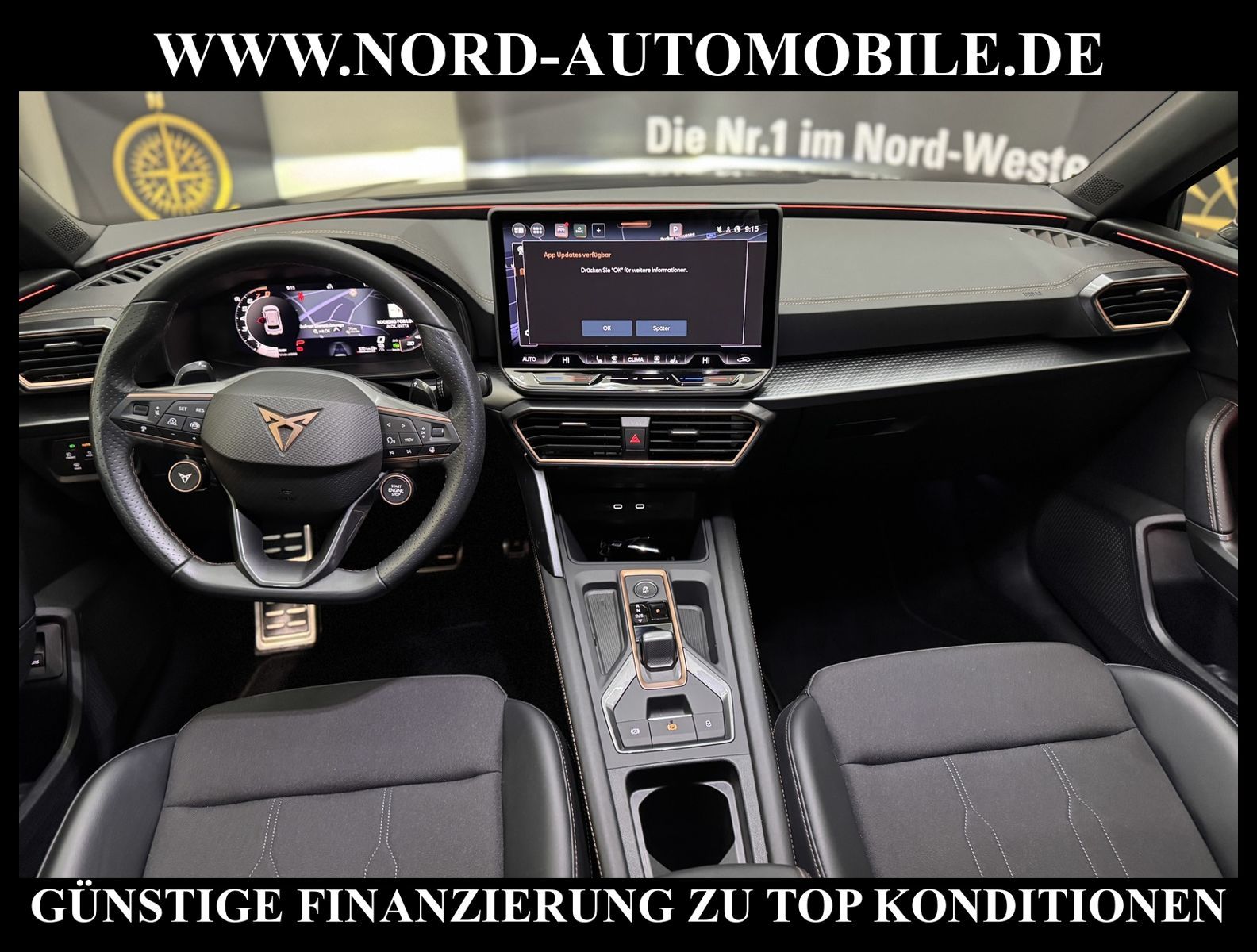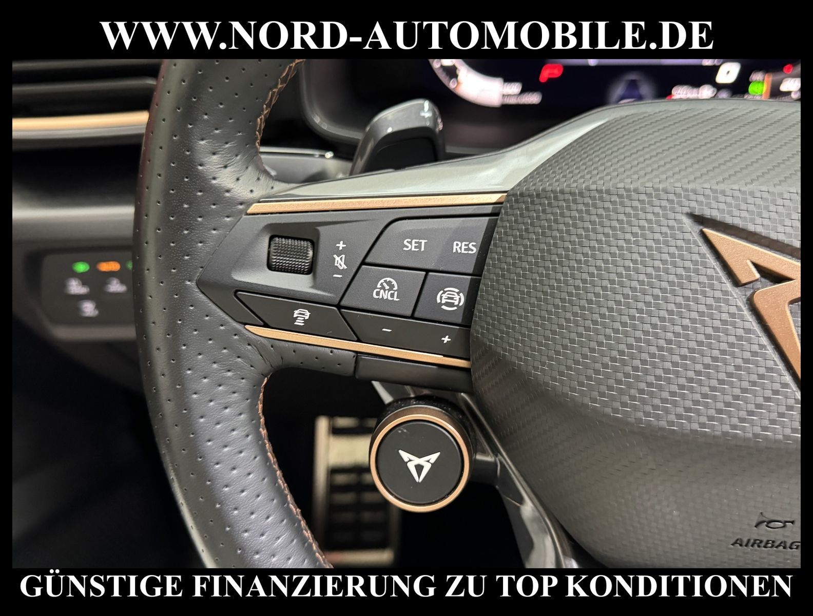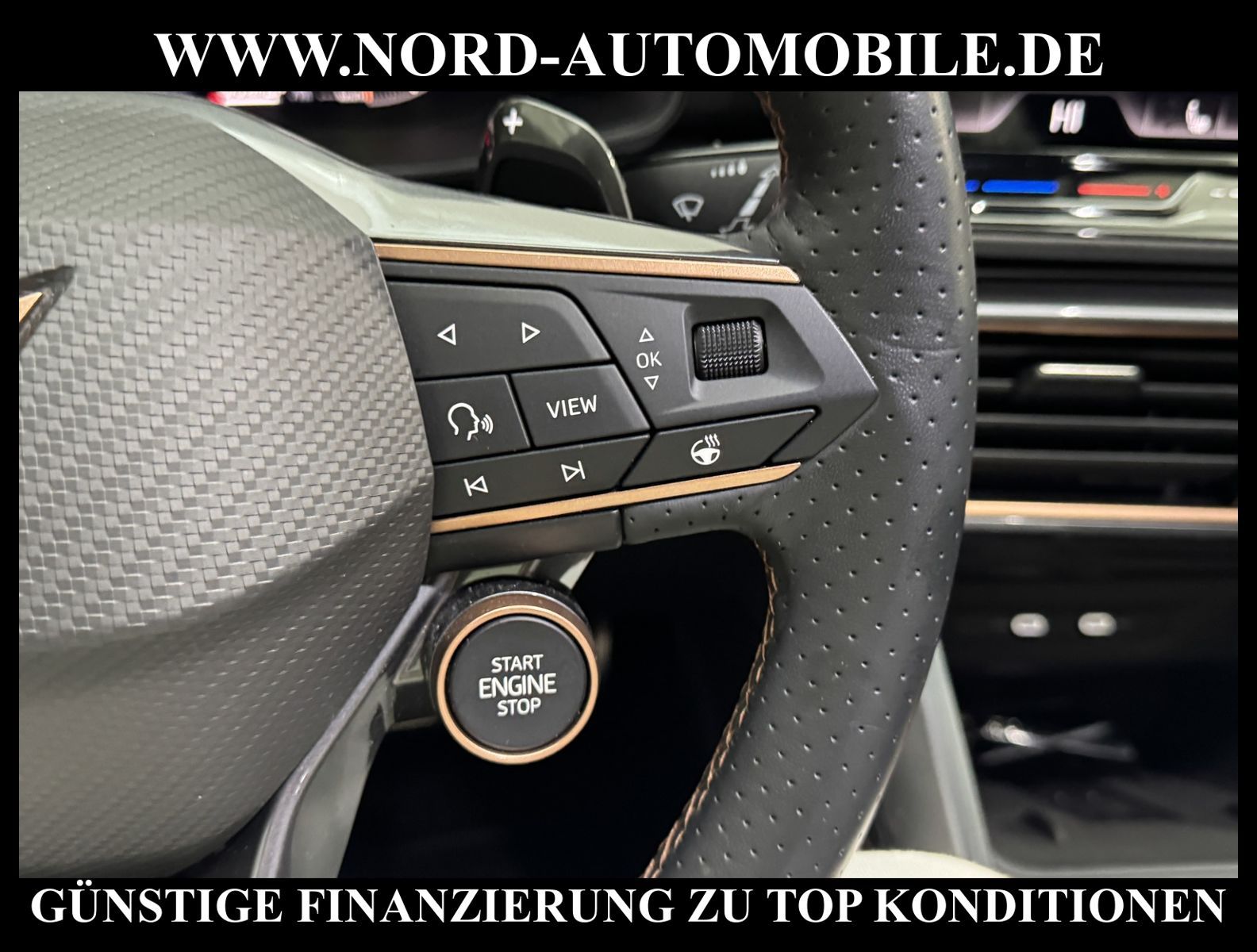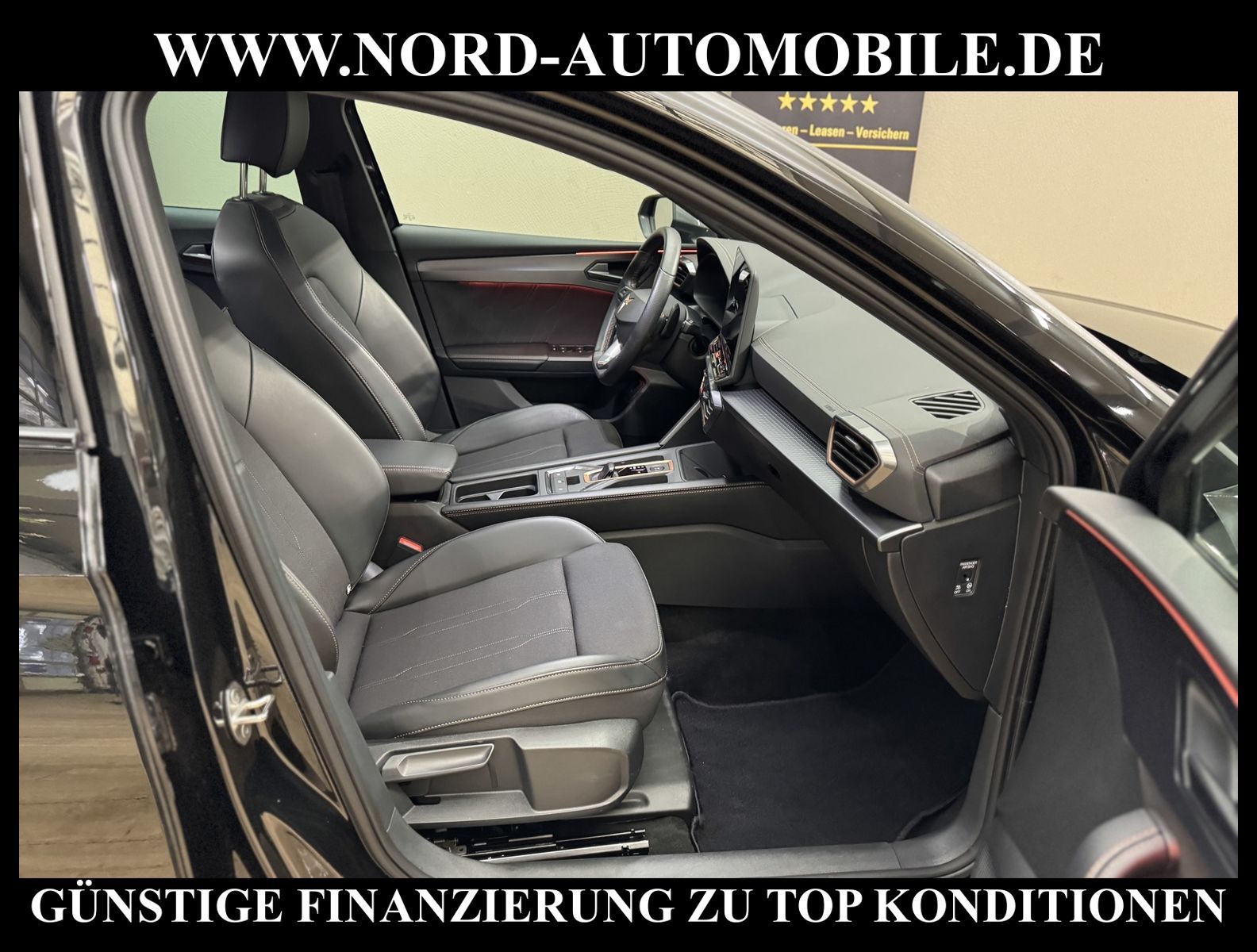 Cupra Leon SP 1.5 eTSI 110kW 7-Gang Automatikgetriebe 4 TürenAnsprechpartner: Jan Feldhus, Jonathan Steinfeld, Tom Bijman, Simon Wolff* FAHRZEUG-NUMMER: M-4351 * LACKIERUNG: Mitternachtsschwarz * Modelljahr:2025 * UPE brutto 43.859 * Deutsche Auslieferung * Mit Verkehrszeichenerkennung * Automatische Distanzregelung * Mit Rückfahrkamerasystem * Sprachsteuerung * LED-Scheinwerfer * Parklenkassistent IPA (Intelligent Park Assist) * Schlüsselloses Schließ- und Startsystem ''Keyless Advanced'' mit Safesicherung * Sitzheizung für Vordersitze getrennt regelbar * Spurhalteassistent plus Emergency Assistund Stauassistent * Climatronic ( 3-Zonen ) mit Klimabedienteil hinten * Kombiinstrument digital (virtual cockpit) * Auspark- und Spurwechselassistent und Ausstiegswarner * Lenkrad heizbar (CUPRA Supersport, Leder) mit Multifunktion und Schaltfunktion * Höheneinstellung, manuell, für Vordersitze * Lendenwirbelstütze, manuell einstellbar in Vordersitzlehnen * Tagesfahrlicht mit Assistenzfahrlicht u.Coming- u. Leaving-home Funktion automatisch * Rücksitzbank ungeteilt, Lehne geteilt umlegbar mit Mittelarmlehne * Einstiegleisten in den Türausschnitten (beleuchtet) * Nebelscheinwerfer * Fernlichtassistent * Scheiben seitlich in Wärmeschutzver- glasung, ab B-Säule und hinten dunkel eingefärbt * Mittelarmlehne vorn * Heckscheiben-Wisch-Waschanlage mit Intervallschaltung * Scheibenwischer-Intervallschaltung mit Licht/Regensensor * Variables Ladebodenkonzept * Airbag FS und BFS, Knieairbag auf FS undBFS, mit BFS-Deaktivierung * Winterpaket: Sitzheizung vorn, Scheinw.-Reinigungsanlage, beheizbares Scheibenwischw., beheizbare Aussenspiegel * Sicherheitsinnenspiegel automatisch abblendbar * Fensterheber mit Komfortschaltung und Abschaltsicherung, elektrisch * Radschrauben mit Diebstahlsicherung (nicht abschließbar) * Reifendruckkontrolle * Außenspiegel elektr. verstell-, heiz- und anklappbar mit Spiegelabsenkung und Welcome Light * Pedale Aluminium-Design * Start/Stopp-Anlage mit Rekuperation * Dynamiklenkung * Leichtmetallräder 7 1/2J x 18 * Getriebe 7-Gang - Doppelkupplungsgetriebe DSG * Diebstahlalarmanlage, Innenraumüber- wachung, Back-up-Horn und Abschleppschutz * Nord-Automobile - Ihr starker und kompetenter Partner seit über 30 Jahren * Wir bieten Ihnen eine günstige Finanzierung auch ohne Anzahlung über die * AutoEuropaBank - Zweigniederlassung der Volkswagen Bank GmbH an * 20 XXL-Fotografien dieses Fahrzeuges finden Sie unter www.nord-automobile.de * Gerne unterbreiten wir Ihnen ein Angebot zum Ankauf Ihres bisherigen Fahrzeuges * Beim Export-Geschäft führen wir die Ausfuhranmeldung und Zulassung für Sie durch * Wir sind Meister-Werkstatt und zertifizierte GTÜ-Prüfstelle * Lernen Sie uns kennen - wir freuen uns auf Ihren Besuch * Keine Haftung für Druck & Schreibfehler. ... Klima vorn+hinten, Klimaautomatik, Automatik, Navigationssystem, Sitzheiz. vorn, Regensensor, Distronic, Parktronic System, Multifunktionslenkr., Radio, Tempomat, Spiegel autom. abblendbar, Spiegel beheizbar, elektr. Fensterheber vorn+hinten, Alarm, Keyless-Go, ZV, Fahrerairb., Beifahrerairb., Seitenairbag vorn, Seitenairbag hinten, Kopfairbags, Leichtmetallfelgen, Nichtraucher, Nebelscheinw., Sportsitze/Schalensitze, Dachreling, abklappb. Spiegel, elektr. verstellb. Spiegel, Kopfst. vorn, Kopfst. hinten, Gepaeckraumabd., Nebelschlussl., Scheibenbr., Mittelarmlehne, Lendenwirbelst., Sitzhoehenv., Sitzheizung Fahrer + Beif., Lichtsensor, Waermeschutzvergl., Schadstoffklasse: Euro 6, Lederlenkrad, HSN 7593, TSN ATB, HU + AU wird vor Verkauf erneuert, Feinstaubplakette: 4 - Grün |