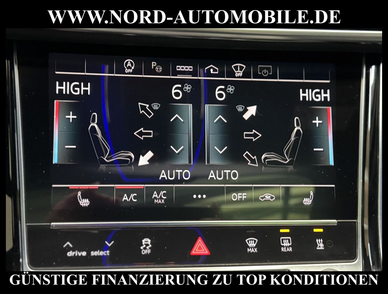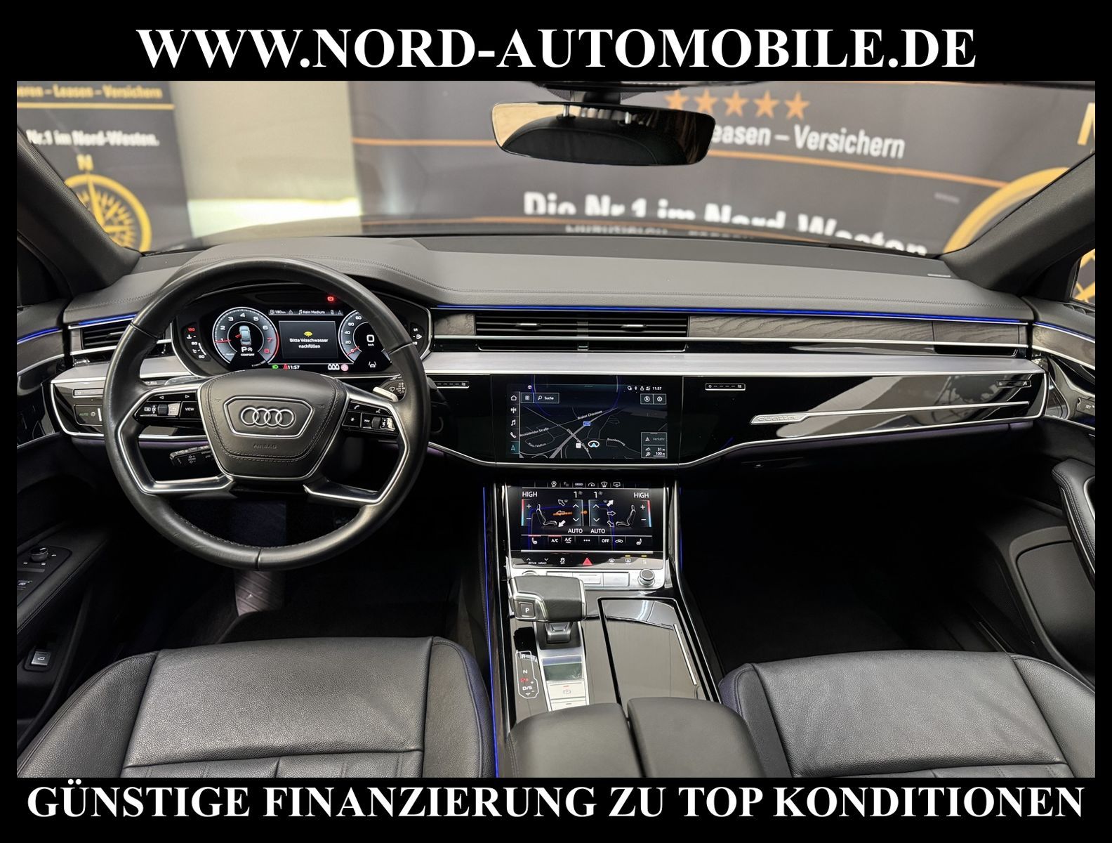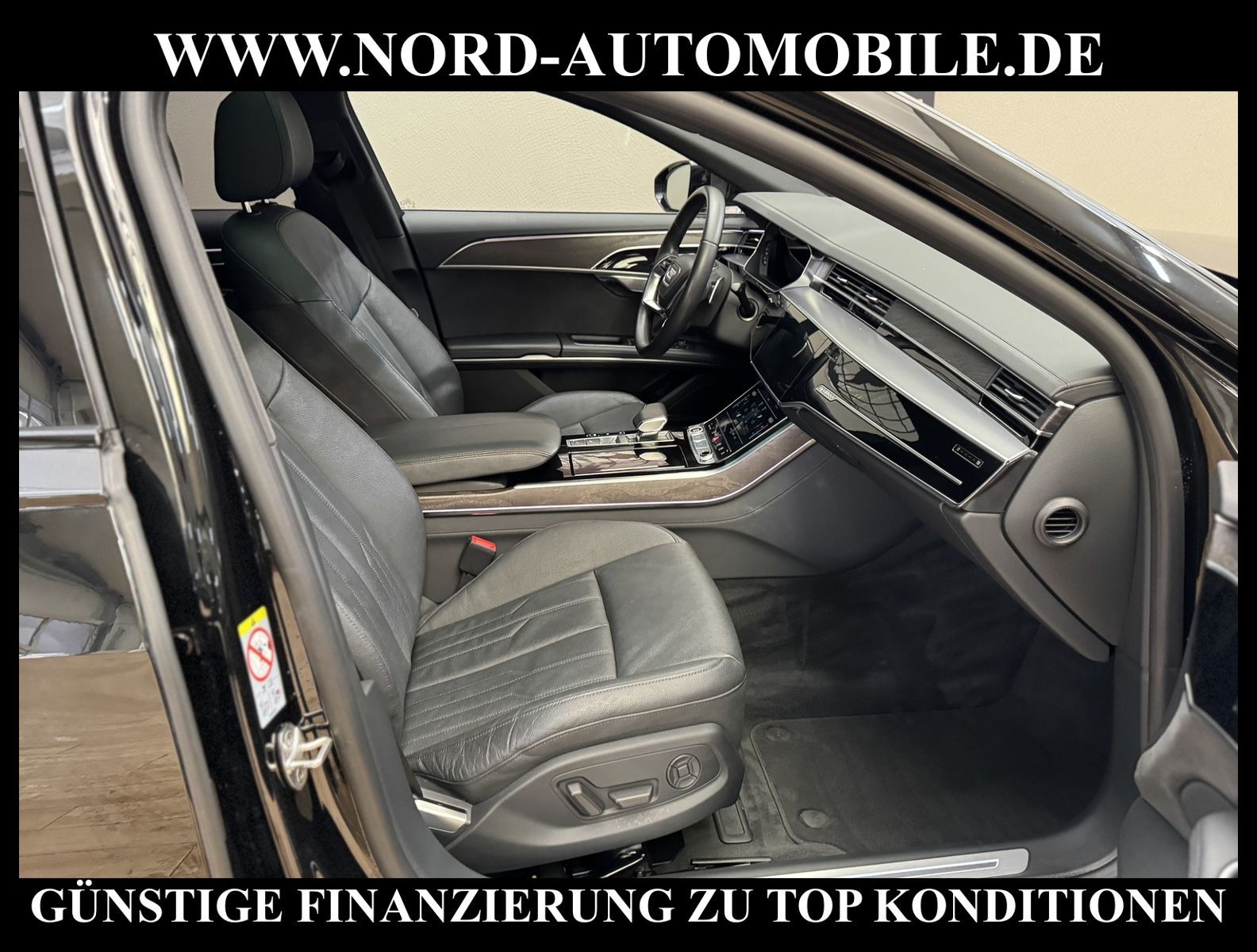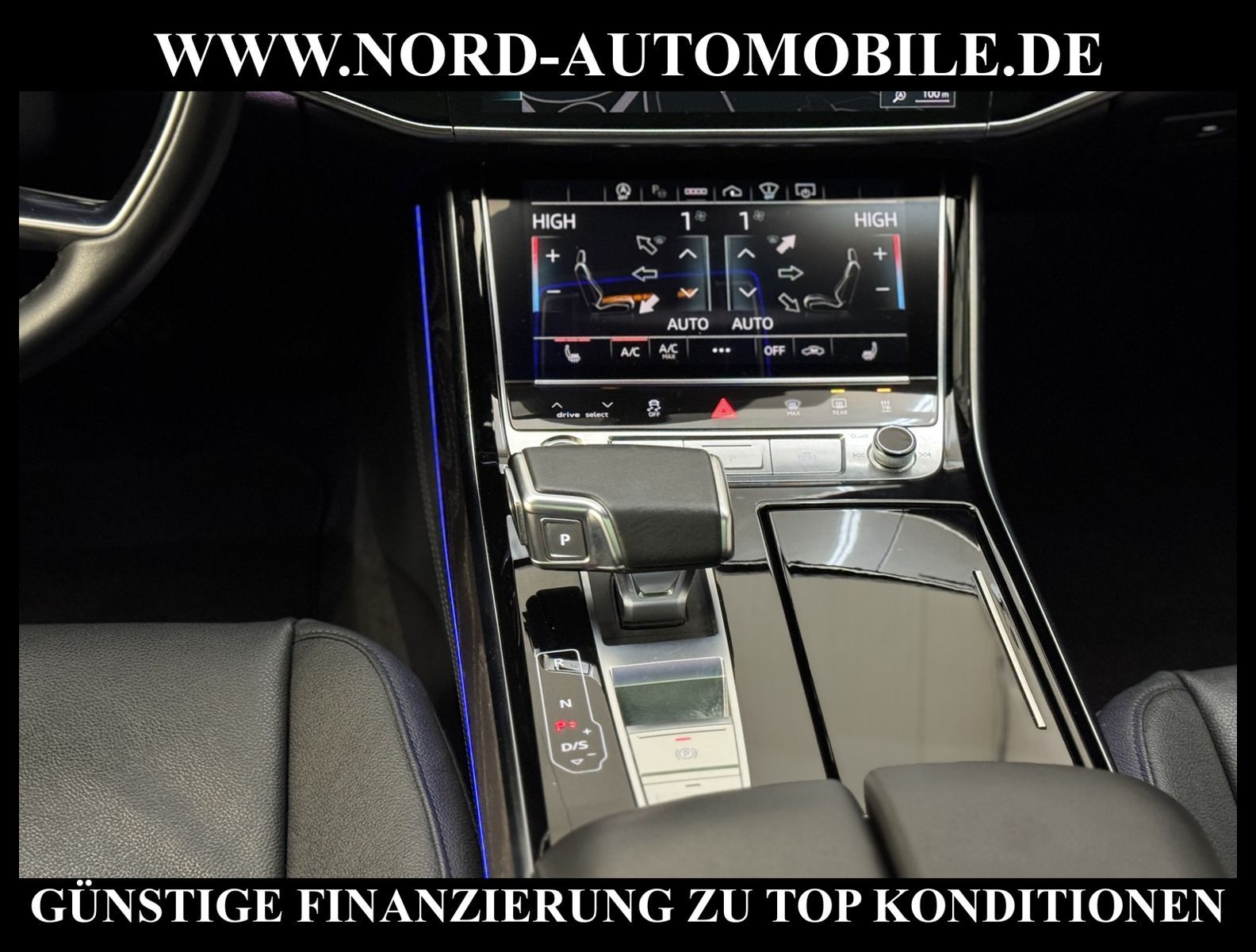 KomfortExtrasUnterhaltungBeschreibungwww.nord-automobile.de Audi A8 Limousine quattro 3.0 55 electric/TFSI 250kW 8-Gang Tiptronic 4 TürenAnsprechpartner: Jan Feldhus, Jonathan Steinfeld, Tom Bijman, Simon Wolff, Matthis Ullrich* FAHRZEUG-NUMMER: M_5596-BD * LACKIERUNG: Mythosschwarz Metallic * Modelljahr:2022 * UPE brutto 125.489 ¤ * Audi Anschlussgarantie bis 14.04.2027 und 100.000KM(unabhängig von der gesetzlichen Sachmangelhaftung) * Deutsche Auslieferung * S-Line Exterieurpaket * MMI Navigation Plus mit MMI Touch * Optikpaket schwarz plus * Kombiinstrument digital (virtual cockpit plus) * Panorama-Ausstelldach elektrisch * Parkassistent plus * Zentralverriegelung ''Keyless-Entry'' * HD Matrix LED-Scheinwerfer mit dynamischer Lichtinszenierung und dynamischem Blinklicht * Bang & Olufsen Premium Sound System mit 3D Klang * Head-up-Display * Einparkhilfe vorn und hinten, akustisch und optisch mit selektiver Anzeige (APS Plus) * Automatische Distanzregelung (mit follow to stop) und Speed-Limiter * City-Notbremsfunktion (Audi pre sense City) * Bluetooth-Freisprecheinrichtung mit Spracherkennung (Audi Phone Box) * Leder Valetta * Spurwechselassistent * Radioempfang digital (DAB) * Mit Front und Rückfahrkamerasystem und zwei Seitenkameras * Fahrwerk (adaptive air suspension) * Garagentoröffner * Standheizung * Sitzheizung vorn und hinten * Doppelspeichen-Lederlenkrad mit Multifunktion, Schaltwippen und Lenkradheizung * Adaptive Scheibenwischer mit integrierten Waschdüsen * Dachhimmel in Stoff schwarz * Kontur-/Ambiente Lichtpaket, mehrfarbig * Verglasung hinten abgedunkelt (Privacyverglasung) und Türscheiben vorn Akustikglas * Vordersitze elektrisch einstellbar mit Memory-Funktion * Kühlbox im Handschuhfach * Mittelarmlehne vorn * Frontscheibe in Klimakomfort- und Akustikverglasung drahtlos beheizbar * Scheinwerfer-Reinigungsanlage (SRA) * Airbag Beifahrerseite abschaltbar * Start/Stop-Anlage * Reifendruck-Kontrollanzeige * Gepäckraumklappe elektr. betätigt (öffnen + schliessen) * Außenspiegel elektr. verstell-, heiz- und anklappbar, mit Abblendautomatik und Memory * Diebstahl-Warnanlage + Innenraumabsicherung / Abschleppschutz * Durchladeeinrichtung * Räder, 10-Parallelspeichen, graphitgrau, glanzgedreht, 9, 0Jx20, Reifen 265/40 R20 * Nord-Automobile - Ihr starker und kompetenter Partner seit über 30 Jahren * Wir bieten Ihnen eine günstige Finanzierung auch ohne Anzahlung über die * AutoEuropaBank - Zweigniederlassung der Volkswagen Bank GmbH an * 20 XXL-Fotografien dieses Fahrzeuges finden Sie unter www.nord-automobile.de * Gerne unterbreiten wir Ihnen ein Angebot zum Ankauf Ihres bisherigen Fahrzeuges * Beim Export-Geschäft führen wir die Ausfuhranmeldung und Zulassung für Sie durch * Wir sind Meister-Werkstatt und zertifizierte GTÜ-Prüfstelle * Lernen Sie uns kennen - wir freuen uns auf Ihren Besuch * Keine Haftung für Druck & Schreibfehler. ... Klimaautomatik, Automatik, Leder, Navigationssystem, Allrad, Sitzheiz. vorn, Sitzheiz. hinten, Vorders. elekt. verstellb., ESP, ABS, Distronic, Multifunktionslenkr., Soundsystem, Tel. m. Freisprech., Bordcomputer, beheizte Frontscheibe, Spiegel beheizbar, Scheinwerferreinigung, elektr. Fensterheber vorn, elektr. WFS, ZV mit Fernb., Fahrerairb., Beifahrerairb., Leichtmetallfelgen, Nichtraucher, abklappb. Spiegel, Luftfederung, Mittelarmlehne, elekt. verstellb. Fahrersitz, Standheizung, Sitzheizung, Schadstoffklasse: Euro 6, 4x4-Antrieb, Lederlenkrad, HSN 0588, TSN BMK, Verbrauch: 8,1/11,2/6,4 l/100 km (komb/inn/auß), CO2: 213 g/km, HU + AU wird vor Verkauf erneuert, Feinstaubplakette: 4 - Grün |