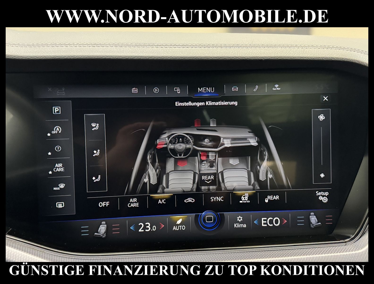 KomfortExtrasUnterhaltungBeschreibungwww.nord-automobile.de Volkswagen Touareg R-Line 4Motion 3.0 TDI SCR 170kW 8-Gang Tiptronic 4 TürenAnsprechpartner: Jan Feldhus, Jonathan Steinfeld, Tom Bijman, Simon Wolff, Matthis Ullrich* FAHRZEUG-NUMMER: M-9760-BD * LACKIERUNG: Grenadillschwarz Metallic * Modelljahr: 2023 * UPE brutto 95.289 ¤ * Deutsche Auslieferung * Abgasnorm Euro 6d * R-Line Black Style * 4 Corner Luftfederung mit elektrisch geregelter Dämpfung * Rückfahrkamera mit 360° Umgebungsansicht (Area View) * Head-up-Display * IQ.LIGHT - LED-Matrix-Scheinwerfer * Schlüsselloses Schließ- und Startsystem ''Keyless Access'' mit Safe-Sicherung * Parklenkassistent (Park Assist) und PDC vorn und hinten * Sitzbelüftung vorn * Spurhalteassistent Lane-Assist * Panorama-Ausstell-/Schiebedach * Müdigkeitserkennungserkennung * Mirror Link plus Wireless RSE ''App'' * Active Info Display, mehrfarbig, verschiedene Info-Profile wählbar * Autom. Distanzregelung (ACC inkl. Stop&Go-Funktion) - Geschwindigkeitsbegrenzungsanlage * Sitzheizung für Vorder-/u.Hintersitze, getrennt regelbar * Automatische Distanzregelung ACC ''stop & go'' bis 210 km/h inkl. ''Front Assist'' mit Fußgängererkennung * Navigationsgerät-Premium * Verkehrszeichenerkennung * Sitzmittelbahnen und -wangeninnenseiten in Leder ''Vienna'', ''R-Line''-Logo in den Vordersitzen * Sonnenschutzrollo an den Türscheiben hinten * ''Air Care Climatronic'' mit 4-Zonen-Klimatisierung und Bedienungselementen hinten * Komfort-Paket Keyless Access * Umfeldbeobachtungssystem (Front assist) mit City-Notbremsfunktion * 2 USB-C-Schnittstellen vorn, 1 USB-C-Ladebuchse an der Mittelkonsole hinten * Telefonschnittstelle ''Business'' mit induktiver Ladefunktion * Lenkrad heizbar (Leder, R-Line) mit Multifunktion und Schaltfunktion * Vordersitze elektrisch einstellbar, mit längs verschiebbarer Oberschenkelauflagesowie Fahrersitz mit Memory-Funktion * Memory-Paket * Komfortsitze vorn * Lendenwirbelstützen vorn pneumatisch einstellbar * Ambiente-Beleuchtung weiß * Rücksitzbank und -lehne asymmetrisch geteilt umklappbar, längs verschiebbar, Lehenneigung einstellbar * Seitenscheiben hinten und Heckscheibe abgedunkelt, zu 65 % lichtabsorbierend * Dynamische Fernlichtregulierung ''Dynamic Light Assist'' für LED-Matrix-Scheinwerfer * Scheibenwaschdüsen vorn automatisch beheizt * Scheinwerfer-Reinigungsanlage * Kindersitzverankerung für Kindersitzsystem I-Size, 2 x top tether * Airbag für Fahrer und Beifahrer, mit Beifahrerairbag-Deaktivierung * Radioempfang digital (DAB+) * Lenksäule einstellbar * Kopfairbagsystem für Front- und Fondpassagiere inkl. Seitenairbags vorn * Komfortöffnung Heckklappe (Virtuelles Pedal) plus Easy Close * Außenspiegel elektrisch einstell-, anklapp-, beheizbar und abblendend, Beifahrerspiegelabsenkung und Memory * Diebstahlwarnanlage mit Innenraumüberwachung, Back-up-Horn und Abschleppschutz * 8-Gang-Automatikgetriebe für Allrad * Start-Stopp-System mit Bremsenergie-Rückgewinnung * Reifenkontrollanzeige * Dachhimmel in Titanschwarz * 4 Leichtmetallräder ''Suzuka'' 9, 5 J x 21 in Schwarz, Volkswagen R * Nord-Automobile - Ihr starker und kompetenter Partner seit über 30 Jahren * Wir bieten Ihnen eine günstige Finanzierung auch ohne Anzahlung über die * AutoEuropaBank - Zweigniederlassung der Volkswagen Bank GmbH an * 20 XXL-Fotografien dieses Fahrzeuges finden Sie unter www.nord-automobile.de * Gerne unterbreiten wir Ihnen ein Angebot zum Ankauf Ihres bisherigen Fahrzeuges * Beim Export-Geschäft führen wir die Ausfuhranmeldung und Zulassung für Sie durch * Wir sind Meister-Werkstatt und zertifizierte GTÜ-Prüfstelle * Lernen Sie uns kennen - wir freuen uns auf Ihren Besuch * Keine Haftung für Druck & Schreibfehler. ... Klima, Klimaautomatik, Automatik, Leder, Navigationssystem, Sitzheiz. vorn, Sitzheiz. hinten, Xenon, Vorders. elekt. verstellb., ESP, ABS, Distronic, Parktronic System, Multifunktionslenkr., Radio, Bordcomputer, Spiegel beheizbar, Scheinwerferreinigung, elektr. Fensterheber vorn, Keyless-Go, ZV mit Fernb., Fahrerairb., Beifahrerairb., Seitenairbag vorn, Kopfairbags, Leichtmetallfelgen, Nichtraucher, Sitzbank teilbar, Lenksaeule einstellbar, abklappb. Spiegel, elektr. verstellb. Spiegel, Luftfederung, Mittelarmlehne, elekt. verstellb. Fahrersitz, Sitzheizung, Waermeschutzvergl., aus erster Hand, Schadstoffklasse: Euro 6, Diesel, 4x4-Antrieb, Lederlenkrad, HSN 0603, TSN COB, CO2: 217 g/km, HU + AU wird vor Verkauf erneuert, Feinstaubplakette: 4 - Grün |