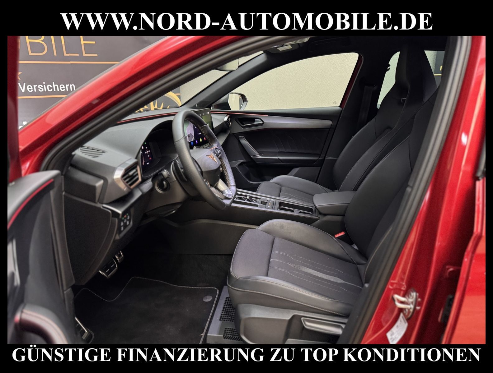 CUPRA LEON VZ 2.0 TSI DSG Ansprechpartner: Jan Feldhus, Jonathan Steinfeld, Tom Bijman, Simon Wolff, Matthis Ullrich* FAHRZEUG-NUMMER: MW-3465-BD * LACKIERUNG: Sonderlackierung desire red metallic * Abgaskonzept, Euro6 AP ehem.UPE: 51.155, -* Kombiinstrument digital (virtual cockpit) * Dynamic-Paket * Fahrassistenz-Paket XL * Fahrassistenz-Paket: Vision Plus * Licht & Sicht Paket * Audio-Navigationssystem mit Touchscreen Farbbildschirm * BeatsAudio: Premium-Lautsprecher, Subwoofer, 340 W-Verstärker und Surround-Technologie * Sprachsteuerungs-System * Verkehrszeichenerkennung * Radioempfang digital (DAB+) * Full Link (MirrorLink, Apple CarPlay und Android Auto) * Mobile Online Dienste Cupra Connect * Komfort telefonie mit LTE und wireless charging * Induktionsladeschale für Smartphone * Klimaanlage Climatronic 3-Zonen * Sitzheizung für Vordersitze getrennt regelbar * Voll-LED-Hauptscheinwerfer mit LED-Tagfahrlicht * Fernlichtassistent * Heckleuchten Voll-LED mit dynamischem Blinklicht (Infinite Light) * automatische Distanzregelung (ACC) (mit follow to stop) und Speed-Limiter * LM-Felgen 8x19 (Exclusive I, schwarz / silber, glanzgedreht) * adaptive Fahrwerksregelung (DCC) * Progressivlenkung * Fahrprofilauswahl (CUPRA Drive Profile) * heizbares Cupra Supersport-Multifunktionslenkrad mit Tiptronic * Parklenkassistent * Einparkhilfe vorn und hinten * Rückfahrkamera * Schlüsselloses Schließ- und Startsystem ''Keyless Advanced'' * Spurhalteassistent * Totwinkel-Assistent mit Auspark-Assistent * Emergency Assist und Stauassistent * Spurwechselassistent und Ausstiegswarnung * Ambiente-Beleuchtung Smart Ambient Light * Sitze vorn höhenverstellbar * Lendenwirbelstützen vorn * Müdigkeitserkennung * Mittelarmlehne * Dachhimmel schwarz * Seitenscheiben hinten und Heckscheibe abgedunkelt * Rücksitzlehne geteilt/klappbar (1/3-2/3) * Zentralverriegelung mit Fernbedienung und Startanlage Keyless Go * Bordcomputer * Nebelscheinwerfer LED mit Abbiegelicht * Licht/Regensensor * Scheinwerfer-Reinigungsanlage * Scheibenwaschdüsen heizbar * Sicherheitsinnenspiegel automatisch abblendbar * Außenspiegel elektrisch anklappbar, einstell-und beheizbar * Airbag Fahrer-/Beifahrerseite * Airbag Beifahrerseite abschaltbar * Kopf-Airbag-System * Seitenairbag * Seitenairbag vorn mitte (Central Airbag) * Isofix-Aufnahmen für Kindersitz * Fensterheber elektrisch vorn und hinten * Berganfahr-Assistent * Differentialsperre XDS * Umfeldbeobachtungssystem (Front assist) mit City-Notbremsfunktion * Reifendruckkontrolle * Start/Stopp-Anlage mit Rekuperation * 7-Gang - Doppelkupplungsgetriebe DSG Nord-Automobile - Ihr starker und kompetenter Partner seit über 20 Jahren* Wir bieten Ihnen eine günstige Finanzierung auch ohne Anzahlung über die * AutoEuropaBank - Zweigniederlassung der Volkswagen Bank GmbH an * 20 XXL-Fotografien dieses Fahrzeuges finden Sie unter www.nord-automobile.de * Gerne unterbreiten wir Ihnen ein Angebot zum Ankauf Ihres bisherigen Fahrzeuges * Beim Export-Geschäft führen wir die Ausfuhranmeldung und Zulassung für Sie durch * Wir sind Meister-Werkstatt und zertifizierte DEKRA-Prüfstelle * Lernen Sie uns kennen - wir freuen uns auf Ihren Besuch * Keine Haftung für Druck & Schreibfehler. ... Klima vorn+hinten, Klimaautomatik, Automatik, Leder, Navigationssystem, Sitzheiz. vorn, Regensensor, ESP, ASR, ABS, Distronic, Parktronic System, Multifunktionslenkr., Radio, Soundsystem, Bordcomputer, Tempomat, Spiegel autom. abblendbar, Spiegel beheizbar, elektr. Fensterheber vorn+hinten, elektr. WFS, Keyless-Go, ZV mit Fernb., Fahrerairb., Beifahrerairb., Seitenairbag vorn, Kopfairbags, Leichtmetallfelgen, elektr. Fahrwerksregelung, Nichtraucher, Nebelscheinw., Servolenkung, Sportfahrwerk, Sportsitze/Schalensitze, Spoiler, Traktionskontr., Sitzbank teilbar, abklappb. Spiegel, elektr. verstellb. Spiegel, Kopfst. vorn, Gepaeckraumabd., Nebelschlussl., Scheibenbr., Mittelarmlehne, Lendenwirbelst., Sitzhoehenv., Sitzheizung Fahrer + Beif., Lichtsensor, Waermeschutzvergl., Frontantrieb, Lederlenkrad, HSN 7593, TSN ARR, Verbrauch: 6,7/8,4/5,7 l/100 km (komb/inn/auß), CO2: 152 g/km, Partikelfilter, HU + AU wird vor Verkauf erneuert |
