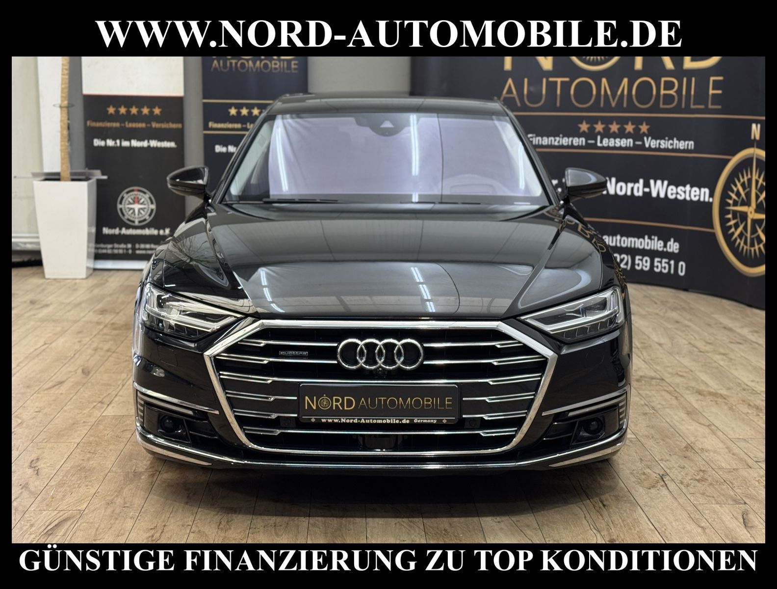 KomfortExtrasUnterhaltungBeschreibungwww.nord-automobile.de Audi A8 quattro 3.0 60 TFSI e 330kW 8-Gang Tiptronic 4 TürenAnsprechpartner: Jan Feldhus, Jonathan Steinfeld, Tom Bijman, Simon Wolff, Matthis Ullrich* FAHRZEUG-NUMMER: M-1635-BD * LACKIERUNG: Mythosschwarz Metallic * Mit Batteriezertifikt! * Deutsche Auslieferung * ehem.UPE: 133.815, - * MMI Navigation Plus mit MMI Touch * Sitzbezug / Polsterung: Leder Valcona * Assistenz-Paket Tour * Panorama-Ausstelldach elektrisch * Assistenzpaket Parken * Sitzbelüftung und Massagefunktion vorne * Parkassistent plus * HD Matrix LED-Scheinwerfer mit dynamischer Lichtinszenierung und dynamischem Blinklicht * Zentralverriegelung ''Keyless-Entry'' * Einparkhilfe vorn und hinten, akustisch und optisch mit selektiver Anzeige (APS Plus) * Bang & Olufsen Premium Sound System mit 3D Klang * Head-up-Display * Automatische Distanzregelung (mit follow to stop) und Speed-Limiter * City-Notbremsfunktion (Audi pre sense City) * Bluetooth-Freisprecheinrichtung mit Spracherkennung (Audi Phone Box) * Spurwechselassistent * Radioempfang digital (DAB) * Mit Front und Rückfahrkamerasystem und zwei Seitenkameras * Fahrwerk (adaptive air suspension) * Kombiinstrument digital (virtual cockpit plus) * Sitze vorn elektr. verstellbar (mit Memory) * Sitzheizung vorn und hinten * Doppelspeichen-Lederlenkrad mit Multifunktion, Schaltwippen und Lenkradheizung * Adaptive Scheibenwischer mit integrierten Waschdüsen * Kontur-/Ambiente Lichtpaket, mehrfarbig * Verglasung hinten abgedunkelt (Privacyverglasung) und Türscheiben vorn Akustikglas * Kühlbox im Handschuhfach * Mittelarmlehne vorn * Frontscheibe in Klimakomfort- und Akustikverglasung drahtlos beheizbar * Scheinwerfer-Reinigungsanlage (SRA) * Airbag Beifahrerseite abschaltbar * Start/Stop-Anlage * Reifendruck-Kontrollanzeige * Gepäckraumklappe elektr. betätigt (öffnen + schliessen) * Außenspiegel elektr. verstell-, heiz- und anklappbar, mit Abblendautomatik und Memory * Diebstahl-Warnanlage + Innenraumabsicherung / Abschleppschutz * Durchladeeinrichtung * Leichtmetallräder, 5-Arm, graphitgrau, glanzgedreht, 9, 0Jx19, Reifen 255/45 R19 * Nord-Automobile - Ihr starker und kompetenter Partner seit über 30 Jahren * Wir bieten Ihnen eine günstige Finanzierung auch ohne Anzahlung über die * AutoEuropaBank - Zweigniederlassung der Volkswagen Bank GmbH an * 20 XXL-Fotografien dieses Fahrzeuges finden Sie unter www.nord-automobile.de * Gerne unterbreiten wir Ihnen ein Angebot zum Ankauf Ihres bisherigen Fahrzeuges * Beim Export-Geschäft führen wir die Ausfuhranmeldung und Zulassung für Sie durch * Wir sind Meister-Werkstatt und zertifizierte GTÜ-Prüfstelle * Lernen Sie uns kennen - wir freuen uns auf Ihren Besuch * Keine Haftung für Druck & Schreibfehler. ... Klimaautomatik, Automatik, Leder, Navigationssystem, Allrad, Sitzheiz. vorn, Sitzheiz. hinten, Vorders. elekt. verstellb., ESP, ABS, Distronic, Multifunktionslenkr., Soundsystem, Tel. m. Freisprech., Bordcomputer, beheizte Frontscheibe, Spiegel beheizbar, Scheinwerferreinigung, elektr. Fensterheber vorn, elektr. WFS, ZV mit Fernb., Fahrerairb., Beifahrerairb., Leichtmetallfelgen, Nichtraucher, abklappb. Spiegel, Luftfederung, Mittelarmlehne, elekt. verstellb. Fahrersitz, Sitzheizung, Schadstoffklasse: Euro 6, 4x4-Antrieb, Lederlenkrad, HSN 0588, TSN BQR, Verbrauch: 2,2/0,0/0,0 l/100 km (komb/inn/auß), CO2: 56 g/km, HU + AU wird vor Verkauf erneuert, Feinstaubplakette: 4 - Grün |