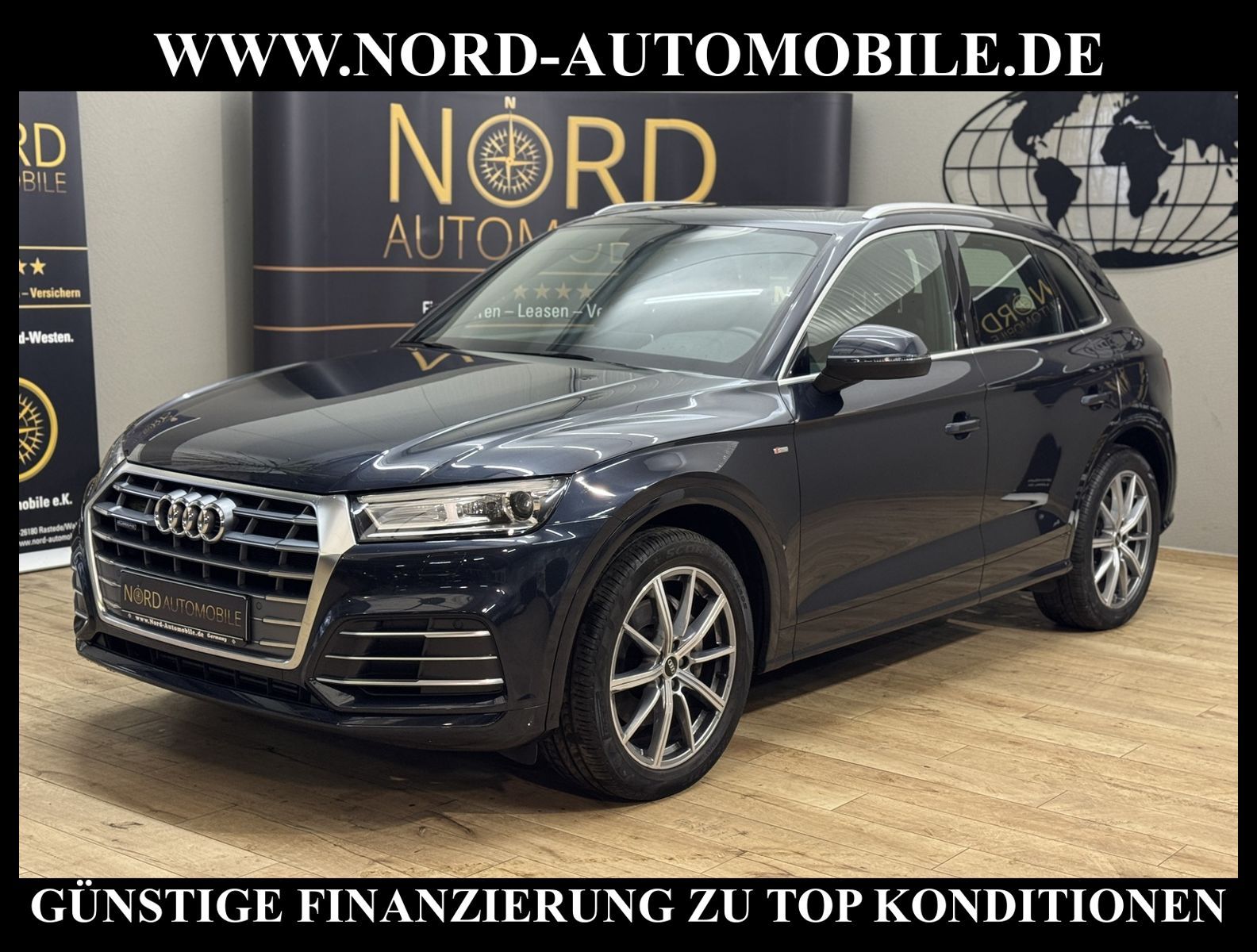 Audi Q5 50 TFSI e Hybrid quattro S-Tronic S-LINEAnsprechpartner: Jan Feldhus, Jonathan Steinfeld, Tom Bijman, Simon Wolff, Matthis Ullrich* FAHRZEUG-NUMMER: MW-9795-BD * LACKIERUNG: mondscheinblau metallic * deutsche Ausführung * Abgaskonzept, Euro6 DG * ehem.UPE: 80.890, - * Allradantrieb quattro * Hybrid 220 kW (Motor 2, 0 Ltr. - 195 kW TFSI) * Anhängerkupplung (Kugelkopf schwenkbar) * Ausstattungs-Paket: S line Sport-Paket / Plus * Exterieur-Paket S line * MMI Navigationssystem Plus mit MMI touch * Kombiinstrument digital (virtual cockpit) * Audi Sound-System DSP * Audi connect * Bluetooth-Freisprecheinrichtung mit Spracherkennung (Audi Phone Box) * Audi Smartphone Interface * digitaler Radioempfang (DAB+) * Komfort-Klimaautomatik 3-Zonen * Komfort-Standklimatisierung * Panoramadach vorn elektrisch, hinten fest * Sitzbezug / Polsterung: Leder Feinnappa, Rautensteppung mit Logo-Prägung in Vordersitzlehnen * Sportsitze vorn * Sitzheizung vorn * Sitzheizung hinten * Xenon-Scheinwerfer Plus mit LED-Tagfahrlicht * Fernlichtassistent * Heckleuchten LED * LM-Felgen 8x20 (10-Speichen-Stern-Design, Platin-Optik, glanzgedreht) * 4-Corner Luftfederung (adaptive air suspension) * Geschwindigkeitsregelanlage plus Speed-Limiter * Audi Drive Select * Einparkhilfe vorn und hinten, akustisch und optisch mit selektiver Anzeige (APS Plus) * Rückfahrkamera * Multifunktions-Lederlenkrad * Gepäckraumklappe elektrisch betätigt (öffnen + schliessen) * Sonnenschutzrollo an Türscheiben hinten * Sitze vorn höhenverstellbar * Mittelarmlehne vorn * Rücksitzlehne geteilt/klappbar, verschiebbar (40:20:40) * Dachhimmel Stoff, schwarz * Dachreling * Zentralverriegelung mit Fernbedienung ''keyless go'' * Außenspiegel elektrisch verstell-, heiz- und anklappbar, mit Abblendautomatik und Bordsteinautomatik * Innenspiegel mit Abblendautomatik * Isofix-Aufnahmen für Kindersitz * Airbag Fahrer-/Beifahrerseite * Airbag Beifahrerseite abschaltbar * Kopf-Airbag-System (Sideguard) * Seitenairbag vorn und hinten * Insassen-Schutzsystem (Audi pre sense basic) * City-Notbremsfunktion (Audi pre sense City) * Reifendruckkontrolle * Start/Stopp-Anlage mit Rekuperation * Getriebe 7-Gang - Doppelkupplungsgetriebe S-tronic für Allrad * Nord-Automobile - Ihr starker und kompetenter Partner seit über 30 Jahren * Wir bieten Ihnen eine günstige Finanzierung auch ohne Anzahlung über die * AutoEuropaBank - Zweigniederlassung der Volkswagen Bank GmbH an * 20 XXL-Fotografien dieses Fahrzeuges finden Sie unter www.nord-automobile.de * Gerne unterbreiten wir Ihnen ein Angebot zum Ankauf Ihres bisherigen Fahrzeuges * Beim Export-Geschäft führen wir die Ausfuhranmeldung und Zulassung für Sie durch * Wir sind Meister-Werkstatt und zertifizierte DEKRA-Prüfstelle * Lernen Sie uns kennen - wir freuen uns auf Ihren Besuch * Keine Haftung für Druck & Schreibfehler. ... Klima vorn+hinten, Klimaautomatik, Automatik, Leder, Navigationssystem, Allrad, Sitzheiz. vorn, Sitzheiz. hinten, Xenon, Regensensor, ESP, ABS, Schiebedach elek., Parktronic System, Multifunktionslenkr., Radio, Soundsystem, Bordcomputer, Tempomat, Spiegel autom. abblendbar, Spiegel beheizbar, elektr. Fensterheber vorn, elektr. WFS, Keyless-Go, ZV mit Fernb., Fahrerairb., Beifahrerairb., Seitenairbag vorn, Seitenairbag hinten, Kopfairbags, Leichtmetallfelgen, Nichtraucher, Anhaengerk., Glasdach, Servolenkung, Sportsitze/Schalensitze, Spoiler, Sitzbank teilbar, Dachreling, abklappb. Spiegel, elektr. verstellb. Spiegel, Kopfst. vorn, Gepaeckraumabd., Luftfederung, Aluoptik, Mittelarmlehne, Sitzheizung Fahrer + Beif., Lichtsensor, Waermeschutzvergl., aus erster Hand, 4x4-Antrieb, Lederlenkrad, Lederschaltknauf, HSN 0588, TSN BRF, Verbrauch: 2,2/0,0/0,0 l/100 km (komb/inn/auß), CO2: 57 g/km, Partikelfilter, HU + AU wird vor Verkauf erneuert, Standklima |