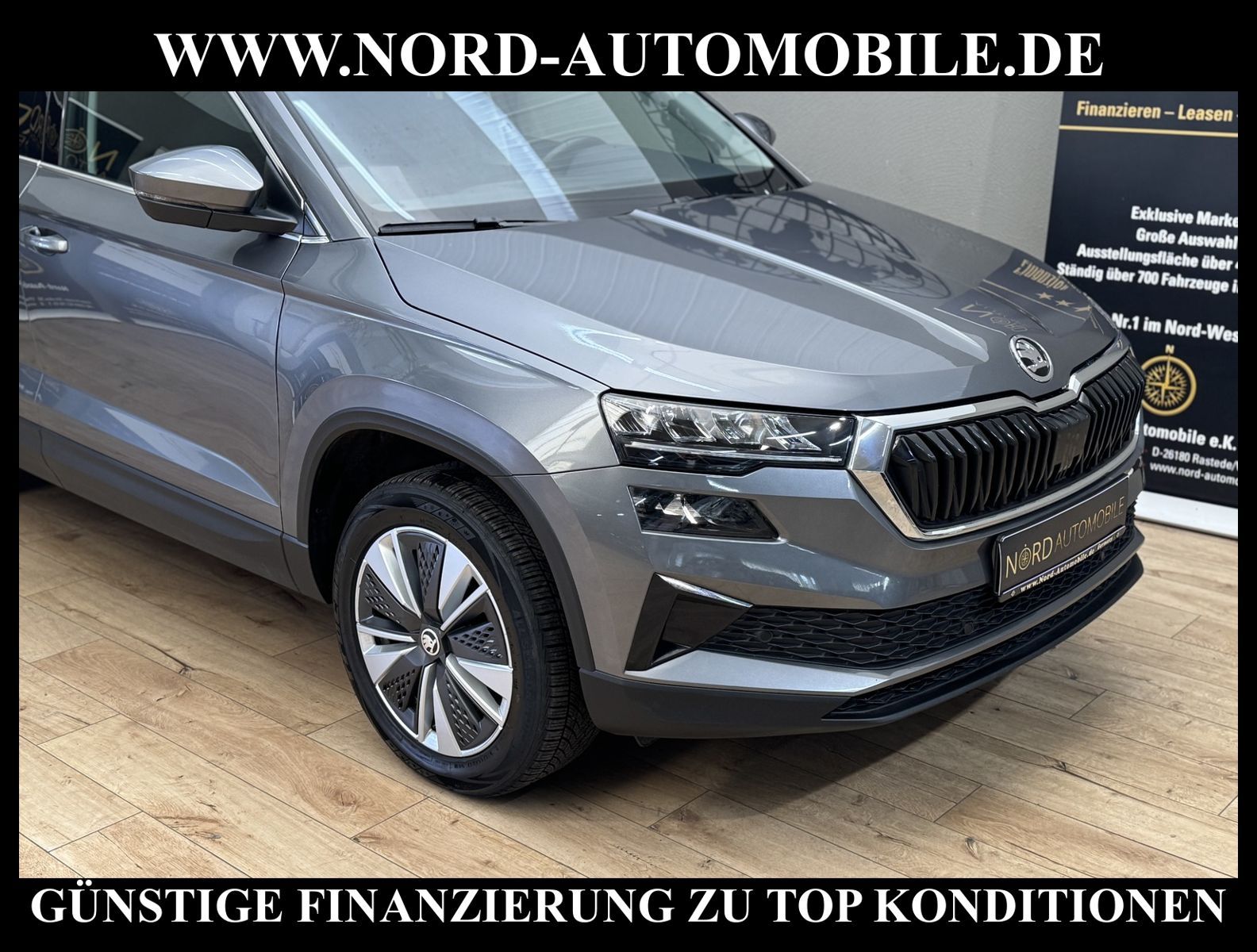 KomfortExtrasUnterhaltungBeschreibungwww.nord-automobile.de Skoda Karoq Ambition 2.0 TDI 85kW 7-Gang Automatikgetriebe 4 TürenAnsprechpartner: Jan Feldhus, Jonathan Steinfeld, Tom Bijman, Simon Wolff, Matthis Ullrich* FAHRZEUG-NUMMER: M-4396-BD * LACKIERUNG: Graphite-Grau Metallic * Modelljahr:2023 * UPE brutto 41.996 ¤ * Schadstoffarm nach Abgasnorm Euro 6d * LED-Scheinwerfer * Navi Amundsen + Web radio * Kombiinstrument digital (virtual cockpit) * Spurhalteassistent * Mit Rückfahrkamerasystem * Ausstattungsstufe - Ambition * Wired & Wireless App-Connect * Komfort telefonie mit Wireless charging * Klimaanlage Climatronic 2-Zonen - Staub- und Pollenfilter mit Aktivkohlefilter - Handschuhfach mit Kühlfunktion * ''PARK DISTANCE CONTROL'' Parksensoren vo. u. hi. * Zentralverriegelung ''Keyless-Entry'' * Care Connect + Infotainment Online * Müdigkeitserkennung * Verkehrszeichenerkennung * Multifunktionslenkrad * Autom. Distanzregelung (ACC) mit Frontradar-Assistent * Sprachsteuerung * Automatische Distanzregelung (mit follow to stop) und Speed-Limiter * Tagesfahrlicht mit Assistenzfahrlicht u.Coming- Leaving-home Funktion manuell * Variable Doppelboden inkl. Verranke- rungsöse für Ladeboden + Organiser + Alu-Querträger * Scheibenwischer-Intervallschaltung mit Licht/Regensensor * Sitz vorn höhenverstellbar mit Lendenwirbelstütze beidseitig * Rücksitzbank geteilt umlegbar mit Mittelarmlehne * Kindersitzverankerung für Kindersitzsystem ISO FIX * Lendenwirbelstütze, manuell einstellbar in Vordersitzlehnen * Elektrische Fensterheber vorn und hinten * Airbag Fahrer und Beifahrer, mit Knieairbags * DAB - Digitaler Radioempfang * Servolenkung, geschwindigkeitsabhängig (Servotronic) * Frontscheibe, Wärmeschutzglas * Außenspiegel, automatisch abblendbar elektrisch anklapp-/einstell-/beheizbar * Wegfahrsperre elektronisch * Scheiben seitlich in Wärmeschutzverglasung und hinten dunkel eingefärbt * Berganfahrassistent * Leichtmetallräder ''SCUTUS'' 7J x 17'' - 4 Stk. * Nord-Automobile - Ihr starker und kompetenter Partner seit über 30 Jahren * Wir bieten Ihnen eine günstige Finanzierung auch ohne Anzahlung über die * AutoEuropaBank - Zweigniederlassung der Volkswagen Bank GmbH an * 20 XXL-Fotografien dieses Fahrzeuges finden Sie unter www.nord-automobile.de * Gerne unterbreiten wir Ihnen ein Angebot zum Ankauf Ihres bisherigen Fahrzeuges * Beim Export-Geschäft führen wir die Ausfuhranmeldung und Zulassung für Sie durch * Wir sind Meister-Werkstatt und zertifizierte GTÜ-Prüfstelle * Lernen Sie uns kennen - wir freuen uns auf Ihren Besuch * Keine Haftung für Druck & Schreibfehler. ... Klima, Klimaautomatik, Automatik, Navigationssystem, Regensensor, ESP, ABS, Distronic, Multifunktionslenkr., Radio, Tel. m. Freisprech., Bordcomputer, Tempomat, Spiegel beheizbar, elektr. Fensterheber vorn, elektr. WFS, Keyless-Go, ZV mit Fernb., Fahrerairb., Beifahrerairb., Seitenairbag vorn, Kopfairbags, Leichtmetallfelgen, Nichtraucher, Nebelscheinw., Servolenkung, Sitzbank teilbar, abklappb. Spiegel, Mittelarmlehne, Lendenwirbelst., Sitzhoehenv., orthop. Fahrersitz, Lichtsensor, Waermeschutzvergl., Schadstoffklasse: Euro 6, Diesel, Frontantrieb, HSN 8004, TSN AVU, HU + AU wird vor Verkauf erneuert, Feinstaubplakette: 4 - Grün |