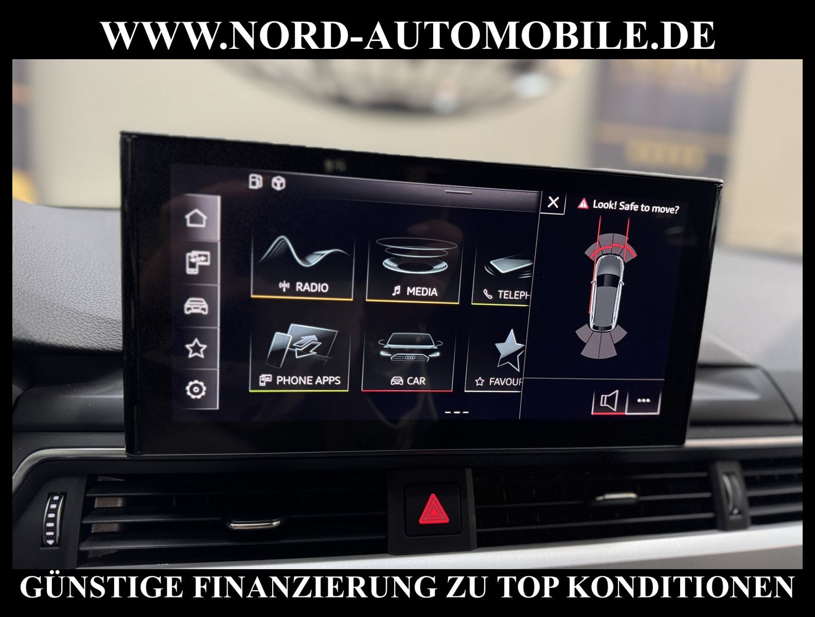 KomfortExtrasUnterhaltungBeschreibungwww.nord-automobile.de AUDI A4 AvantAnsprechpartner:Jan Feldhus, Jonathan Steinfeld, Tom Bijman, Simon Wolff, Matthis Ullrich* FAHRZEUG-NUMMER: M-9693-BD * LACKIERUNG:Mythosschwarz Metallic * Deutsche Auslieferung * Mdelljahr:2022 * UPE brutto 45.261 ¤ * Abgaskonzept, EU6 AP * Audi Smartphone Interface * Einparkhilfe plus * Sonnenschutzrollo für Seitenscheiben hinten * Sitzheizung für Vordersitze getrennt regelbar * Navigationsgerät-High * Telefonvorbereitung für Handy * Digitaler Radioempfang * Einparkhilfe vorn und hinten * Multifunktionsanzeige/Bordcomputer''TOP'' * Geschwindigkeitsregelanlage plus Speed-Limiter * LED-Scheinwerfer * Komfortschlüssel inkl. sensorgesteuerterGepäckraumentriegelung inkl. Gepäckraum-klappe elektrisch öffnend und schließend * Ledersportmultifunktionslenkrad * Höheneinstellung, manuell, für Vordersitze * Rücksitzbank ungeteilt, Lehne geteilt umlegbar (dreiteilig) mit Mittelarmlehne * Zentralverriegelung ''Keyless-Entry''ohne Safesicherung * Servoschließung Heckklappe * Glas im Fond dunkel eingefärbt(Venus 35/ Privacy)vorn Wärmeschutzglas (grün) * Fernlichtassistent * Sicherheitsinnenspiegel automatisch abblendbar * Airbag FS und BFS, ohne Knieairbag, mit BFS-Deaktivierung * Außenspiegel, automatisch abblendbar elektrisch anklapp-/einstell-/beheizbar * Reifendruckkontrolle * Start/Stopp-Anlage mit Rekuperation * Leichtmetallräder 7 1/2J x17 * 7-Gang-Automatikgetriebe * Nord-Automobile - Ihr starker und kompetenter Partner seit über 30 Jahren * Wir bieten Ihnen eine günstige Finanzierung auch ohne Anzahlung über die * AutoEuropaBank - Zweigniederlassung der Volkswagen Bank GmbH an * 20 XXL-Fotografien dieses Fahrzeuges finden Sie unter www.nord-automobile.de * Gerne unterbreiten wir Ihnen ein Angebot zum Ankauf Ihres bisherigen Fahrzeuges * Beim Export-Geschäft führen wir die Ausfuhranmeldung und Zulassung für Sie durch * Wir sind Meister-Werkstatt und zertifizierte GTÜ-Prüfstelle * Lernen Sie uns kennen - wir freuen uns auf Ihren Besuch * Keine Haftung für Druck & Schreibfehler. ... Klima, Klimaautomatik, Automatik, Navigationssystem, Sitzheiz. vorn, Regensensor, ESP, ABS, Parktronic System, Multifunktionslenkr., Radio, Bordcomputer, Tempomat, Spiegel autom. abblendbar, Spiegel beheizbar, elektr. Fensterheber vorn, elektr. WFS, Keyless-Go, Beifahrerairb., Seitenairbag vorn, Kopfairbags, Leichtmetallfelgen, Nichtraucher, Servolenkung, Sitzbank teilbar, Dachreling, abklappb. Spiegel, elektr. verstellb. Spiegel, Kopfst. vorn, Mittelarmlehne, Sitzheizung Fahrer + Beif., Lichtsensor, Waermeschutzvergl., aus erster Hand, Schadstoffklasse: Euro 6, Frontantrieb, Lederlenkrad, HSN 0588, TSN BNW, Verbrauch: 6,0/7,5/5,1 l/100 km (komb/inn/auß), CO2: 145 g/km, Partikelfilter, Feinstaubplakette: 4 - Grün |
