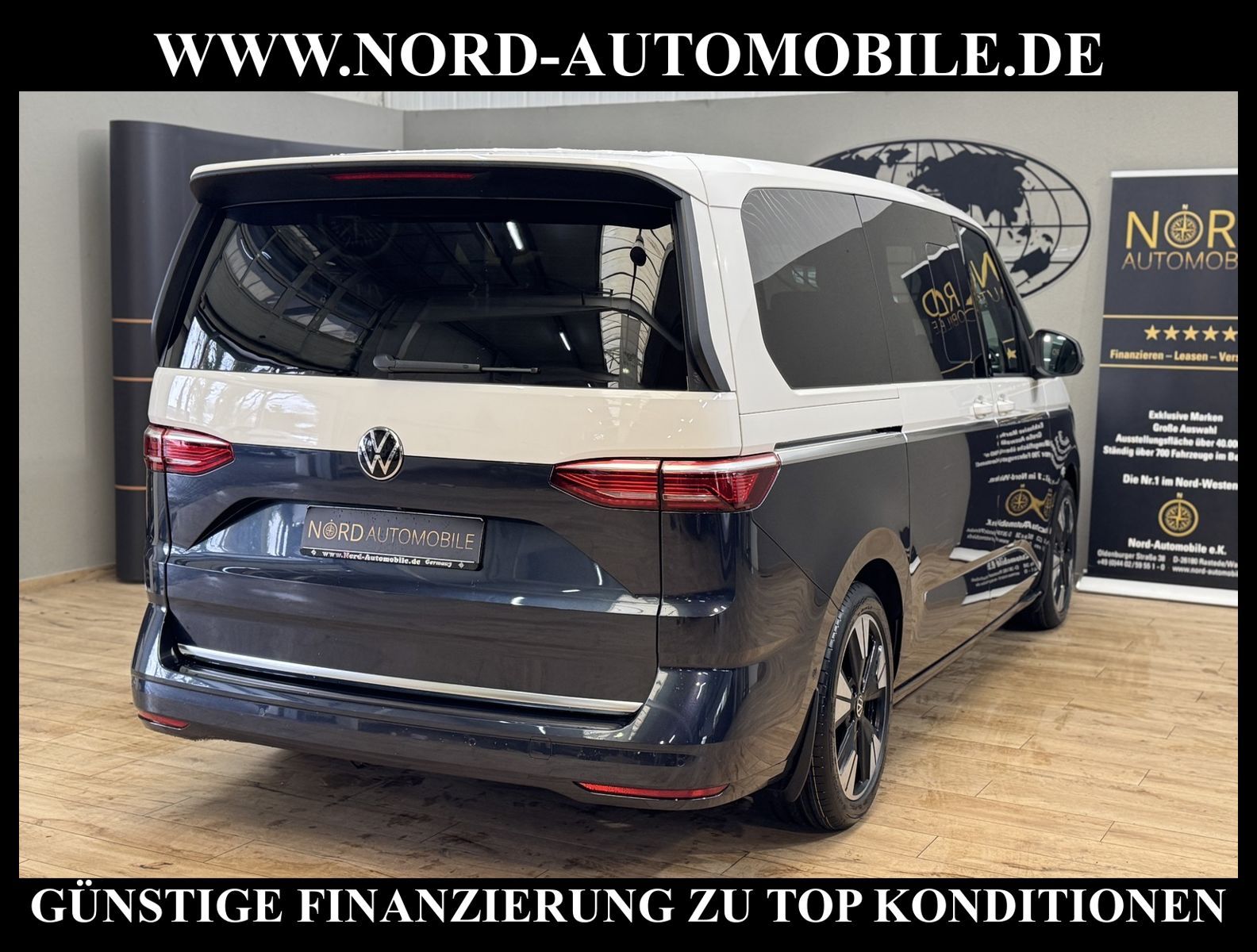 T7 MULTIVAN STYLE LANG 2.0 TDI DSG 7-SITZERAnsprechpartner: Jan Feldhus, Jonathan Steinfeld, Tom Bijman, Simon Wolff, Matthias Ullrich* FAHRZEUG-NUMMER: MW-3871-BD * LACKIERUNG: candyweiß / starlight metallic * deutsche Ausführung * Abgaskonzept WLTP3 M1, N1-I//EU6EA * ehem.UPE: 97.797, - * VW Anschlussgarantie 3 Jahre, max.150.000 km (unabhängig der gesetzlichen Sachmängelhaftung) * Ausführung LANG * Anhängevorrichtung anklappbar, mit elektrischer Entriegelung (einschließlich Gespannstabilisierung) * 7-Sitzer mit 4 Armlehnen beidseitig sowie 2 Klapptischen an 2.SR * Assistenzpaket Advanced * Business-Paket * Digital Cockpit Pro * Head-up-Display * Navigationssystem Discover PRO mit 25, 4 cm (10'') Touch-Farbdisplay inklusive ''Streaming & Internet'' * HARMAN-KARDON Sound-System (13 Lautsprecher, 840 Watt Gesamtleistung, Verstärker und Subwoofer) * Verkehrszeichenerkennung * Sprachassistent IDA und elektronische Sprachverstärkung * Digitaler Radioempfang (DAB+) * Intelligente Fahrzeugvernetzung (Car2X) * App-Connect Wireless für Apple CarPlay und Android Auto * Mobiltelefon-Schnittstelle * 2 USB-C-Schnittstellen vorn, 4 USB-C-Ladebuchsen im Fahrgastraum * 3-Zonen Klimaanlage ''Air Care Climatronic'' mit zusätzlichem Bedienteil im Fahrgastraum * Standheizung (als Wasser-Zusatzheizung) mit Funkfernbedienung * Bi-Color Sitzbezüge, Sitzmittelbahnen in Leder Savona perforiert, Sitzwangen in Glattlederoptik * Vordersitze mit aktiver Sitzbelüftung * Sitzheizung für beide Sitze im Fahrerhaus * Sitzheizung die äußeren Sitze des Fahrgastraums * IQ.LIGHT-LED-Matrix-Scheinwerfer mit LED-Tagfahrlicht * dynamische Fernlichtregulierung ''Dynamic Light Assist'' * Leuchtweitenregulierung, dynamisch, mit dynamischem Kurvenfahrlicht * LED-Rückleuchten * Leiste zwischen den Scheinwerfern hinterleuchtet * Leichtmetallräder ''Halmstad'' 8J x 19, in Schwarz, Oberfläche glanzgedreht * adaptive Fahrwerksregelung DCC mit Dynamikfahrwerk inklusive Tieferlegung um ca. 20 mm * Fahrprofilauswahl für DCC * autom. Distanzregelung (ACC inkl.Stop&Go-Funktion) * Parklenkassistent ''Park Assist'' und Einparkhilfe im Front- und Heckbereich * Rückfahrkamera ''Rear View'' * heizbares Multifunktions-Lederlenkrad mit Schaltwippen * Multifunktionstisch/Mittelkonsole mit 3 Becherhaltern, im ganzen Fahrzeug verschiebbar * Spurhalteassistent (Lane Assist) mit Travel Assist und Emergency Assist * Spurwechselassistent (Side Assist)inkl.''Blind Spot Detection'', mit Auspark-Assistent und Ausstiegswarnung * Ausweichunterstützung und Abbiegeassistent * Frontscheibe in Verbundsicherheitsglas, wärme- und geräuschdämmend, beheizbar * Scheiben im Fond abgedunkelt * Diebstahl-Alarmanlage mit Innenraumüberwachung * Schiebetür links und rechts elektrisch * Schiebefenster in der Schiebetür links und rechts * Servoschließung der Heckklappe mit Entriegelungsfunktion von innen * AGR ErgoComfort Sitze vorne, elektrisch verstellbar, Memory- & Massagefunktion für Fahrer * Armlehnen für Fahrer- und Beifahrersitz, beidseitig, mit elektrischer Lendenwirbelstütze und Klapptisch * Ablenkungs- und Müdigkeitserkennung * Schubladen unter den äußeren Sitzen im Fahrgastraum * Ambientebeleuchtung 30-farbig * Umfeldbeleuchtung an der Heckklappe * Umfeldbeleuchtung im Türbereich * Bordcomputer * Zentralverriegelung mit Fernbedienung und Keyless-Start * Fensterheber elektrisch vorn + hinten * Außenspiegel elektrisch anklappbar, einstell- und beheizbar * Außenspiegelgehäuse in schwarz hochglanz * Scheibenwischer mit Licht/Regensensor * Schlechtwetterlicht (inklusive Abbiegelicht) * Isofix-Aufnahmen für Kindersitz * Airbag Fahrer-/Beifahrerseite * Airbag Beifahrerseite abschaltbar * Seiten- und Kopfairbag für Fahrer und Beifahrer * Kopfairbags für die äußeren Sitzplätze hinten und Mittenairbag vorn * Insassen-Schutzsystem proaktiv * Notbremsassistent ''Front Assist'' mit Fußgänger- und Radfahrererkennung * Notrufsystem eCall * Reifendruckkontrolle * Start/Stopp-Anlage mit Rekuperation * 7-Gang-Doppelkupplungsgetriebe DSG * Nord-Automobile - Ihr starker und kompetenter Partner seit über 20 Jahren * Wir bieten Ihnen eine günstige Finanzierung auch ohne Anzahlung über die * AutoEuropaBank - Zweigniederlassung der Volkswagen Bank GmbH an * 20 XXL-Fotografien dieses Fahrzeuges finden Sie unter www.nord-automobile.de * Gerne unterbreiten wir Ihnen ein Angebot zum Ankauf Ihres bisherigen Fahrzeuges * Beim Export-Geschäft führen wir die Ausfuhranmeldung und Zulassung für Sie durch * Wir sind Meister-Werkstatt und zertifizierte DEKRA-Prüfstelle * **Lernen Sie uns kennen - wir freu |