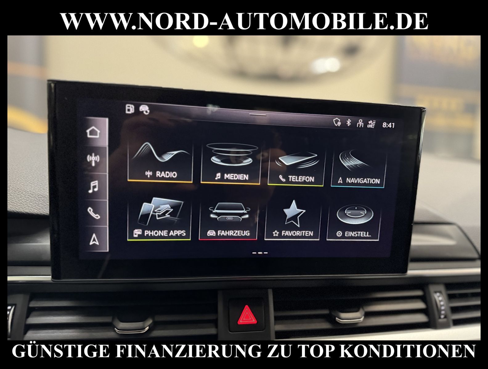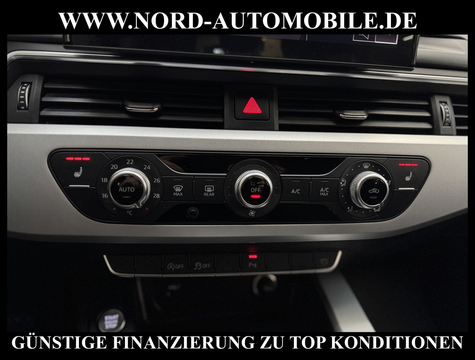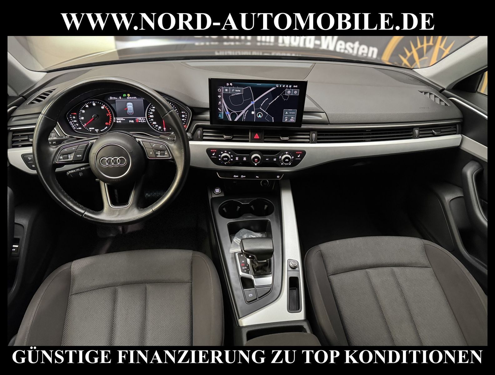 KomfortExtrasUnterhaltungBeschreibungwww.nord-automobile.de AUDI A4 AvantAnsprechpartner:Jan Feldhus, Jonathan Steinfeld, Tom Bijman, Simon Wolff, Matthis Ullrich* FAHRZEUG-NUMMER: M-9565-BD * LACKIERUNG:Mythosschwarz Metallic * Deutsche Auslieferung * Mdelljahr:2022 * UPE brutto 45.261 ¤ * Abgaskonzept, EU6 AP * Audi Smartphone Interface * Einparkhilfe plus * Sonnenschutzrollo für Seitenscheiben hinten * Sitzheizung für Vordersitze getrennt regelbar * Navigationsgerät-High * Telefonvorbereitung für Handy * Digitaler Radioempfang * Einparkhilfe vorn und hinten * Multifunktionsanzeige/Bordcomputer''TOP'' * Geschwindigkeitsregelanlage plus Speed-Limiter * LED-Scheinwerfer * Komfortschlüssel inkl. sensorgesteuerterGepäckraumentriegelung inkl. Gepäckraum-klappe elektrisch öffnend und schließend * Ledersportmultifunktionslenkrad * Höheneinstellung, manuell, für Vordersitze * Rücksitzbank ungeteilt, Lehne geteilt umlegbar (dreiteilig) mit Mittelarmlehne * Zentralverriegelung ''Keyless-Entry''ohne Safesicherung * Servoschließung Heckklappe * Glas im Fond dunkel eingefärbt(Venus 35/ Privacy)vorn Wärmeschutzglas (grün) * Fernlichtassistent * Sicherheitsinnenspiegel automatisch abblendbar * Airbag FS und BFS, ohne Knieairbag, mit BFS-Deaktivierung * Außenspiegel, automatisch abblendbar elektrisch anklapp-/einstell-/beheizbar * Reifendruckkontrolle * Start/Stopp-Anlage mit Rekuperation * Leichtmetallräder 7 1/2J x17 * 7-Gang-Automatikgetriebe * Nord-Automobile - Ihr starker und kompetenter Partner seit über 30 Jahren * Wir bieten Ihnen eine günstige Finanzierung auch ohne Anzahlung über die * AutoEuropaBank - Zweigniederlassung der Volkswagen Bank GmbH an * 20 XXL-Fotografien dieses Fahrzeuges finden Sie unter www.nord-automobile.de * Gerne unterbreiten wir Ihnen ein Angebot zum Ankauf Ihres bisherigen Fahrzeuges * Beim Export-Geschäft führen wir die Ausfuhranmeldung und Zulassung für Sie durch * Wir sind Meister-Werkstatt und zertifizierte GTÜ-Prüfstelle * Lernen Sie uns kennen - wir freuen uns auf Ihren Besuch * Keine Haftung für Druck & Schreibfehler. ... Klima, Klimaautomatik, Automatik, Navigationssystem, Sitzheiz. vorn, Regensensor, ESP, ABS, Parktronic System, Multifunktionslenkr., Radio, Bordcomputer, Tempomat, Spiegel autom. abblendbar, Spiegel beheizbar, elektr. Fensterheber vorn, elektr. WFS, Keyless-Go, Beifahrerairb., Seitenairbag vorn, Kopfairbags, Leichtmetallfelgen, Nichtraucher, Servolenkung, Sitzbank teilbar, Dachreling, abklappb. Spiegel, elektr. verstellb. Spiegel, Kopfst. vorn, Mittelarmlehne, Sitzheizung Fahrer + Beif., Lichtsensor, Waermeschutzvergl., aus erster Hand, Schadstoffklasse: Euro 6, Frontantrieb, Lederlenkrad, HSN 0588, TSN BNW, Verbrauch: 6,0/7,5/5,1 l/100 km (komb/inn/auß), CO2: 145 g/km, Partikelfilter, HU + AU wird vor Verkauf erneuert, Feinstaubplakette: 4 - Grün |