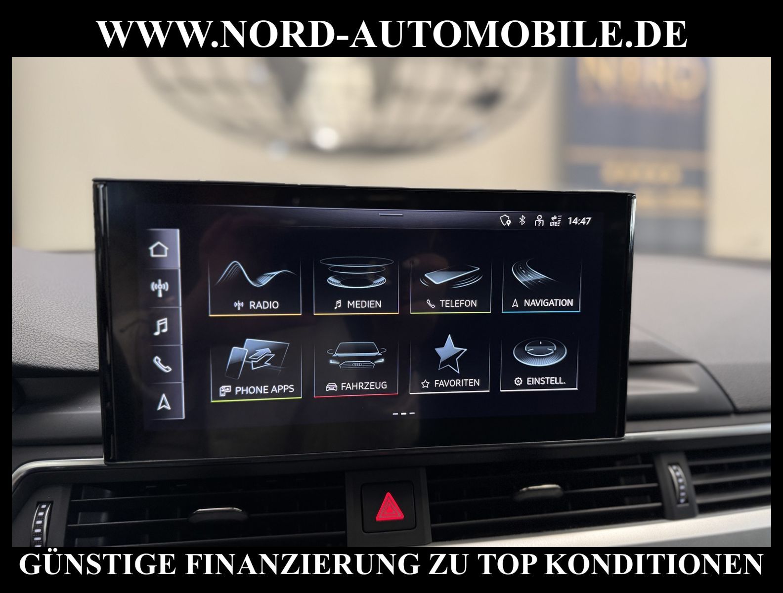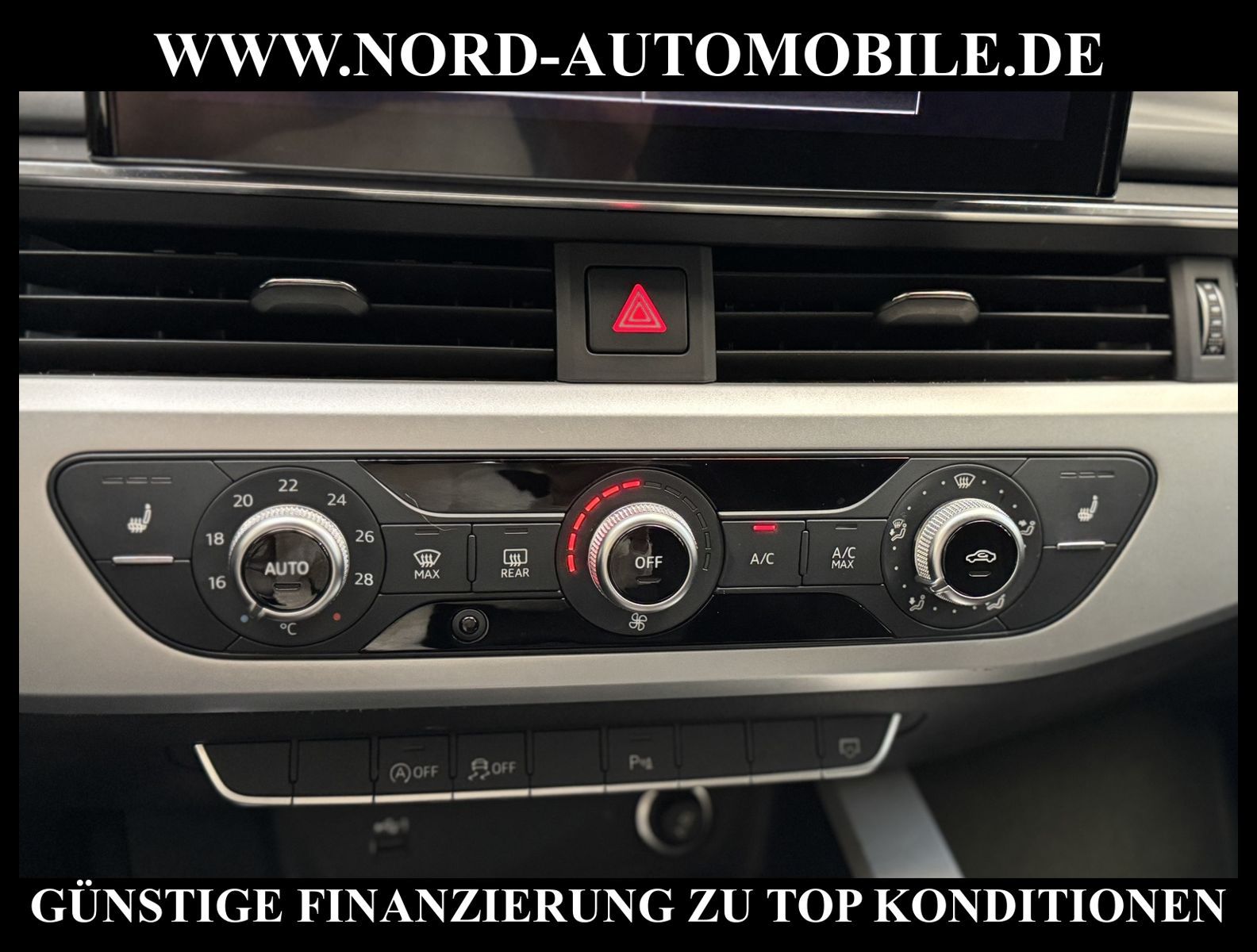 KomfortExtrasUnterhaltungBeschreibungwww.nord-automobile.de AUDI A4 AvantAnsprechpartner:Jan Feldhus, Jonathan Steinfeld, Tom Bijman, Simon Wolff, Matthis Ullrich* FAHRZEUG-NUMMER: M-3882-BD * LACKIERUNG:Mythosschwarz Metallic * Deutsche Auslieferung * Mdelljahr:2022 * UPE brutto 45.261 ¤ * Abgaskonzept, EU6 AP * Audi Smartphone Interface * Einparkhilfe plus * Sonnenschutzrollo für Seitenscheiben hinten * Sitzheizung für Vordersitze getrennt regelbar * Navigationsgerät-High * Telefonvorbereitung für Handy * Digitaler Radioempfang * Einparkhilfe vorn und hinten * Multifunktionsanzeige/Bordcomputer''TOP'' * Geschwindigkeitsregelanlage plus Speed-Limiter * LED-Scheinwerfer * Komfortschlüssel inkl. sensorgesteuerterGepäckraumentriegelung inkl. Gepäckraum-klappe elektrisch öffnend und schließend * Ledersportmultifunktionslenkrad * Höheneinstellung, manuell, für Vordersitze * Rücksitzbank ungeteilt, Lehne geteilt umlegbar (dreiteilig) mit Mittelarmlehne * Zentralverriegelung ''Keyless-Entry''ohne Safesicherung * Servoschließung Heckklappe * Glas im Fond dunkel eingefärbt(Venus 35/ Privacy)vorn Wärmeschutzglas (grün) * Fernlichtassistent * Sicherheitsinnenspiegel automatisch abblendbar * Airbag FS und BFS, ohne Knieairbag, mit BFS-Deaktivierung * Außenspiegel, automatisch abblendbar elektrisch anklapp-/einstell-/beheizbar * Reifendruckkontrolle * Start/Stopp-Anlage mit Rekuperation * Leichtmetallräder 7 1/2J x17 * 7-Gang-Automatikgetriebe * Nord-Automobile - Ihr starker und kompetenter Partner seit über 30 Jahren * Wir bieten Ihnen eine günstige Finanzierung auch ohne Anzahlung über die * AutoEuropaBank - Zweigniederlassung der Volkswagen Bank GmbH an * 20 XXL-Fotografien dieses Fahrzeuges finden Sie unter www.nord-automobile.de * Gerne unterbreiten wir Ihnen ein Angebot zum Ankauf Ihres bisherigen Fahrzeuges * Beim Export-Geschäft führen wir die Ausfuhranmeldung und Zulassung für Sie durch * Wir sind Meister-Werkstatt und zertifizierte GTÜ-Prüfstelle * Lernen Sie uns kennen - wir freuen uns auf Ihren Besuch * Keine Haftung für Druck & Schreibfehler. ... Klima, Klimaautomatik, Automatik, Navigationssystem, Sitzheiz. vorn, Regensensor, ESP, ABS, Parktronic System, Multifunktionslenkr., Radio, Bordcomputer, Tempomat, Spiegel autom. abblendbar, Spiegel beheizbar, elektr. Fensterheber vorn, elektr. WFS, Keyless-Go, Beifahrerairb., Seitenairbag vorn, Kopfairbags, Leichtmetallfelgen, Nichtraucher, Servolenkung, Sitzbank teilbar, Dachreling, abklappb. Spiegel, elektr. verstellb. Spiegel, Kopfst. vorn, Mittelarmlehne, Sitzheizung Fahrer + Beif., Lichtsensor, Waermeschutzvergl., aus erster Hand, Schadstoffklasse: Euro 6, Frontantrieb, Lederlenkrad, HSN 0588, TSN BNW, Verbrauch: 6,0/7,5/5,1 l/100 km (komb/inn/auß), CO2: 145 g/km, Partikelfilter, HU + AU wird vor Verkauf erneuert, Feinstaubplakette: 4 - Grün |