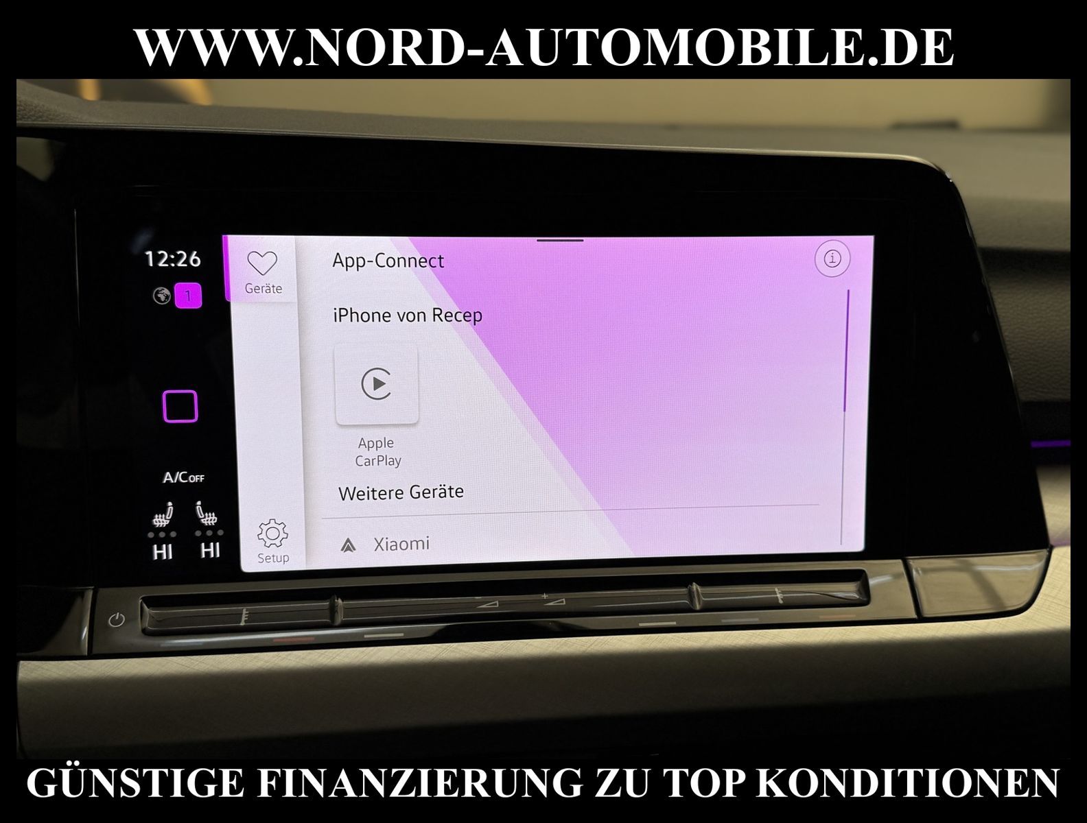 KomfortExtrasUnterhaltungBeschreibungwww.nord-automobile.de Volkswagen Golf Life 1.5 TSI 96kW 6-GangAnsprechpartner: Jan Feldhus, Jonathan Steinfeld, Tom Bijman, Simon Wolff, Matthis Ullrich* FAHRZEUG-NUMMER: M-1953 * LACKIERUNG: Deep Black Perleffekt * Modelljahr: 2023 * Deutsche Auslieferung * VW Anschlussgarantie bis 13.12.2027 und 100.000KM(unabhängig von der gesetzlichen Sachmangelhaftung) * Abgasnorm Euro 6d * Audio-Navigationssystem Discover Media Streaming & Internet * Navigationssystem ''Discover Media'' inkl. ''Streaming & Internet'' * Rückfahrkamera ''Rear View'' * Einparkhilfe vorne und hinten * Müdigkeitserkennungserkennung * Spurhalteassistent Lane-Assist * Climatronic ( 3-Zonen ) mit Klimabedienteil hinten * LED-Scheinwerfer * Winter-Paket * Zentralverriegelung ''Keyless-Go'' ohne Safesicherung * Verkehrszeichenerkennung * Automatische Distanzregelung ACC mit ''Front Assist'' * Vorbereitet für ''We Connect'' und ''We Connect Plus'' * Sitzheizung für Vordersitze getrennt regelbar * Geschwindigkeitsbegrenzer * Digital Cockpit Pro * Intelligente Fahrzeugvernetzung (Car2X) * Fernlichtregulierung (Light Assist) * Dekoreinlagen ''New Brushed Dark Metal'' für Instrumententafel auf der Beifahrerseite sowie Türverkleidungen * Lenkrad heizbar (Leder) mit Multifunktion * Licht-und-Sicht-Paket * Sitze vorn höhenverstellbar * Komfortsitze vorn * Seitenscheiben hinten und Heckscheibe abgedunkelt, zu 65 % lichtabsorbierend * Scheibenwaschdüsen vorn automatisch beheizt * Scheibenwischer-Intervallschaltung mit Licht/Regensensor * Außenspiegel elektrisch einstell- und beheizbar, mit Beifahrerspiegelabsenkung * Rücksitzlehne asymmetrisch geteilt umklappbar, mit Durchlademöglichkeit und Mittelarmlehne, 2 Becherhalter * Umfeldbeobachtungssystem (Front assist) mit City-Notbremsfunktion * ISOFIX-Halteösen für Kindersitze auf denäußeren Rücksitzen sowie auf dem Beifahrersitz, i-Size-kompatibel * Sitzbezüge in Stoff, Dessin ''Zoom'' * Airbag für Fahrer und Beifahrer, mit Beifahrerairbag-Deaktivierung * Radioempfang digital (DAB+) * Sicherheitsinnenspiegel automatisch abblendbar * Elektronische Parkbremse inkl. Auto-Hold-Funktion * Leichtmetallräder ''Portago'' 7 J x 16 * Start/Stopp-Anlage mit Rekuperation * 6-Gang-Schaltgetriebe * Reifenkontrollanzeige * Komfort telefonie, ohne Außenantennenanbindung * LED Scheinwerfer * Nord-Automobile - Ihr starker und kompetenter Partner seit über 30 Jahren * Wir bieten Ihnen eine günstige Finanzierung auch ohne Anzahlung über die * AutoEuropaBank - Zweigniederlassung der Volkswagen Bank GmbH an * 20 XXL-Fotografien dieses Fahrzeuges finden Sie unter www.nord-automobile.de * Gerne unterbreiten wir Ihnen ein Angebot zum Ankauf Ihres bisherigen Fahrzeuges * Beim Export-Geschäft führen wir die Ausfuhranmeldung und Zulassung für Sie durch * Wir sind Meister-Werkstatt und zertifizierte GTÜ-Prüfstelle * Lernen Sie uns kennen - wir freuen uns auf Ihren Besuch * Keine Haftung für Druck & Schreibfehler. ... Klima, Klimaautomatik, Navigationssystem, Sitzheiz. vorn, Regensensor, ABS, Distronic, Multifunktionslenkr., Radio, Tel. m. Freisprech., Tempomat, Spiegel beheizbar, elektr. WFS, Keyless-Go, ZV mit Fernb., Fahrerairb., Beifahrerairb., Kopfairbags, Leichtmetallfelgen, Nebelscheinw., Sitzbank teilbar, elektr. verstellb. Spiegel, Mittelarmlehne, Lendenwirbelst., Sitzhoehenv., orthop. Fahrersitz, Sitzheizung, Lichtsensor, Waermeschutzvergl., aus erster Hand, Schadstoffklasse: Euro 6, Frontantrieb, Lederlenkrad, HSN 0603, TSN CKM, HU + AU wird vor Verkauf erneuert, Feinstaubplakette: 4 - Grün |