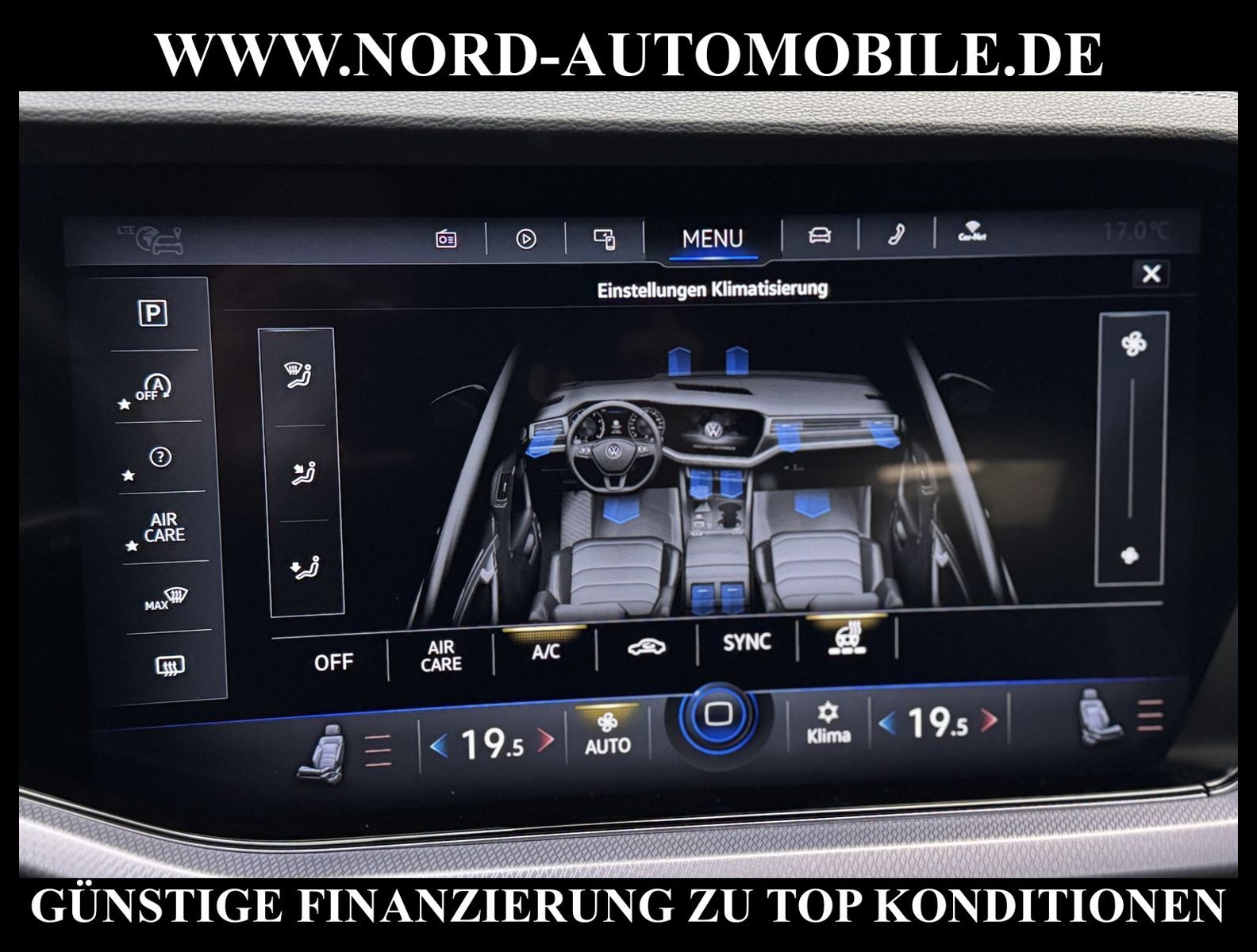 KomfortExtrasUnterhaltungBeschreibungwww.nord-automobile.de Volkswagen Touareg R-Line 4Motion 3.0 TDI SCR 170kW 8-Gang Tiptronic 4 TürenAnsprechpartner: Jan Feldhus, Jonathan Steinfeld, Tom Bijman, Simon Wolff, Matthis Ullrich* FAHRZEUG-NUMMER: M-7447-BD * LACKIERUNG: Deep Black Perleffekt * Modelljahr: 2022 * UPE brutto 82.444 ¤ * Deutsche Auslieferung * Abgasnorm Euro 6d * R-Line Black Style * 4 Corner Luftfederung mit elektrisch geregelter Dämpfung * IQ.LIGHT - LED-Matrix-Scheinwerfer * Spurwechselassistent * Spurhalteassistent plus Emergency Assist und Stauassistent * Rückfahrkamera ''Rear View'' * Parklenkassistent (Park Assist) und PDC vorn und hinten * Müdigkeitserkennungserkennung * Mirror Link plus Wireless RSE ''App'' * Active Info Display, mehrfarbig, verschiedene Info-Profile wählbar * Autom. Distanzregelung (ACC inkl. Stop&Go-Funktion) - Geschwindigkeitsbegrenzungsanlage * Navigationsgerät-Premium * Zentralverriegelung ''Keyless-Go'' ohne Safesicherung * Klimaanlage ''Climatronic'' mit 2-Zonen-Temperaturregelung * Verkehrszeichenerkennung * Sitzmittelbahnen und -wangeninnenseiten in Leder ''Vienna'', ''R-Line''-Logo in den Vordersitzen * Anhängerkupplung elektr. anklappbar * Sitzheizung für Vordersitze getrennt regelbar * Umfeldbeobachtungssystem (Front assist) mit City-Notbremsfunktion * 2 USB-C-Schnittstellen vorn, 1 USB-C-Ladebuchse an der Mittelkonsole hinten * Telefonschnittstelle ''Business'' mit induktiver Ladefunktion * Lenkrad heizbar (Leder, R-Line) mit Multifunktion und Schaltfunktion * Komfortsitze vorn * Lendenwirbelstützen vorn pneumatisch einstellbar * Ambiente-Beleuchtung weiß * Vordersitze elektrisch einstellbar, Fahrersitz mit längs verschiebbarer Oberschenkelauflage * Rücksitzbank und -lehne asymmetrisch geteilt umklappbar, längs verschiebbar, Lehenneigung einstellbar * Seitenscheiben hinten und Heckscheibe abgedunkelt, zu 65 % lichtabsorbierend * Dynamische Fernlichtregulierung ''Dynamic Light Assist'' für LED-Matrix-Scheinwerfer * Scheibenwaschdüsen vorn automatisch beheizt * Scheinwerfer-Reinigungsanlage * Kindersitzverankerung für Kindersitzsystem I-Size, 2 x top tether * Airbag für Fahrer und Beifahrer, mit Beifahrerairbag-Deaktivierung * Lenksäule einstellbar * Radioempfang digital (DAB+) * Kofferraumdeckel / Heckklappe elektr. betätigt (öffnen + schliessen) * Außenspiegel elektr. verstell-, heiz- und anklappbar * Kopfairbagsystem für Front- und Fondpassagiere inkl. Seitenairbags vorn * 8-Gang-Automatikgetriebe für Allrad * Start-Stopp-System mit Bremsenergie-Rückgewinnung * Reifenkontrollanzeige * Dachhimmel in Titanschwarz * 4 Leichtmetallräder ''Nevada'' 9 J x 20 in Schwarz * Nord-Automobile - Ihr starker und kompetenter Partner seit über 30 Jahren * Wir bieten Ihnen eine günstige Finanzierung auch ohne Anzahlung über die * AutoEuropaBank - Zweigniederlassung der Volkswagen Bank GmbH an * 20 XXL-Fotografien dieses Fahrzeuges finden Sie unter www.nord-automobile.de * Gerne unterbreiten wir Ihnen ein Angebot zum Ankauf Ihres bisherigen Fahrzeuges * Beim Export-Geschäft führen wir die Ausfuhranmeldung und Zulassung für Sie durch * Wir sind Meister-Werkstatt und zertifizierte GTÜ-Prüfstelle * Lernen Sie uns kennen - wir freuen uns auf Ihren Besuch * Keine Haftung für Druck & Schreibfehler. * -- Keine Haftung für Druck & Schreibfehler. ... Klima, Klimaautomatik, Automatik, Leder, Navigationssystem, Sitzheiz. vorn, Xenon, Vorders. elekt. verstellb., ESP, ABS, Distronic, Parktronic System, Multifunktionslenkr., Radio, Bordcomputer, Spiegel beheizbar, Scheinwerferreinigung, elektr. Fensterheber vorn, elektr. WFS, Keyless-Go, ZV mit Fernb., Fahrerairb., Beifahrerairb., Seitenairbag vorn, Kopfairbags, Leichtmetallfelgen, Nichtraucher, Anhaengerk., Sitzbank teilbar, Lenksaeule einstellbar, abklappb. Spiegel, elektr. verstellb. Spiegel, Luftfederung, Mittelarmlehne, elekt. verstellb. Fahrersitz, Sitzheizung, Waermeschutzvergl., aus erster Hand, Schadstoffklasse: Euro 6, Diesel, 4x4-Antrieb, Lederlenkrad, HSN 0603, TSN COB, Verbrauch: 7,0/8,8/5,9 l/100 km (komb/inn/auß), CO2: 216 g/km, Feinstaubplakette: 4 - Grün |
