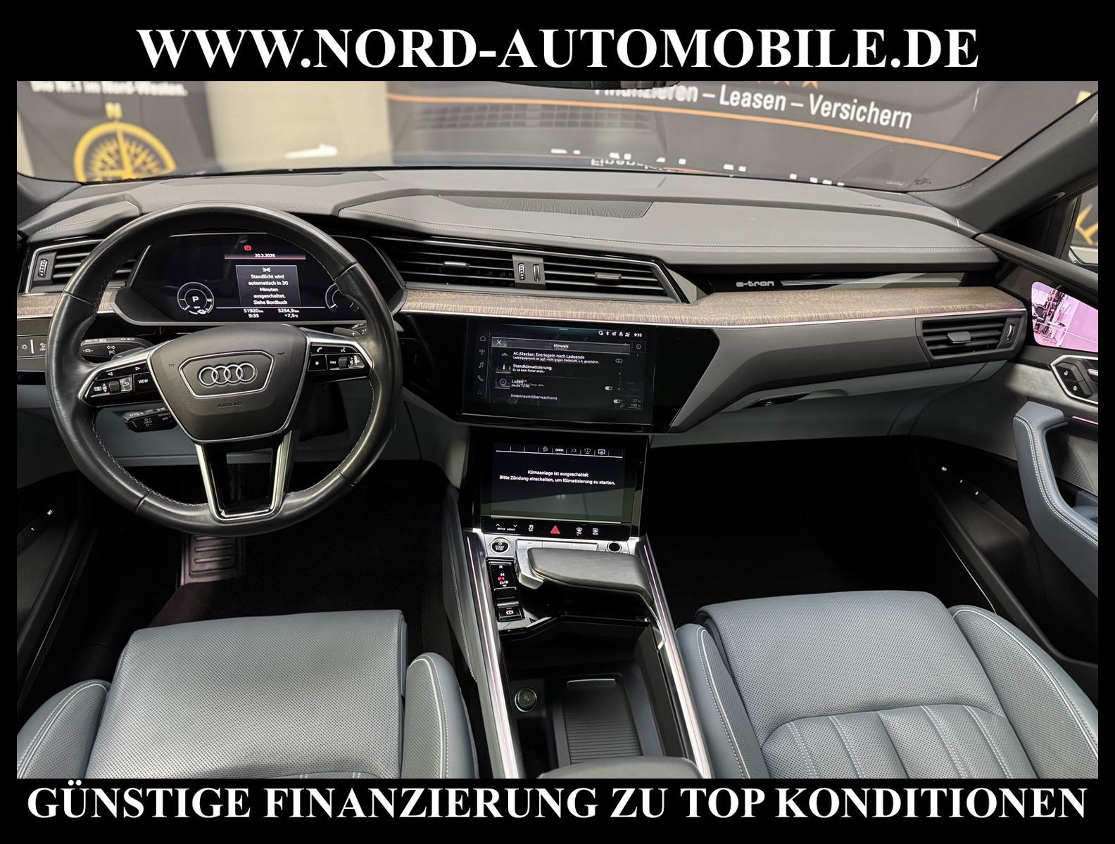 KomfortExtrasUnterhaltungBeschreibungwww.nord-automobile.de Audi e-tron Sportback advanced quattro 55 electric 300kW 1-Gang Automatikgetriebe 4 TürenAnsprechpartner: Jan Feldhus, Jonathan Steinfeld, Tom Bijman, Simon Wolff, Matthis Ullrich* FAHRZEUG-NUMMER: M-7885 * LACKIERUNG: Plasmablau Metallic * Modelljahr:2022 * Audi Aschlussgarantie bis 02.01.2027 und 100.000KM(unabhängig von der gesetzlichen Sachmangelhaftung) * UPE brutto 122.368 ¤ * Mit Batteriezertifikat SoH 93, 7% * Deutsche Auslieferung * Audi Design Selection * MMI Navigation Plus mit MMI Touch * Panoramadach vorn elektrisch, hinten fest * Kombiinstrument digital (virtual cockpit plus) * Assistenz-Paket Stadt * Servoschließung für die Türen * Leder Valcona perforiert mit Biese * Zentralverriegelung ''Keyless-Entry'' * HD Matrix LED-Scheinwerfer mit dynamischer Lichtinszenierung und dynamischem Blinklicht * Bang & Olufsen Premium Sound System mit 3D Klang * Head-up-Display * Digitaler TV Empfang mit CI+ PayTV-System und digitaler Radioempfang * City-Notbremsfunktion (Audi pre sense City) * Bluetooth-Freisprecheinrichtung mit Spracherkennung (Audi Phone Box) * Spurwechselassistent * Komfort-Klimaautomatik 4-Zonen * Mit Front und Rückfahrkamerasystem und zwei Seitenkameras * Fahrwerk (adaptive air suspension) * Anhängerkupplung (Kugelkopf abnehmbar) * Virtuelle Außenspiegel * Adaptiver Geschwindigkeitsassistent mit Geschwindigkeitsbegrenzer, Effizienz-, Ausweich- und Abbiegeassistent * Sitzbelüftung und Massagefunktion vorn * Digitaler TV Empfang mit CI+ PayTV System und digitaler Radioempfang * Sitzheizung vorn und hinten * Adaptive Scheibenwischer mit integrierten Waschdüsen * Dachhimmel in Stoff schwarz * Lederlenkrad im 3-Speichen-Design mit Multifunktion plus und Lenkradheizung * Kontur-/Ambiente Lichtpaket, mehrfarbig * Lenksäule (Lenkrad) elektr. verstellbar mit Memory * Verglasung hinten abgedunkelt (Privacyverglasung) und Türscheiben vorn Akustikglas * Vordersitze elektrisch einstellbar mit Memory-Funktion * Mittelarmlehne vorn * Seitenairbag vorn * Servolenkung * Airbag Beifahrerseite abschaltbar * Gepäckraumklappe elektr. betätigt (öffnen + schliessen) * Außenspiegel elektr. verstell-, heiz- und anklappbar, mit Abblendautomatik und Memory * Diebstahl-Warnanlage + Innenraumabsicherung / Abschleppschutz * Reifendruck-Kontrollsystem * Servoschließung für die Türen * Komfortschlüssel mit Diebstahl-Warnanlage Diebstahl-Warnanlage + Innenraumabsicherung / Abschleppschutz * Leichtmetallräder, 10-Speichen-Rotor, anthrazitschwarz, glanzgedreht, 9, 5Jx21, Reifen 265/45 R21, Audi Sport GmbH * Nord-Automobile - Ihr starker und kompetenter Partner seit über 30 Jahren * Wir bieten Ihnen eine günstige Finanzierung auch ohne Anzahlung über die * AutoEuropaBank - Zweigniederlassung der Volkswagen Bank GmbH an * 20 XXL-Fotografien dieses Fahrzeuges finden Sie unter www.nord-automobile.de * Gerne unterbreiten wir Ihnen ein Angebot zum Ankauf Ihres bisherigen Fahrzeuges * Beim Export-Geschäft führen wir die Ausfuhranmeldung und Zulassung für Sie durch * Wir sind Meister-Werkstatt und zertifizierte GTÜ-Prüfstelle * Lernen Sie uns kennen - wir freuen uns auf Ihren Besuch * Keine Haftung für Druck & Schreibfehler. ... Klima, Klimaautomatik, Automatik, Leder, Navigationssystem, Allrad, Sitzheiz. vorn, Sitzheiz. hinten, Vorders. elekt. verstellb., ESP, ABS, Distronic, Parktronic System, Multifunktionslenkr., Soundsystem, Tel. m. Freisprech., Bordcomputer, Spiegel beheizbar, elektr. Fensterheber vorn, elektr. WFS, ZV mit Fernb., Fahrerairb., Beifahrerairb., Seitenairbag vorn, Kopfairbags, Leichtmetallfelgen, Nichtraucher, Anhaengerk., Servolenkung, Lenksaeule einstellbar, abklappb. Spiegel, Luftfederung, Mittelarmlehne, elekt. verstellb. Fahrersitz, Sitzheizung, aus erster Hand, 4x4-Antrieb, Lederlenkrad, HSN 0588, TSN BSN, HU + AU wird vor Verkauf erneuert |