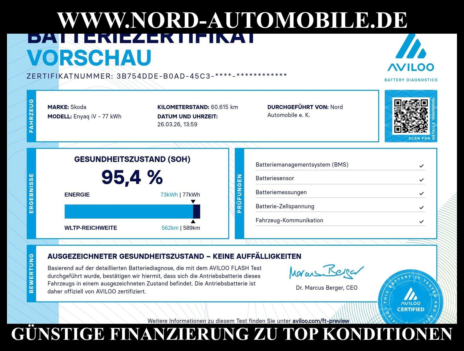 * Mit Batteriezertifikat SOH: 95.4%