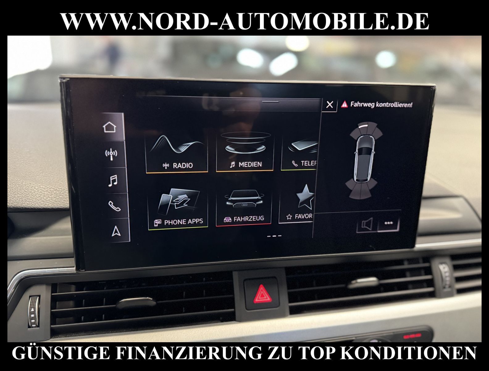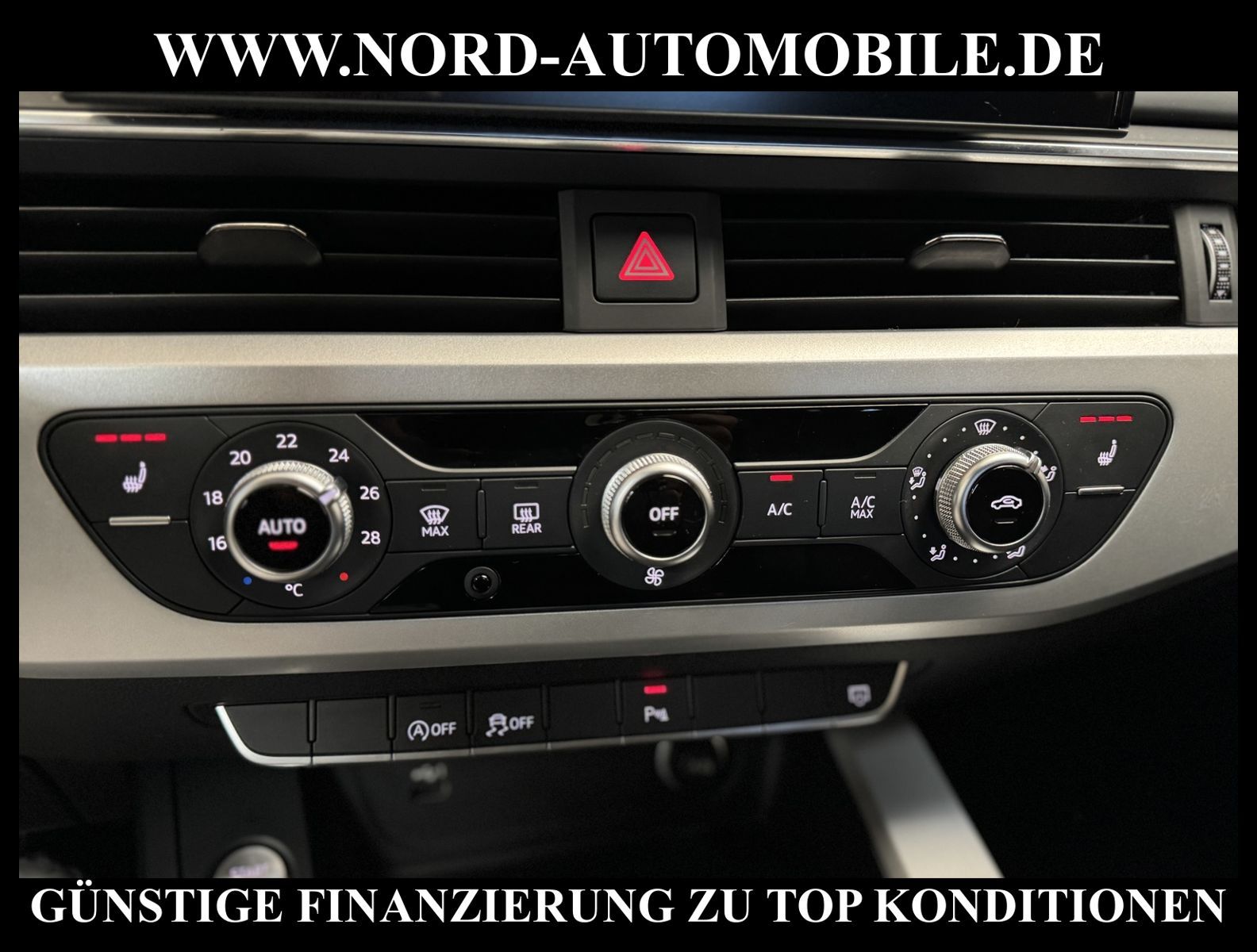 KomfortExtrasUnterhaltungBeschreibungwww.nord-automobile.de AUDI A4 AvantAnsprechpartner:Jan Feldhus, Jonathan Steinfeld, Tom Bijman, Simon Wolff, Matthis Ullrich* FAHRZEUG-NUMMER: M-7119-BD * LACKIERUNG:Mythosschwarz Metallic * Deutsche Auslieferung * Mdelljahr:2022 * UPE brutto 45.261 ¤ * Abgaskonzept, EU6 AP * Audi Smartphone Interface * Einparkhilfe plus * Sonnenschutzrollo für Seitenscheiben hinten * Sitzheizung für Vordersitze getrennt regelbar * Navigationsgerät-High * Telefonvorbereitung für Handy * Digitaler Radioempfang * Einparkhilfe vorn und hinten * Multifunktionsanzeige/Bordcomputer''TOP'' * Geschwindigkeitsregelanlage plus Speed-Limiter * LED-Scheinwerfer * Komfortschlüssel inkl. sensorgesteuerterGepäckraumentriegelung inkl. Gepäckraum-klappe elektrisch öffnend und schließend * Ledersportmultifunktionslenkrad * Höheneinstellung, manuell, für Vordersitze * Rücksitzbank ungeteilt, Lehne geteilt umlegbar (dreiteilig) mit Mittelarmlehne * Zentralverriegelung ''Keyless-Entry''ohne Safesicherung * Servoschließung Heckklappe * Glas im Fond dunkel eingefärbt(Venus 35/ Privacy)vorn Wärmeschutzglas (grün) * Fernlichtassistent * Sicherheitsinnenspiegel automatisch abblendbar * Airbag FS und BFS, ohne Knieairbag, mit BFS-Deaktivierung * Außenspiegel, automatisch abblendbar elektrisch anklapp-/einstell-/beheizbar * Reifendruckkontrolle * Start/Stopp-Anlage mit Rekuperation * Leichtmetallräder 7 1/2J x17 * 7-Gang-Automatikgetriebe * Nord-Automobile - Ihr starker und kompetenter Partner seit über 30 Jahren * Wir bieten Ihnen eine günstige Finanzierung auch ohne Anzahlung über die * AutoEuropaBank - Zweigniederlassung der Volkswagen Bank GmbH an * 20 XXL-Fotografien dieses Fahrzeuges finden Sie unter www.nord-automobile.de * Gerne unterbreiten wir Ihnen ein Angebot zum Ankauf Ihres bisherigen Fahrzeuges * Beim Export-Geschäft führen wir die Ausfuhranmeldung und Zulassung für Sie durch * Wir sind Meister-Werkstatt und zertifizierte GTÜ-Prüfstelle * Lernen Sie uns kennen - wir freuen uns auf Ihren Besuch * Keine Haftung für Druck & Schreibfehler. ... Klima, Klimaautomatik, Automatik, Navigationssystem, Sitzheiz. vorn, Regensensor, ESP, ABS, Parktronic System, Multifunktionslenkr., Radio, Bordcomputer, Tempomat, Spiegel autom. abblendbar, Spiegel beheizbar, elektr. Fensterheber vorn, elektr. WFS, Keyless-Go, Beifahrerairb., Seitenairbag vorn, Kopfairbags, Leichtmetallfelgen, Nichtraucher, Servolenkung, Sitzbank teilbar, Dachreling, abklappb. Spiegel, elektr. verstellb. Spiegel, Kopfst. vorn, Mittelarmlehne, Sitzheizung Fahrer + Beif., Lichtsensor, Waermeschutzvergl., aus erster Hand, Schadstoffklasse: Euro 6, Frontantrieb, Lederlenkrad, HSN 0588, TSN BNW, Verbrauch: 6,0/7,5/5,1 l/100 km (komb/inn/auß), CO2: 145 g/km, Partikelfilter, HU + AU wird vor Verkauf erneuert, Feinstaubplakette: 4 - Grün |