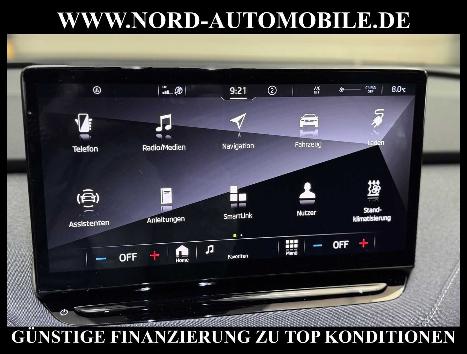 KomfortExtrasUnterhaltungBeschreibungwww.nord-automobile.de SKODA ENYAQAnsprechpartner:Jan Feldhus, Jonathan Steinfeld, Tom Bijman, Simon Wolff, Matthis Ullrich* FAHRZEUG-NUMMER: M-6395-BD * LACKIERUNG: Energy-Blau * Deutsche Auslieferung * Modelljahr:2023 * Unfallfrei * UPE brutto 39.989 ¤ * Mit Batteriezertifikat Soh 95, 1% * Loft * Sitzbezüge in Teilleder * Mit Rückfahrkamerasystem * Mit Regenschirm * Sprachsteuerung * Mit Verkehrszeichenerkennung * Digitaler Radioempfang * Einparkhilfe vorn und hinten * LED-Scheinwerfer * Mirror Link * Telefonvorbereitung für Handy * Spurhalteassistent * Mit Ausweichunterstützung mit Abbiegeassistent * Zentralverriegelung ''Keyless-Go'' ohne Safesicherung * Ledermultifunktionslenkrad * Geschwindigkeitsregelanlage plus Speed-Limiter. FOD: ACC möglich * Höheneinstellung, manuell, für Vordersitze * Lendenwirbelstütze, manuell einstellbar in Vordersitzlehnen * Rücksitzbank ungeteilt, Lehne geteilt umlegbar mit Mittelarmlehne * Servolenkung, geschwindigkeitsabhängig(Servotronic) * Scheibenwischer-Intervallschaltung mit Licht/Regensensor * Airbag FS und BFS, ohne Knieairbag, mit BFS-Deaktivierung * Sicherheitsinnenspiegel automatisch abblendbar * Außenspiegel, automatisch abblendbar elektrisch anklapp-/einstellbar separat beheizbar * Reifendruckkontrolle * Leichtmetallräder 8J x 19 * Nord-Automobile - Ihr starker und kompetenter Partner seit über 30 Jahren * Wir bieten Ihnen eine günstige Finanzierung auch ohne Anzahlung über die * AutoEuropaBank - Zweigniederlassung der Volkswagen Bank GmbH an * 20 XXL-Fotografien dieses Fahrzeuges finden Sie unter www.nord-automobile.de * Gerne unterbreiten wir Ihnen ein Angebot zum Ankauf Ihres bisherigen Fahrzeuges * Beim Export-Geschäft führen wir die Ausfuhranmeldung und Zulassung für Sie durch * Wir sind Meister-Werkstatt und zertifizierte GTÜ-Prüfstelle * Lernen Sie uns kennen - wir freuen uns auf Ihren Besuch * Keine Haftung für Druck & Schreibfehler. ... Klima, Klimaautomatik, Automatik, Navigationssystem, Regensensor, ESP, ASR, ABS, Parktronic System, Multifunktionslenkr., Radio, Bordcomputer, Tempomat, Spiegel beheizbar, elektr. Fensterheber vorn+hinten, elektr. WFS, ZV mit Fernb., Fahrerairb., Beifahrerairb., Seitenairbag vorn, Kopfairbags, Leichtmetallfelgen, Nichtraucher, Servolenkung, Spoiler, Traktionskontr., Sitzbank teilbar, Lenksaeule einstellbar, elektr. verstellb. Spiegel, Kopfst. vorn, Heckscheibenw., Gepaeckraumabd., Aluoptik, Lendenwirbelst., Sitzhoehenv., Waermeschutzvergl., 12 V Zusatzanschluss, aus erster Hand, Lederlenkrad, HSN 8004, TSN AWQ |