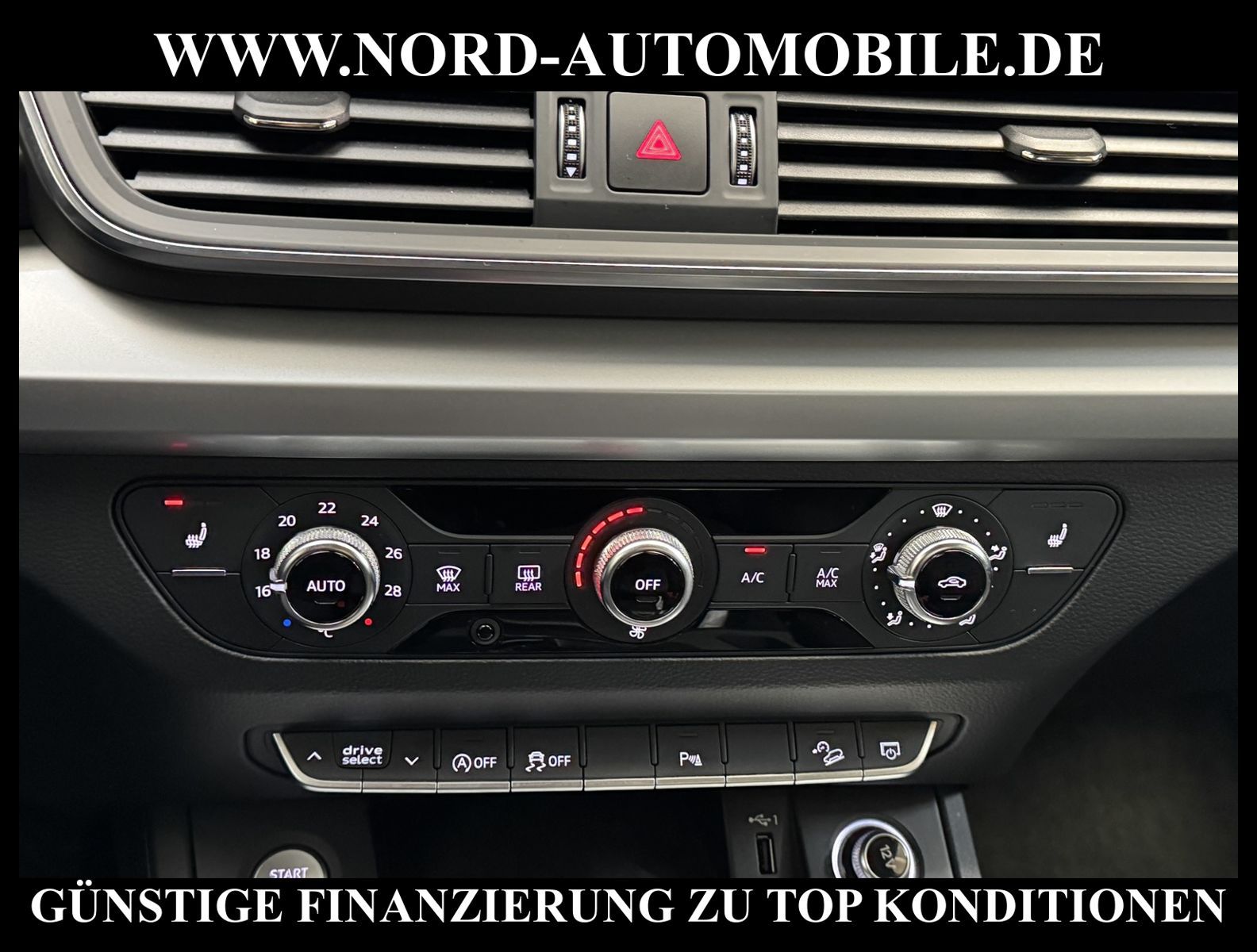 AUDI Q5 40 TDI QUATTRO S-TRONIC Ansprechpartner: Jan Feldhus, Jonathan Steinfeld.Tom Bijman, Simon Wolff, Matthis Ullrich, Andreas Cirja* FAHRZEUG-NUMMER: M-2653 * LACKIERUNG: Monsungrau Metallic * Deutsche Auslieferung * Schadstoffarm nach Abgasnorm Euro 6d * UPE brutto 59.420, - * Xenon-Scheinwerfer Plus (Abblend- und Fernlicht) * Anhängerkupplung schwenkbar * Virtual Cockpit * Rückfahrkamera * Einparkhilfe vorn und hinten, optisch (APS Plus) * Geschwindigkeitsregelanlage Tempomat * Ausstattungs-Paket: Technology Selection * Frontkamera (Scheibe) * Gepäckraumklappe elektrisch betätigt (öffnen + schliessen) * Innenspiegel mit Abblendautomatik * Lenkrad (Leder - 3-Speichen) mit Multifunktion plus * Metallic-Lackierung * Rücksitzbank (plus) und/oder Lehne geteilt * Sitz vorn links elektrisch verstellbar * Sitzheizung vorn * 8 Lautsprecher * Airbag Fahrer-/Beifahrerseite * Außenspiegel elektrisch verstell- und heizbar * Blinkleuchten LED in Außenspiegel integriert * Bremsassistent * Dachkantenspoiler * Dachreling eloxiert * Dynamik-Fahrwerk * Einstiegsleisten mit Aluminiumeinlage * Fahrassistenz-System: Bergabfahr-Assistent * Fahrassistenz-System: City-Notbremsfunktion (Audi pre sense City) * Frontscheibe Akustikglas * Geschwindigkeits-Begrenzeranlage * Harnstofftank (SCR): 12 Ltr. * Heckleuchten LED * Innenausstattung: Dekoreinlagen Mikrometallic silber * Isofix-Aufnahmen für Kindersitz * Klimaautomatik * Kopf-Airbag-System (Sideguard) * Kraftstofftank: 65 Ltr. * Leuchtweitenregelung automatisch * Mild-Hybrid-Technologie * Mittelarmlehne hinten mit Fach * Modellbezeichnung mit neuer Leistungskennzeichnung * Reifenkontroll-Anzeige * Scheibenwaschdüsen heizbar * SCR-System (AdBlue-Technologie) * Seitenairbag vorn * Start/Stop-Anlage * Motor 2, 0 Ltr. - 140 kW 16V TDI * Getriebe 7-Gang - Doppelkupplungsgetriebe S-tronic * Leichtmetallräder 18'' Zoll * Nord-Automobile - Ihr starker und kompetenter Partner seit über 30 Jahren * Wir bieten Ihnen eine günstige Finanzierung auch ohne Anzahlung über die * AutoEuropaBank - Zweigniederlassung der Volkswagen Bank GmbH an * 20 XXL-Fotografien dieses Fahrzeuges finden Sie unter www.nord-automobile.de * Gerne unterbreiten wir Ihnen ein Angebot zum Ankauf Ihres bisherigen Fahrzeuges * Beim Export-Geschäft führen wir die Ausfuhranmeldung und Zulassung für Sie durch * Wir sind Meister-Werkstatt und zertifizierte GTÜ-Prüfstelle * Lernen Sie uns kennen - wir freuen uns auf Ihren Besuch * Keine Haftung für Druck & Schreibfehler. ... Klima, Klimaautomatik, Automatik, Navigationssystem, Allrad, Sitzheiz. vorn, Xenon, Regensensor, Vorders. elekt. verstellb., ESP, ABS, Parktronic System, Multifunktionslenkr., Radio, Tempomat, Spiegel autom. abblendbar, Spiegel beheizbar, elektr. WFS, Keyless-Go, ZV, Fahrerairb., Beifahrerairb., Seitenairbag vorn, Kopfairbags, Leichtmetallfelgen, Nichtraucher, Anhaengerk., Servolenkung, Spoiler, Sitzbank teilbar, Dachreling, elektr. verstellb. Spiegel, Kopfst. vorn, Gepaeckraumabd., Mittelarmlehne, elekt. verstellb. Fahrersitz, Sitzheizung Fahrer + Beif., Lichtsensor, Waermeschutzvergl., Schadstoffklasse: Euro 6, Diesel, 4x4-Antrieb, Lederlenkrad, Verbrauch: 5,6/6,0/5,4 l/100 km (komb/inn/auß), CO2: 149 g/km, Partikelfilter, Feinstaubplakette: 4 - Grün, SCR-Technologie |