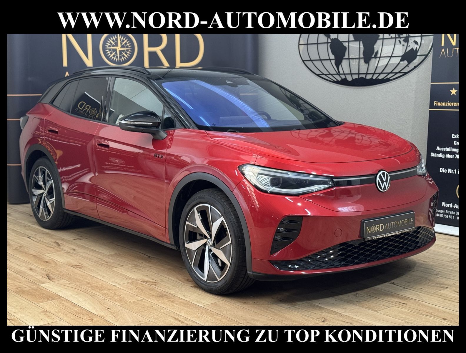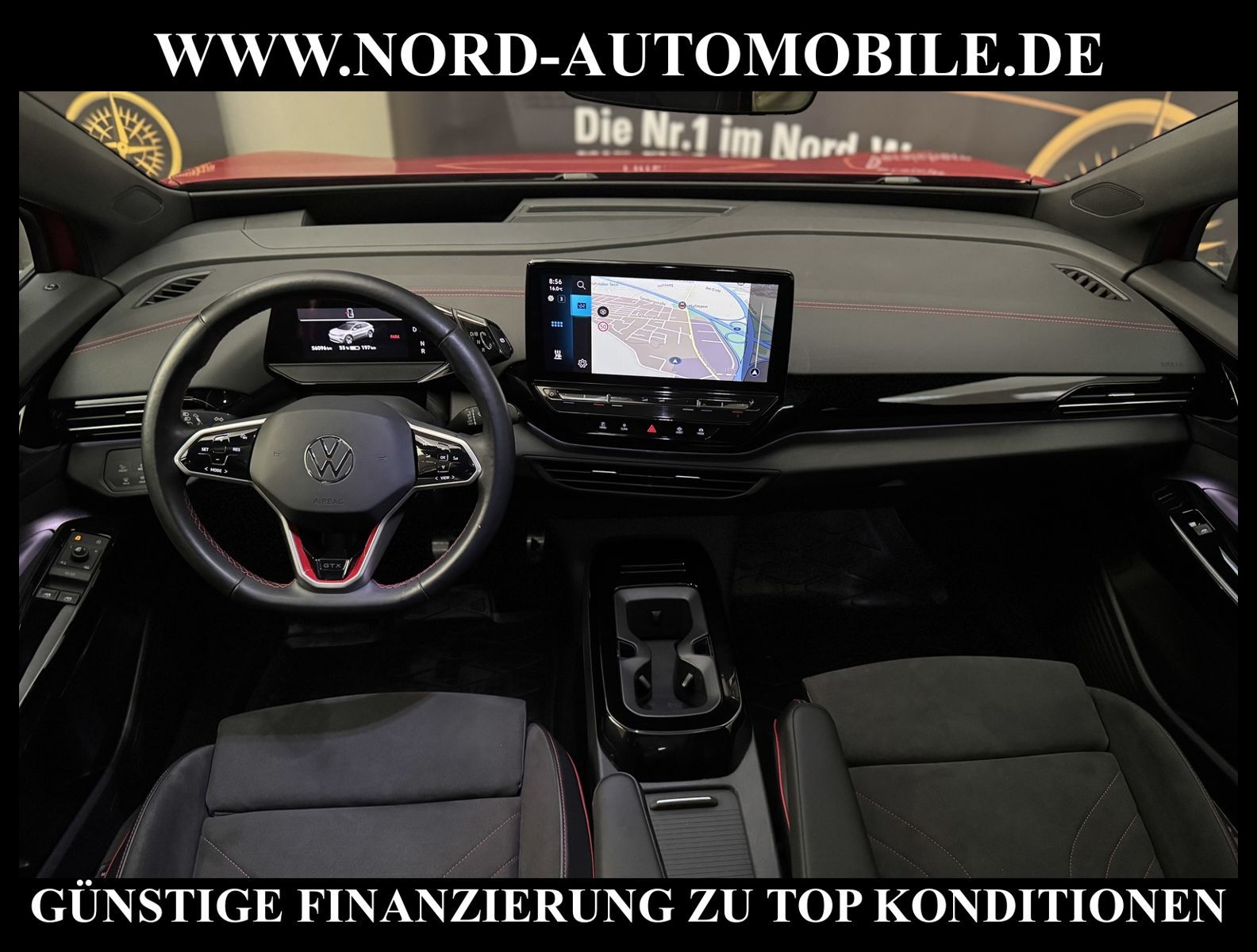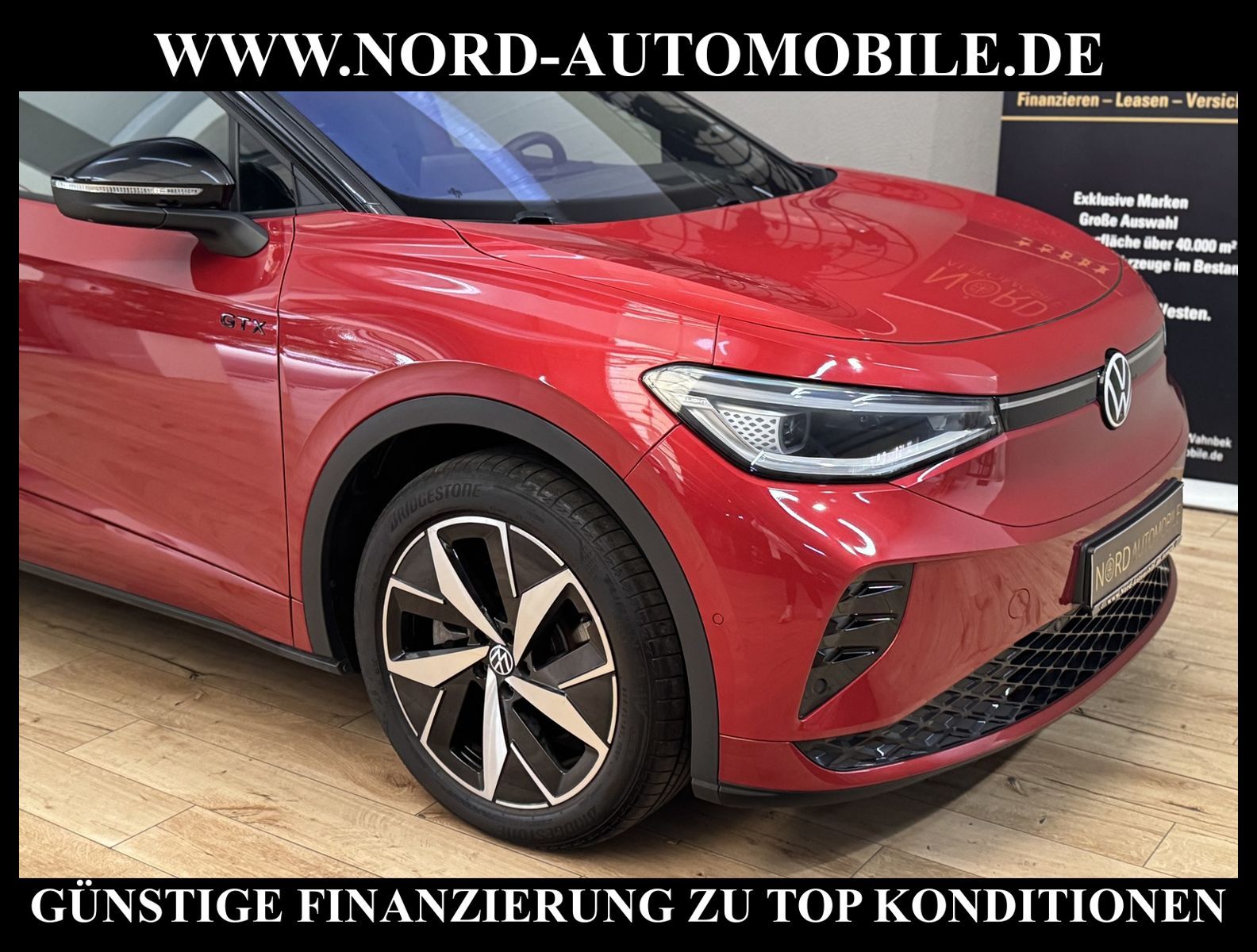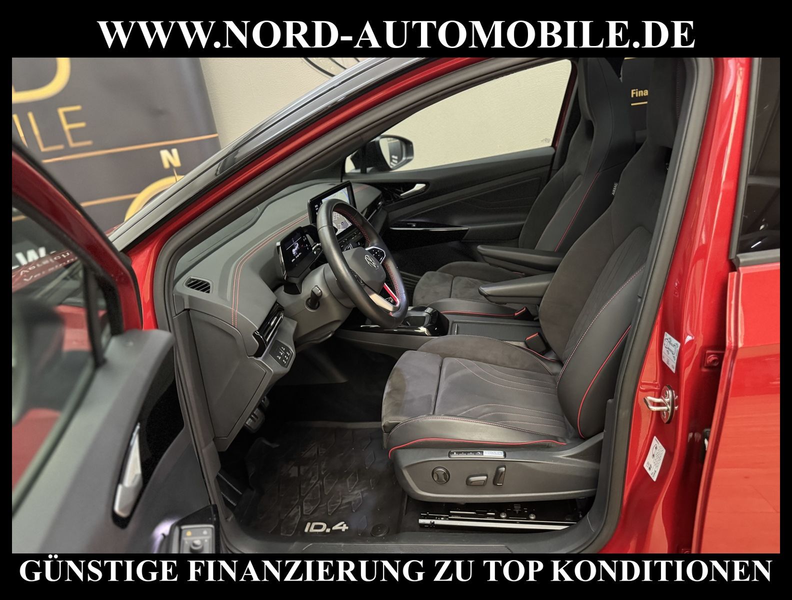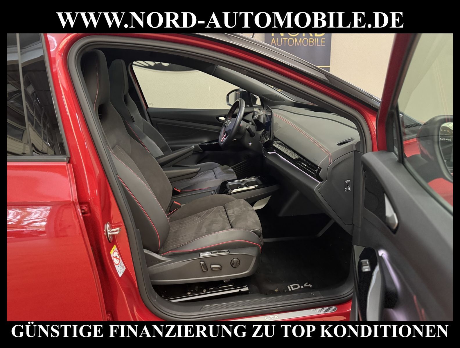 KomfortExtrasUnterhaltungBeschreibungwww.nord-automobile.de VW ID.4 GTXAnsprechpartner:Jan Feldhus, Jonathan Steinfeld, Tom Bijman, Simon Wolff, Matthis Ullrich, Andreas Cirja* FAHRZEUG-NUMMER: M-2223 * LACKIERUNG: Kings Red Metallic * Deutsche Auslieferung * Modelljahr:2023 * UPE brutto 62.864 ¤ * Batteriekapazität (brutto)82 kWh * Mit Batteriezertifikat! * Sportpaket ''Plus'' * Infotainment-Paket ''Plus'' * Design-Paket ''Plus'' * Panoramadach * Interieur Top-Sport ''Plus'' mit Lenkrad in Schwarz * Komfortpaket ''Plus'' * Spurwechselassistent * Matrix-Beam * LED-Scheinwerfer * Head-Up Display * Sitzbezüge in Teilleder * Mit Verkehrszeichenerkennung * Digitaler Radioempfang * Parklenkassistent IPA(Intelligent Park Assist) * Climatronic ( 3-Zonen ) mit Klimabedienteil hinten * Digitales Soundpaket plus Subwoofer * Mit Front und Rückfahrkamerasystem und zwei Seitenkameras * Müdigkeitserkennung * Komforttelefonie mit LTE und Wireless charging * Wired & Wireless App-Connect * Automatische Distanzregelung(mit follow to stop) und Speed-Limiter * Schlüsselloses Schließ- und Startsystem''Keyless Advanced'' mit Safesicherung * Mit Ausweichunterstützung mit Abbiegeassistent * Spurhalteassistent plus Emergency Assist und Stauassistent * Sitzheizung für Vordersitze getrennt regelbar * Ambientebeleuchtung außen, leuchtende(s) Stylingelement(e) seitlich und vorn * Anhängevorrichtung mechanisch schwenkbar und elektrisch auslösbar * Augmented-Reality-Head-up-Display * Ledermultifunktionslenkrad, beheizbar * Rücksitzbank ungeteilt, Lehne geteilt umlegbar mit Mittelarmlehne * Airbag FS und BFS, ohne Knieairbag, mit BFS-Deaktivierung * Sitzeinstellung elektrisch für beide Vordersitze, mit Memory und Sitztiefeneinstellung * Dynamiklenkung * Scheibenwischer-Intervallschaltung mit Licht/Regensensor * Radschrauben mit Diebstahlsicherung(nicht abschließbar) * Außenspiegel mit Memoryfunktion elektrisch anklapp-/einstellbar, separat beheizbar * Sicherheitsinnenspiegel automatisch abblendbar * Adaptive Fahrwerksregelung mit kontinuierlicher Bedienung * Diebstahlalarmanlage, Innenraumüberwachung, Back-up-Horn und Abschleppschutz * Leichtmetallräder 8J x 20 vorn, mit 9J x 20 hinten * Reifendruckkontrolle * Nord-Automobile - Ihr starker und kompetenter Partner seit über 30 Jahren * Wir bieten Ihnen eine günstige Finanzierung auch ohne Anzahlung über die * AutoEuropaBank - Zweigniederlassung der Volkswagen Bank GmbH an * 20 XXL-Fotografien dieses Fahrzeuges finden Sie unter www.nord-automobile.de * Gerne unterbreiten wir Ihnen ein Angebot zum Ankauf Ihres bisherigen Fahrzeuges * Beim Export-Geschäft führen wir die Ausfuhranmeldung und Zulassung für Sie durch * Wir sind Meister-Werkstatt und zertifizierte GTÜ-Prüfstelle * Lernen Sie uns kennen - wir freuen uns auf Ihren Besuch * Keine Haftung für Druck & Schreibfehler. ... Klima, Klimaautomatik, Automatik, Navigationssystem, Allrad, Sitzheiz. vorn, Regensensor, Sitz m. Memory-Funktion, Vorders. elekt. verstellb., ESP, ABS, Distronic, Parktronic System, Multifunktionslenkr., Radio, Bordcomputer, Spiegel autom. abblendbar, beheizte Frontscheibe, Spiegel beheizbar, elektr. Fensterheber vorn, Alarm, elektr. WFS, Keyless-Go, ZV mit Fernb., Fahrerairb., Beifahrerairb., Seitenairbag vorn, Kopfairbags, Leichtmetallfelgen, elektr. Fahrwerksregelung, Nichtraucher, Anhaengerk., Glasdach, Servolenkung, Sitzbank teilbar, Innenraumfilter, Dachreling, abklappb. Spiegel, elektr. verstellb. Spiegel, Kopfst. hinten, Gurtstraffer, Heckscheibenw., Mittelarmlehne, Lendenwirbelst., Sitzhoehenv., elekt. verstellb. Fahrersitz, Sitzheizung Fahrer + Beif., 4x4-Antrieb, Lederlenkrad, HSN 0603, TSN CLR, HU + AU wird vor Verkauf erneuert |