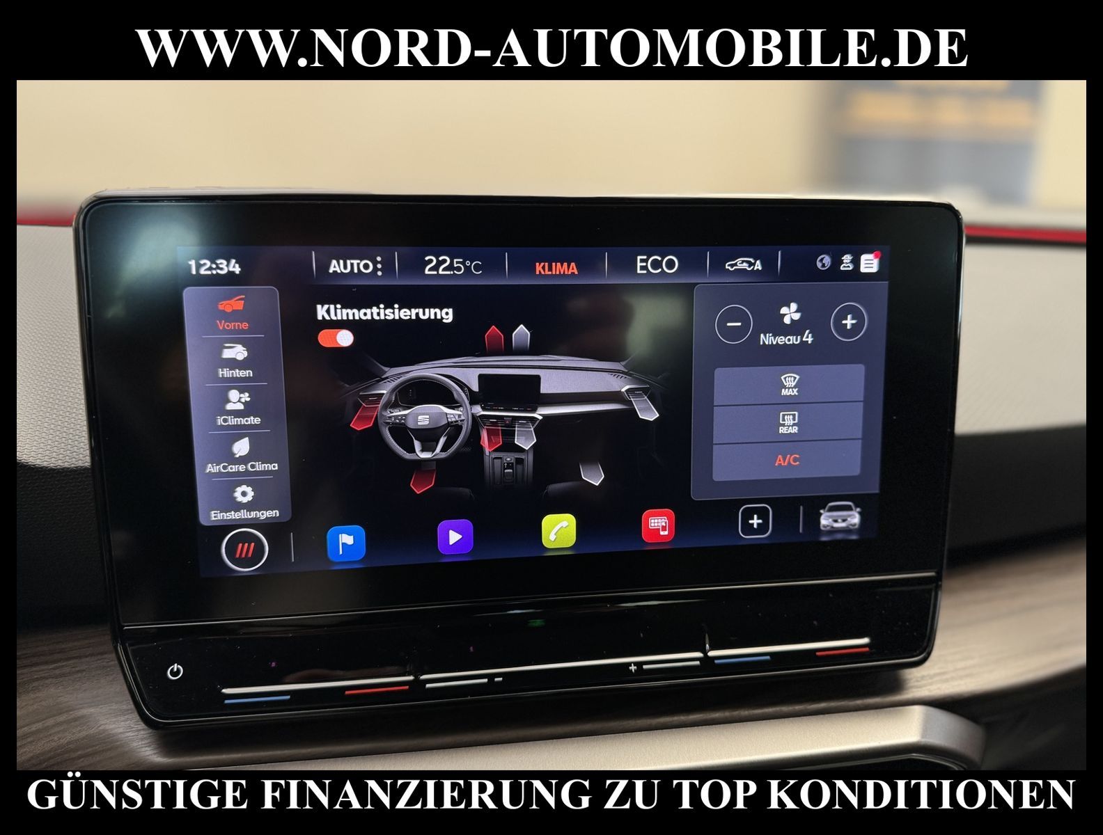 Seat Leon 1.4 e-HYBRID EXCELLENCE DSG Ansprechpartner: Jan Feldhus, Jonathan Steinfeld, Tom Bijman, Simon Wolff, Matthis Ullrich* FAHRZEUG-NUMMER: M-0758-BD * LACKIERUNG: Sonderlackierung emocion rot * deutsche Ausführung * Abgaskonzept, Euro6 AP ehem.UPE: 39.070, -* Hybrid 150 kW (Motor 1, 4 Ltr. - 110 kW TSI) * Fahrassistenz-Paket M * Innenraumlicht-Paket LED * Licht & Sicht Paket * Kombiinstrument digital (virtual cockpit) * Audio-Navigationssystem mit Touchscreen Farbbildschirm * Sprachsteuerungs-System * Verkehrszeichenerkennung * Radioempfang digital (DAB+) * Full Link (MirrorLink, Apple CarPlay und Android Auto) * Komforttelefonie mit LTE und wireless charging * Klimaanlage Climatronic 3-Zonen mit Klimabedienteil hinten * elektrische Luftzusatzheizung * LED-Hauptscheinwerfer mit LED-Tagfahrlicht * Fernlichtassistent * Heckleuchten Voll-LED mit dynamischem Lichtband (Infinite Light) * automatische Distanzregelung (ACC) mit vorausschauender Geschwindigkeits-Regelung * LM-Felgen 7, 5x17 (Dynamic I, Urban) * Ledersportmultifunktionslenkrad mit Tiptronic * Parklenkassistent mit Einparkhilfe vorn und hinten * Schließ-/Startsystem Kessy Advanced * Spurhalteassistent * Ausweichunterstützung mit Abbiegeassistent * Ambiente-Beleuchtung Smart Ambient Light * Sport-Komfortsitze vorn * Sitze vorn höhenverstellbar * Lendenwirbelstützen vorn * Müdigkeitserkennung * Schublade unter dem linken Vordersitz * Seitenscheiben hinten und Heckscheibe abgedunkelt * Rücksitzlehne geteilt/klappbar (1/3-2/3) * Zentralverriegelung mit Fernbedienung und Startanlage Keyless Go * Bordcomputer * Nebelscheinwerfer LED mit Abbiegelicht * Licht/Regensensor * Außenspiegel elektrisch anklappbar, einstell-und beheizbar * Sicherheitsinnenspiegel automatisch abblendbar * Airbag Fahrer-/Beifahrerseite * Airbag Beifahrerseite abschaltbar * Kopf-Airbag-System * Seitenairbag * Seitenairbag vorn mitte (Central Airbag) * Isofix-Aufnahmen für Kindersitz * Fensterheber elektrisch vorn und hinten * Differentialsperre XDS * Umfeldbeobachtungssystem (Front assist) mit City-Notbremsfunktion * akustischer Fußgängerschutz, Außensound (e-sound / AVAS) * Reifendruckkontrolle * Start/Stopp-Anlage mit Rekuperation * 6-Gang-Automatikgetriebe * Nord-Automobile - Ihr starker und kompetenter Partner seit über 30 Jahren * Wir bieten Ihnen eine günstige Finanzierung auch ohne Anzahlung über die * AutoEuropaBank - Zweigniederlassung der Volkswagen Bank GmbH an * 20 XXL-Fotografien dieses Fahrzeuges finden Sie unter www.nord-automobile.de * Gerne unterbreiten wir Ihnen ein Angebot zum Ankauf Ihres bisherigen Fahrzeuges * Beim Export-Geschäft führen wir die Ausfuhranmeldung und Zulassung für Sie durch * Wir sind Meister-Werkstatt und zertifizierte DEKRA-Prüfstelle * Lernen Sie uns kennen - wir freuen uns auf Ihren Besuch * Keine Haftung für Druck & Schreibfehler. ... Klima vorn+hinten, Klimaautomatik, Automatik, Navigationssystem, Regensensor, ESP, ASR, ABS, Distronic, Parktronic System, Multifunktionslenkr., Radio, Bordcomputer, Tempomat, Spiegel autom. abblendbar, Spiegel beheizbar, elektr. Fensterheber vorn+hinten, elektr. WFS, Keyless-Go, ZV mit Fernb., Fahrerairb., Beifahrerairb., Seitenairbag vorn, Kopfairbags, Leichtmetallfelgen, Nichtraucher, Nebelscheinw., Servolenkung, Sportsitze/Schalensitze, Spoiler, Traktionskontr., Sitzbank teilbar, abklappb. Spiegel, elektr. verstellb. Spiegel, Kopfst. vorn, Gepaeckraumabd., Nebelschlussl., Scheibenbr., Mittelarmlehne, Lendenwirbelst., Sitzhoehenv., Lichtsensor, Waermeschutzvergl., 12 V Zusatzanschluss, aus erster Hand, Frontantrieb, Lederlenkrad, Lederschaltknauf, Verbrauch: 1,4/0,0/0,0 l/100 km (komb/inn/auß), CO2: 32 g/km |