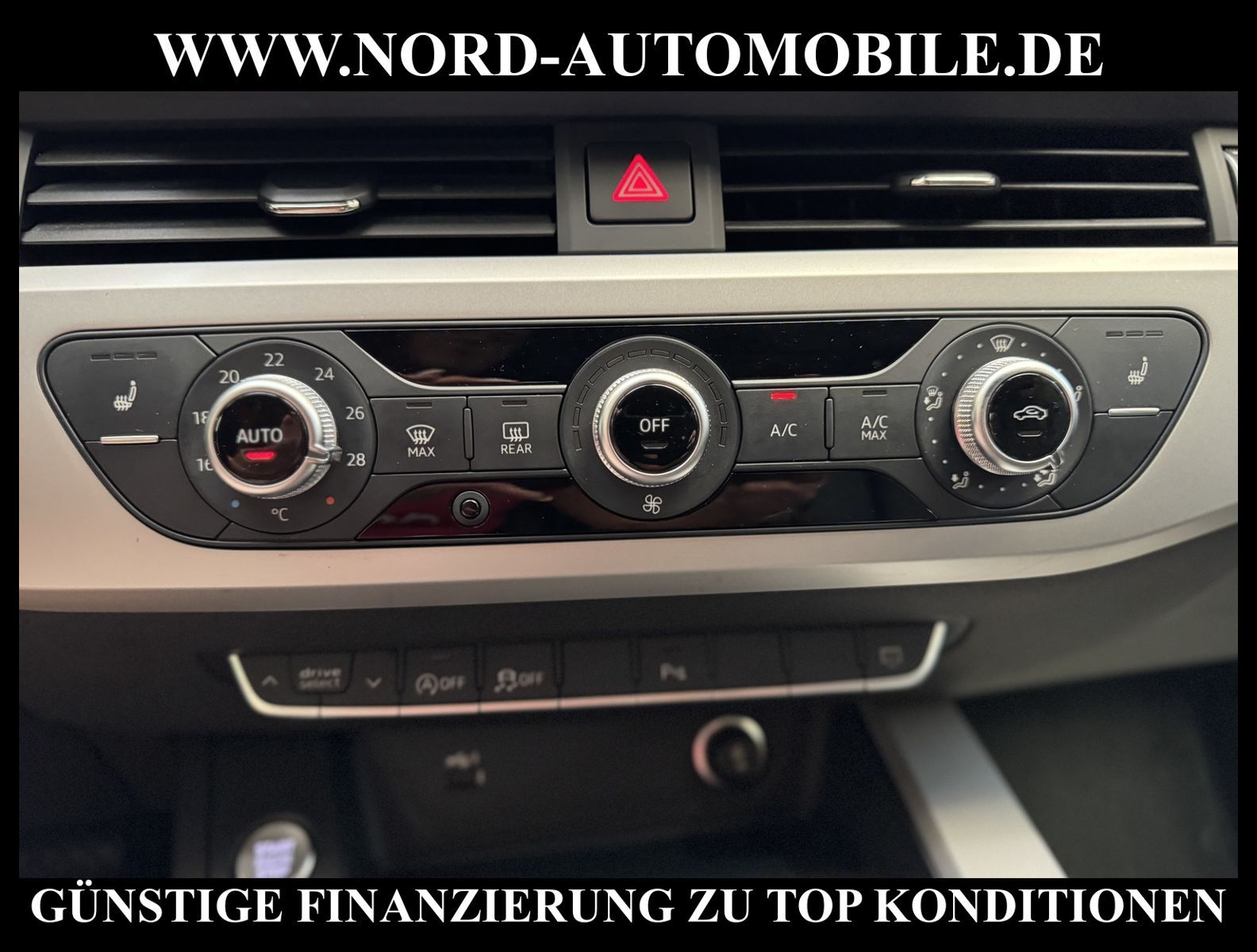 AUDI A4 AVANT 40 TDI S-TRONICAnsprechpartner: Jan Feldhus, Jonathan Steinfeld, Tom Bijman, Simon Wolff, Matthis Ullrich* FAHRZEUG-NUMMER: M-1919-BD * LACKIERUNG: ibisweiß * deutsche Ausführung * Abgaskonzept, Euro6 AP * ehem.UPE: 57.245, - * Anhängerkupplung (Kugelkopf schwenkbar) * MMI Navigation Plus mit MMI Touch * Radioempfang digital (DAB) * Audi connect * Universal-Schnittstelle Bluetooth * Audi music Interface * Telefonvorbereitung für Handy * Klimaautomatik * elektrische Luftzusatzheizung * Sitzheizung vorn * Sitzbezug / Polsterung: Leder * LED-Scheinwerfer mit LED-Tagfahrlicht * Heckleuchten LED * LM-Felgen 7, 5x17 (10-Speichen) * Audi Drive Select * Einparkhilfe vorn und hinten, akustisch und optisch mit selektiver Anzeige (APS Plus) * Geschwindigkeits-Regelanlage (Tempomat) plus Speed-Limiter * Geschwindigkeits-Begrenzeranlage * Multifunktions-Sportlederlenkrad mit Schaltwippen * Verglasung hinten abgedunkelt (Privacyverglasung) * Fahrer-Informations-System (FIS) mit Farbdisplay * Höheneinstellung manuell für Vordersitze * Mittelarmlehne vorn * Rücksitzlehne geteilt/klappbar (40:20:40) * Dachreling * Zentralverriegelung mit Fernbedienung Keyless go * Fensterheber elektrisch vorn und hinten * Licht- und Regensensor * Außenspiegel elektrisch verstell- und heizbar * Scheibenwaschdüsen heizbar * Isofix-Aufnahmen für Kindersitz * Airbag Fahrer-/Beifahrerseite * Airbag Beifahrerseite abschaltbar * Kopf-Airbag-System * Seitenairbag vorn * City-Notbremsfunktion (Audi pre sense City) * Reifendruckkontrolle * Start/Stopp-Anlage mit Rekuperation * Mild-Hybrid 150 kW (Motor 2, 0 Ltr. - 150 kW 16V TDI) * zus.Tank für SCR (12 Liter) * Getriebe 7-Gang - Doppelkupplungsgetriebe S-tronic * Nord-Automobile - Ihr starker und kompetenter Partner seit über 30 Jahren * Wir bieten Ihnen eine günstige Finanzierung auch ohne Anzahlung über die * AutoEuropaBank - Zweigniederlassung der Volkswagen Bank GmbH an * 20 XXL-Fotografien dieses Fahrzeuges finden Sie unter www.nord-automobile.de * Gerne unterbreiten wir Ihnen ein Angebot zum Ankauf Ihres bisherigen Fahrzeuges * Beim Export-Geschäft führen wir die Ausfuhranmeldung und Zulassung für Sie durch * Wir sind Meister-Werkstatt und zertifizierte DEKRA-Prüfstelle * Lernen Sie uns kennen - wir freuen uns auf Ihren Besuch * Keine Haftung für Druck & Schreibfehler. ... Klima, Klimaautomatik, Automatik, Leder, Navigationssystem, Sitzheiz. vorn, Regensensor, ESP, ABS, Parktronic System, Multifunktionslenkr., Radio, Bordcomputer, Tempomat, Spiegel beheizbar, elektr. Fensterheber vorn, elektr. WFS, ZV mit Fernb., Fahrerairb., Beifahrerairb., Seitenairbag vorn, Kopfairbags, Leichtmetallfelgen, Nichtraucher, Anhaengerk., Servolenkung, Sitzbank teilbar, Dachreling, elektr. verstellb. Spiegel, Kopfst. vorn, Mittelarmlehne, Sitzheizung Fahrer + Beif., Lichtsensor, Waermeschutzvergl., aus erster Hand, Diesel, Frontantrieb, Lederlenkrad, HSN 0588, TSN BWG, CO2: 138 g/km, Partikelfilter, SCR-Technologie |