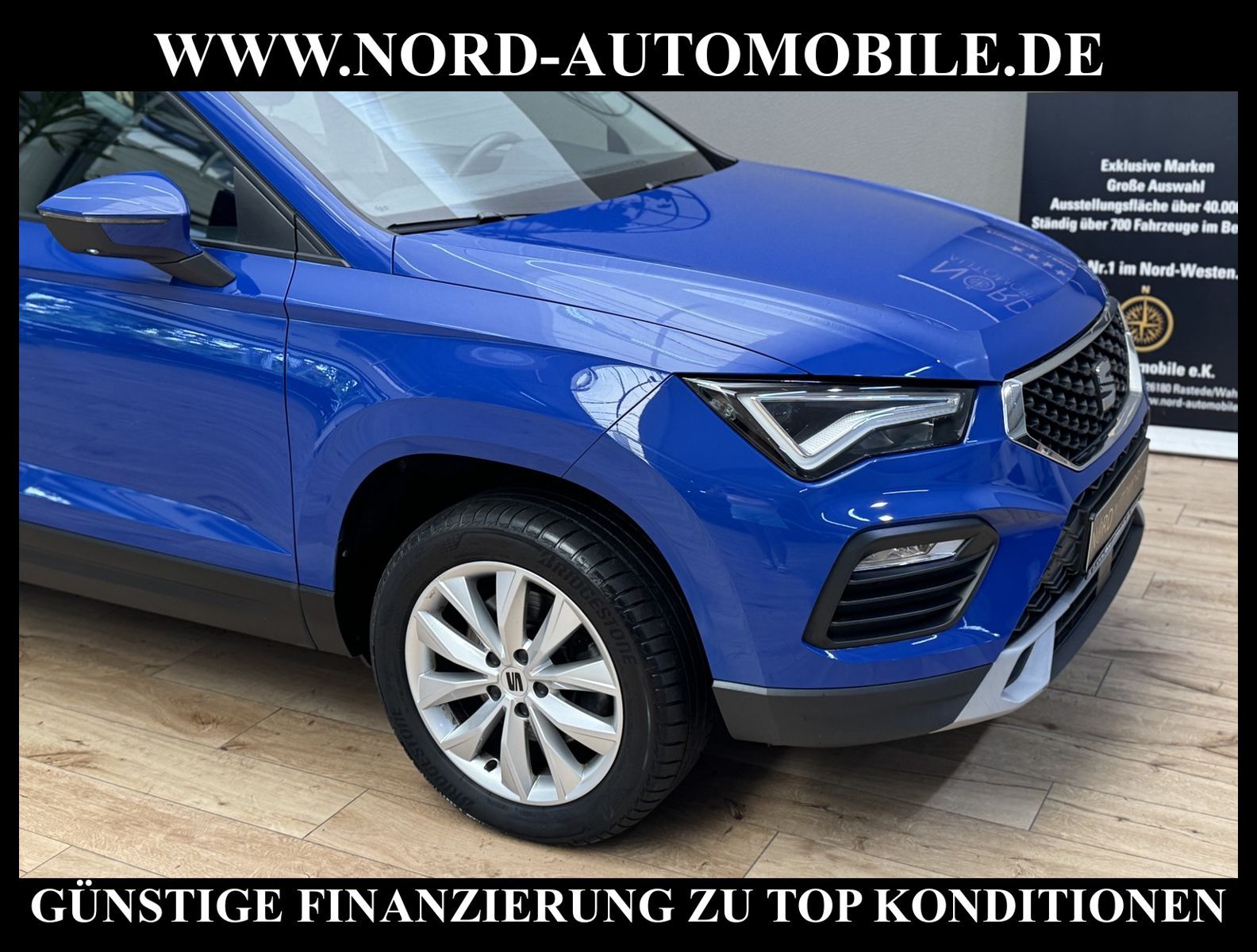 KomfortExtrasUnterhaltungBeschreibungwww.nord-automobile.de Seat Ateca Style 2.0 TDI 110kW 7-Gang Automatikgetriebe 4 TürenAnsprechpartner: Jan Feldhus, Jonathan Steinfeld, Tom Bijman, Simon Wolff, Matthis Ullrich* FAHRZEUG-NUMMER: M-9473-BD * LACKIERUNG: ''Energy'' Blau * Modelljahr:2022 * UPE brutto 35.673 ¤ * Deutsche Auslieferung * Schadstoffarm nach Abgasnorm Euro 6d * Müdigkeitserkennung * LED- Hauptscheinwerfer mit Linse * Klimaautomatik * Zentralverriegelung / Startanlage Keyless Go (Start-Stop-Knopf) * Mirror Link plus Wireless ''App'' plus RSE (Vorbereitung) * Digitaler Radioempfang * Multifunktionsanzeige/Bordcomputer ''Colour'' * Geschwindigkeitsregelanlage plus Speed-Limiter * Full Link (MirrorLink, Apple CarPlay und Android Auto) * Soundsystem mit Subwoofer ''branded'' * Front Assist inkl. City ANB ohne ACC * Höheneinstellung, manuell, für Vordersitze * Ledersportmultifunktionslenkrad mit Tiptronic * Rücksitzbank ungeteilt, Lehne geteilt umlegbar mit Mittelarmlehne * Lendenwirbelstütze, manuell einstellbar in Vordersitzlehnen * Leuchtweitenregulierung, autom.dynamisch * Tagesfahrlichtschaltung * Scheiben seitlich und hinten in Wärmeschutzverglasung * Fensterheber mit Komfortschaltung und Abschaltsicherung * Wegfahrsperre (elektronisch) * Nebelscheinwerfer * Servolenkung, geschwindigkeitsabhängig (Servotronic) * Reifendruckkontrolle * Kindersitzverankerung für Kindersitzsystem ISO FIX * Seitenairbag vorn, mit Kopfairbag * 7-Gang-Automatikgetriebe * Leichtmetallräder 7J x 17 * Start/Stopp-Anlage mit Rekuperation * Außenspiegel elektrisch anklappbar-/ einstellbar, beheizbar, mit Beifahrerspiegelabsenkung * Navigationssystem ''Plus'' * Entriegelung Heckklappe/Deckel hinten von innen (elektr.) * Nord-Automobile - Ihr starker und kompetenter Partner seit über 30 Jahren * Wir bieten Ihnen eine günstige Finanzierung auch ohne Anzahlung über die * AutoEuropaBank - Zweigniederlassung der Volkswagen Bank GmbH an * 20 XXL-Fotografien dieses Fahrzeuges finden Sie unter www.nord-automobile.de * Gerne unterbreiten wir Ihnen ein Angebot zum Ankauf Ihres bisherigen Fahrzeuges * Beim Export-Geschäft führen wir die Ausfuhranmeldung und Zulassung für Sie durch * Wir sind Meister-Werkstatt und zertifizierte GTÜ-Prüfstelle * Lernen Sie uns kennen - wir freuen uns auf Ihren Besuch * Keine Haftung für Druck & Schreibfehler. ... Klima, Klimaautomatik, Automatik, Navigationssystem, ESP, ABS, Parktronic System, Multifunktionslenkr., Radio, Soundsystem, Bordcomputer, Tempomat, Spiegel beheizbar, elektr. Fensterheber vorn, elektr. WFS, Keyless-Go, ZV mit Fernb., Fahrerairb., Beifahrerairb., Seitenairbag vorn, Kopfairbags, Leichtmetallfelgen, Nichtraucher, Nebelscheinw., Servolenkung, abklappb. Spiegel, elektr. verstellb. Spiegel, Sitzhoehenv., Waermeschutzvergl., Schadstoffklasse: Euro 6, Diesel, Frontantrieb, Lederlenkrad, HSN 7593, TSN AMQ, Verbrauch: 4,5/5,2/4,1 l/100 km (komb/inn/auß), CO2: 130 g/km, HU + AU wird vor Verkauf erneuert, Feinstaubplakette: 4 - Grün |