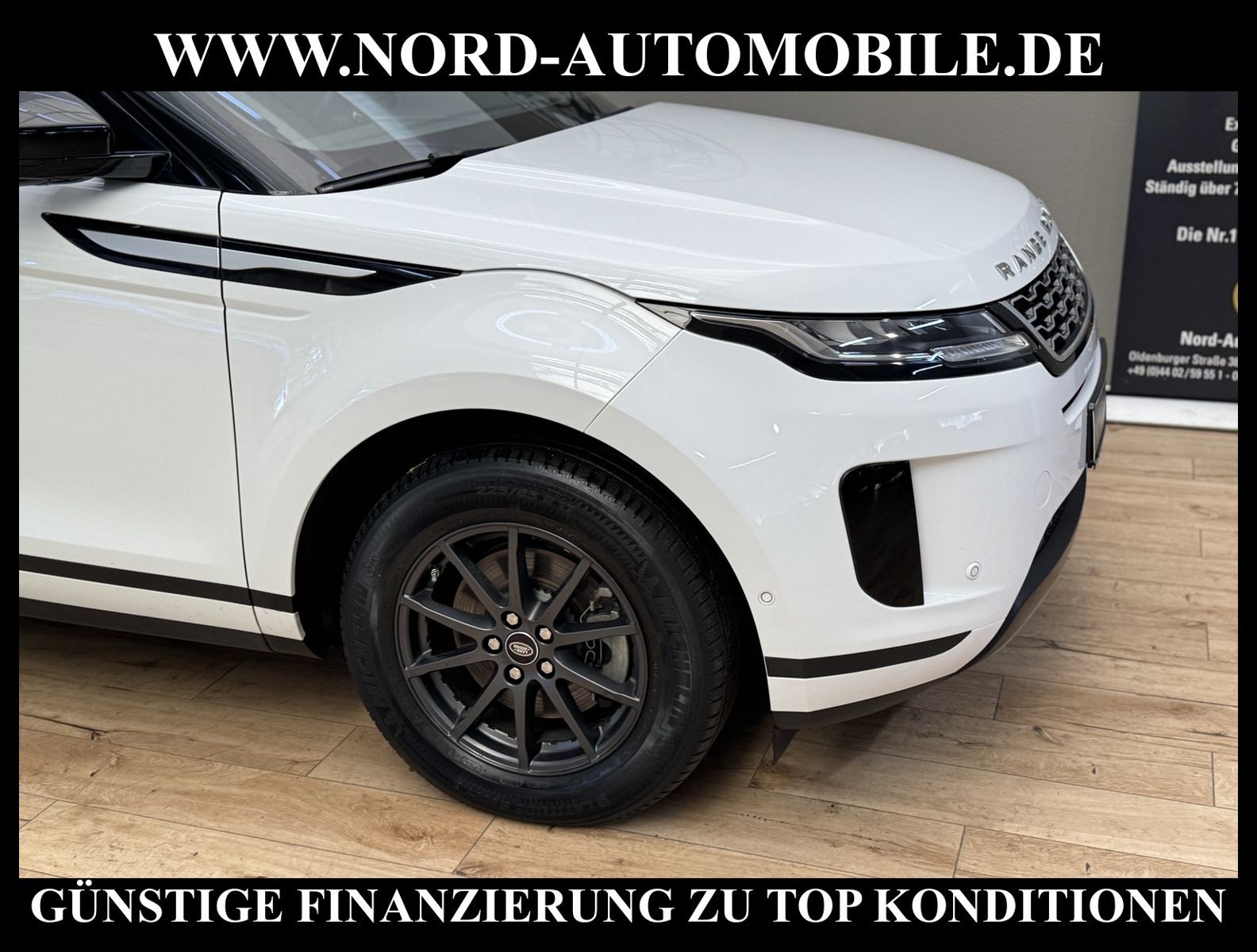 Range Rover Evoque D165Ansprechpartner: Jan Feldhus, Jonathan Steinfeld, Tom Bijman, Simon Wolff, Matthis Ullrich* FAHRZEUG-NUMMER: MW-9075-BD * LACKIERUNG: fuji white / Dach in Kontrastlackierung - schwarz * deutsches Fahrzeug * Abgaskonzept, Euro6 ehem.UPE: 55.959, -* Head-up Display * Navigationssystem Pivi Pro mit Pro Services * Land Rover Soundsystem (180 W) * Spracheingabesystem * digitaler Radioempfang (DAB+) * Smartphone Schnittstelle (Apple CarPlay & Android Auto) * Bluetooth-Schnittstelle * 2 Zonen Klimaautomatik * Panorama-Schiebedach elektrisch * Sitzbezug / Polsterung: Leder genarbt * Sitzheizung vorn * LED-Scheinwerfer mit LED-Tagfahrlicht * LM-Felgen 17 Zoll * Geschwindigkeitsregelanlage mit Geschwindigkeitsbegrenzer * Multifunktions-Lederlenkrad * Spurhalteassistent (Lane Departure Warning) * Einparkhilfe vorn und hinten * 3D-Surround Kamerasystem * Verglasung hinten abgedunkelt (Privacy Glass) * Sitze vorn höhenverstellbar * Dachhimmel ebony * Regensensor * Innenspiegel mit Abblendautomatik * Außenspiegel elektrisch verstell-, heiz- und anklappbar * Fensterheber elektrisch vorn und hinten * Zentralverriegelung mit Fernbedienung * Airbag Fahrer-/Beifahrerseite * Kopf-Airbag-System vorn und hinten * Dynamische Stabilitätskontrolle (DSC) * Wankneigungskontrolle (Roll Stability Control, RSC) * Aufmerksamkeits-Assistent * Berganfahr-Assistent * autonomer Notbrems-Assistent * Kurvenbremskontrolle (Corner-Brake-Control, CBC) * Reifendruckkontrolle * Start/Stopp-Anlage mit Rekuperation * 6-Gang-Schaltgetriebe * Nord-Automobile - Ihr starker und kompetenter Partner seit über 30 Jahren * Wir bieten Ihnen eine günstige Finanzierung auch ohne Anzahlung über die * AutoEuropaBank - Zweigniederlassung der Volkswagen Bank GmbH an * 20 XXL-Fotografien dieses Fahrzeuges finden Sie unter www.nord-automobile.de * Gerne unterbreiten wir Ihnen ein Angebot zum Ankauf Ihres bisherigen Fahrzeuges * Beim Export-Geschäft führen wir die Ausfuhranmeldung und Zulassung für Sie durch * Wir sind Meister-Werkstatt und zertifizierte DEKRA-Prüfstelle * Lernen Sie uns kennen - wir freuen uns auf Ihren Besuch * Keine Haftung für Druck & Schreibfehler. ... Klima, Klimaautomatik, Leder, Navigationssystem, Sitzheiz. vorn, ESP, ABS, Schiebedach elek., Parktronic System, Multifunktionslenkr., Radio, Soundsystem, Tempomat, Spiegel beheizbar, elektr. Fensterheber vorn, elektr. WFS, ZV mit Fernb., Fahrerairb., Beifahrerairb., Seitenairbag vorn, Kopfairbags, Leichtmetallfelgen, Nichtraucher, Servolenkung, Traktionskontr., elektr. verstellb. Spiegel, Aluoptik, Mittelarmlehne, Sitzheizung, 12 V Zusatzanschluss, aus erster Hand, Diesel, Frontantrieb, Lederlenkrad, Partikelfilter |