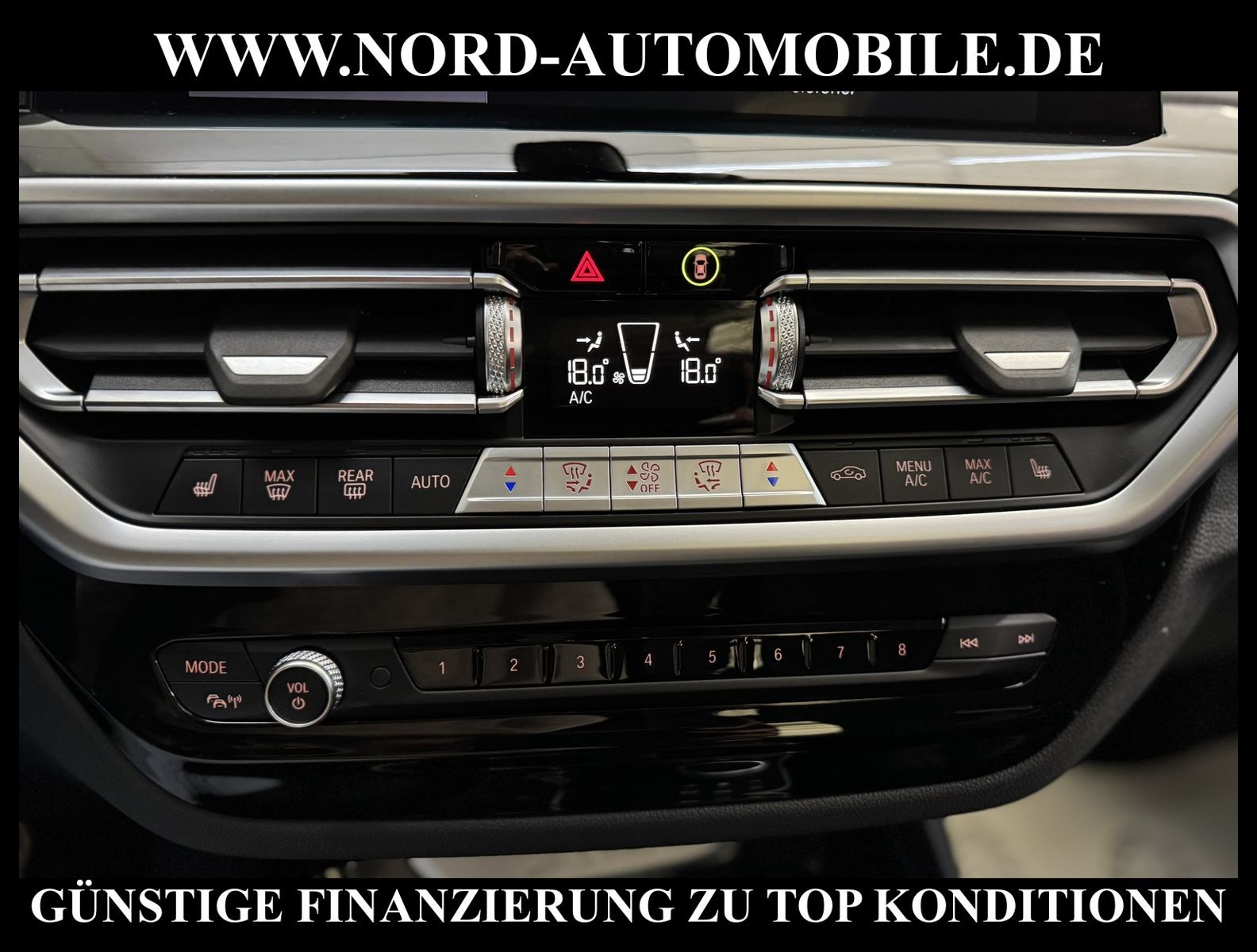 BMW X3 xDrive 30d AUTOMATIKAnsprechpartner: Jan Feldhus, Jonathan Steinfeld, Tom Bijman, Simon Wolff, Matthis Ullrich* FAHRZEUG-NUMMER: MW-8418-BD * LACKIERUNG: black sapphire metallic * deutsche Ausführung * Abgaskonzept, Euro6 rde II ehem.UPE: 67.269, -* xDrive (Allrad) * Mild-Hybrid Diesel 210 kW (Motor 3, 0 Ltr.) * Anhängerkupplung (Kugelkopf schwenkbar) * Parkassistent-Paket * Ausstattungs-Paket: Connected Professional * Navigationssystem * BMW Live Cockpit Plus * DAB-Tuner (Radioempfang digital) * Remote Services * Concierge Services * ConnectedDrive Services * Intelligenter Notruf inkl. TeleServices * Real Time Traffic Information (RTTI) * Personalisierungssystem (Personal Profile) * Freisprecheinrichtung Bluetooth mit erweiterter Smartphone-Anbindung * WLAN Hotspot * 3-Zonen Klimaautomatik mit automatischer Umluft-Control * Panoramadach (Glas) * Sitzbezug / Polsterung: Leder * Sitzheizung vorn * Sportsitze vorn * LED-Scheinwerfer mit erweiterten Umfängen und LED-Tagfahrlicht * LM-Felgen 7x18 (V-Speiche 618) * Fahrerlebnisschalter * Geschwindigkeits-Regelanlage mit Bremsfunktion * Park-Assistent * Park-Distance-Control (PDC) vorn und hinten * Rückfahrkamera * Komfortzugang (Öffnungs- und Schließsystem) * Heckklappenbetätigung automatisch * Multifunktions-Sportlederlenkrad (M-Technic) * Heckleuchten LED * Interieurleisten schwarz hochglänzend mit Akzentleiste * Sitze vorn höhenverstellbar * Lendenwirbelstützen vorn * Mittelarmlehne * Rücksitzlehne geteilt/klappbar (40:20:40) * Mittelarmlehne vorn und hinten * Wärmeschutzverglasung getönt * Sonnenschutzverglasung (hinten abgedunkelt) * Bordcomputer * Zentralverriegelung mit Fernbedienung * Fensterheber elektrisch vorn + hinten * Außenspiegel elektrisch anklappbar, verstell-und heizbar, mit Abblendautomatik * Außen-/Innenspiegel mit Abblendautomatik * Scheibenwaschdüsen heizbar * Scheibenwischer mit Regensensor * Licht- und Regensensor * Isofix-Aufnahmen für Kindersitz * Airbag Beifahrerseite abschaltbar * Airbag Fahrer-/Beifahrerseite * Kopf-Airbag-System vorn und hinten * Seitenairbag vorn * Dynamische Stabilitäts-Control (DSC) * Dynamische Tractions Control (DTC) * Auffahrwarnsystem mit Bremsfunktion * Active Guard Bremsassistent * Reifendruckkontrolle * Start/Stopp-Anlage mit Rekuperation * Getriebe Automatik - mit Steptronic (8-Stufen) für Allrad * Nord-Automobile - Ihr starker und kompetenter Partner seit über 30 Jahren * Wir bieten Ihnen eine günstige Finanzierung auch ohne Anzahlung über die * AutoEuropaBank - Zweigniederlassung der Volkswagen Bank GmbH an * 20 XXL-Fotografien dieses Fahrzeuges finden Sie unter www.nord-automobile.de * Gerne unterbreiten wir Ihnen ein Angebot zum Ankauf Ihres bisherigen Fahrzeuges * Beim Export-Geschäft führen wir die Ausfuhranmeldung und Zulassung für Sie durch * Wir sind Meister-Werkstatt und zertifizierte DEKRA-Prüfstelle * Lernen Sie uns kennen - wir freuen uns auf Ihren Besuch * Keine Haftung für Druck & Schreibfehler. ... Klima, Klimaautomatik, Automatik, Leder, Navigationssystem, Allrad, Sitzheiz. vorn, Regensensor, ESP, ABS, Schiebedach, Parktronic System, Multifunktionslenkr., Radio, Bordcomputer, Tempomat, Spiegel autom. abblendbar, Spiegel beheizbar, elektr. Fensterheber vorn, elektr. WFS, ZV mit Fernb., Fahrerairb., Beifahrerairb., Seitenairbag vorn, Seitenairbag hinten, Kopfairbags, Leichtmetallfelgen, Nichtraucher, Anhaengerk., Glasdach, Servolenkung, Kat., Sportsitze/Schalensitze, Traktionskontr., Sitzbank teilbar, Lenksaeule einstellbar, abklappb. Spiegel, elektr. verstellb. Spiegel, Nebelschlussl., Mittelarmlehne, Lendenwirbelst., Sitzheizung Fahrer + Beif., Lichtsensor, Waermeschutzvergl., aus erster Hand, Diesel, 4x4-Antrieb, Lederlenkrad, HSN 0005, TSN CZV, Partikelfilter, SCR-Technologie |
