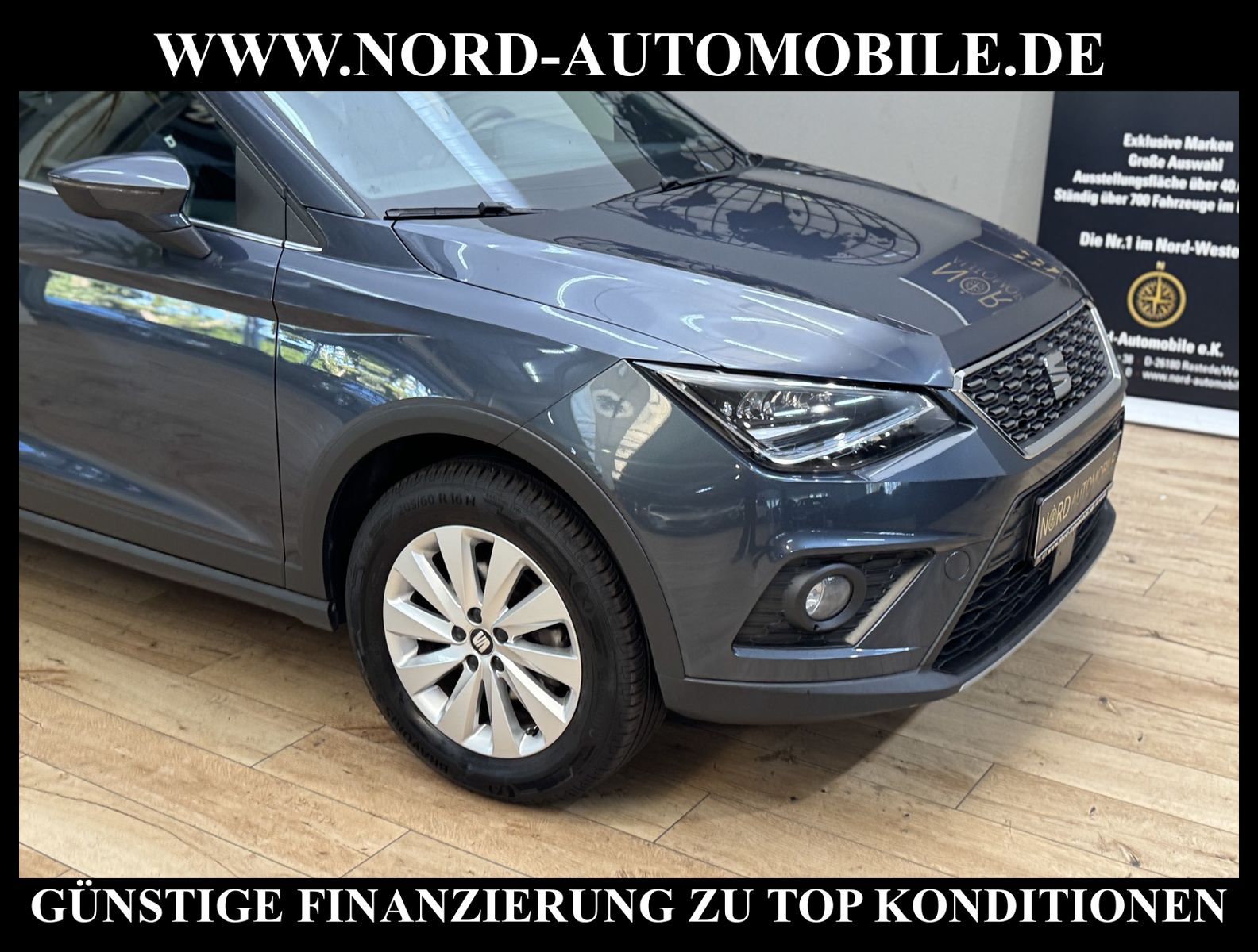 KomfortExtrasUnterhaltungBeschreibungwww.nord-automobile.de Seat Arona XCELLENCE 1.0 TSI 70kW 5-Gang 4 TürenAnsprechpartner: Jan Feldhus, Jonathan Steinfeld, Tom Bijman, Simon Wolff* FAHRZEUG-NUMMER:M-3709-BD * LACKIERUNG: ''Magnetic Tech'' * Modelljahr:2021 * UPE brutto 23.800 ¤ * Schadstoffarm nach Abgasnorm Euro 6d * Navigationssystem * Mirror Link * LED Scheinwerfer * Müdigkeitserkennung * Klimaautomatik * Digitaler Radioempfang * Geschwindigkeitsregelanlage plus Speed-Limiter * Multifunktionsanzeige/Bordcomputer ''Medium'' * Zentralverriegelung ''Keyless-Entry'' * Front Assist inkl. City ANB ohne ACC * Ledermultifunktionslenkrad für Airbag-System * Lenksäule, axial u.vertikal einstellbar * Höheneinstellung, manuell, für Vordersitze * Tagesfahrlicht mit Assistenzfahrlicht u.Coming- Leaving-home Funktion manuell * Nebelscheinwerfer mit Abbiegelicht integriert * Leuchtweitenregulierung, autom.dynamisch * Rücksitzbank ungeteilt, Lehne geteilt umlegbar * Scheibenwischer-Intervallschaltung mit Licht/Regensensor * LED-Kennzeichenbeleuchtung * Ambientelicht Ausführung 1 * Scheiben seitlich und hinten in Wärmeschutzverglasung * Fensterheber mit Komfortschaltung und Abschaltsicherung * Wegfahrsperre (elektronisch) * Sicherheitsinnenspiegel automatisch abblendbar * Außenspiegel, elektrisch anklappbar und elektrisch einstell-/beheizbar * Dachreling silber * Reifendruckkontrolle * Kindersitzverankerung für Kindersitzsystem ISO FIX * Seitenairbag vorn, mit Kopfairbag * Servolenkung * Start/Stopp-Anlage mit Rekuperation * Airbag FS und BFS, ohne Knieairbag, mit BFS-Deaktivierung * 5-Gang-Schaltgetriebe * Leichtmetallräder 6J x 16 * Nord-Automobile - Ihr starker und kompetenter Partner seit über 30 Jahren * Wir bieten Ihnen eine günstige Finanzierung auch ohne Anzahlung über die * AutoEuropaBank - Zweigniederlassung der Volkswagen Bank GmbH an * 20 XXL-Fotografien dieses Fahrzeuges finden Sie unter www.nord-automobile.de * Gerne unterbreiten wir Ihnen ein Angebot zum Ankauf Ihres bisherigen Fahrzeuges * Beim Export-Geschäft führen wir die Ausfuhranmeldung und Zulassung für Sie durch * Wir sind Meister-Werkstatt und zertifizierte GTÜ-Prüfstelle * Lernen Sie uns kennen - wir freuen uns auf Ihren Besuch * Keine Haftung für Druck & Schreibfehler. ... Klima, Klimaautomatik, Navigationssystem, Regensensor, ESP, ABS, Parktronic System, Multifunktionslenkr., Bordcomputer, Tempomat, Spiegel beheizbar, elektr. Fensterheber vorn, elektr. WFS, Keyless-Go, ZV mit Fernb., Fahrerairb., Beifahrerairb., Seitenairbag vorn, Kopfairbags, Leichtmetallfelgen, Nichtraucher, Nebelscheinw., Servolenkung, Dachreling, abklappb. Spiegel, Mittelarmlehne, Sitzhoehenv., Lichtsensor, Waermeschutzvergl., Schadstoffklasse: Euro 6, Frontantrieb, Lederlenkrad, Verbrauch: 4,8/5,7/4,3 l/100 km (komb/inn/auß), HU + AU wird vor Verkauf erneuert, Feinstaubplakette: 4 - Grün |
